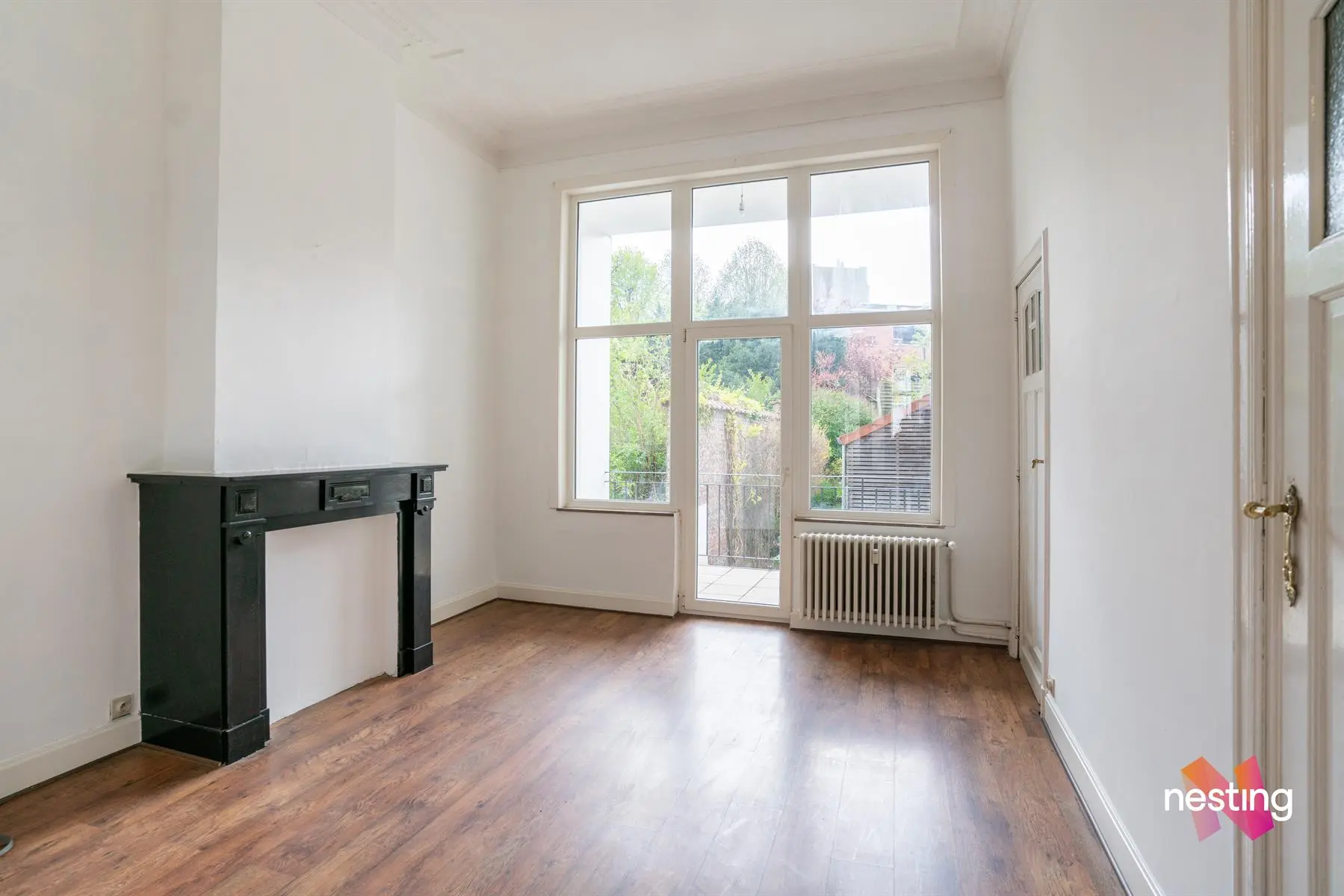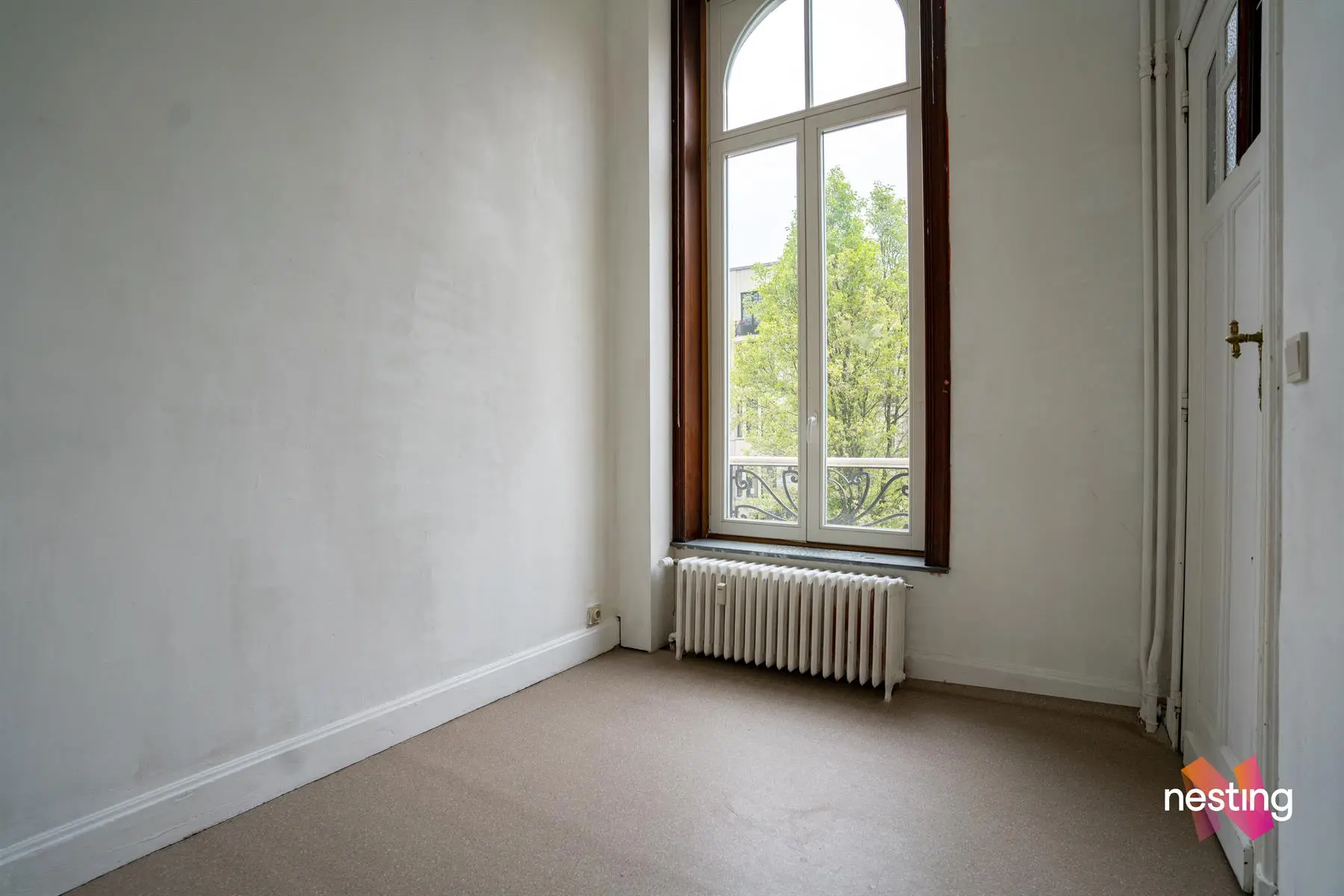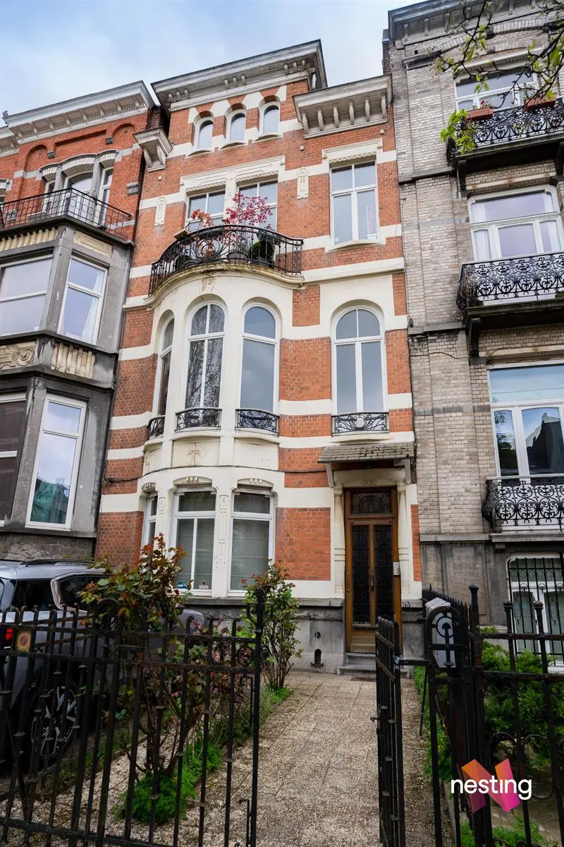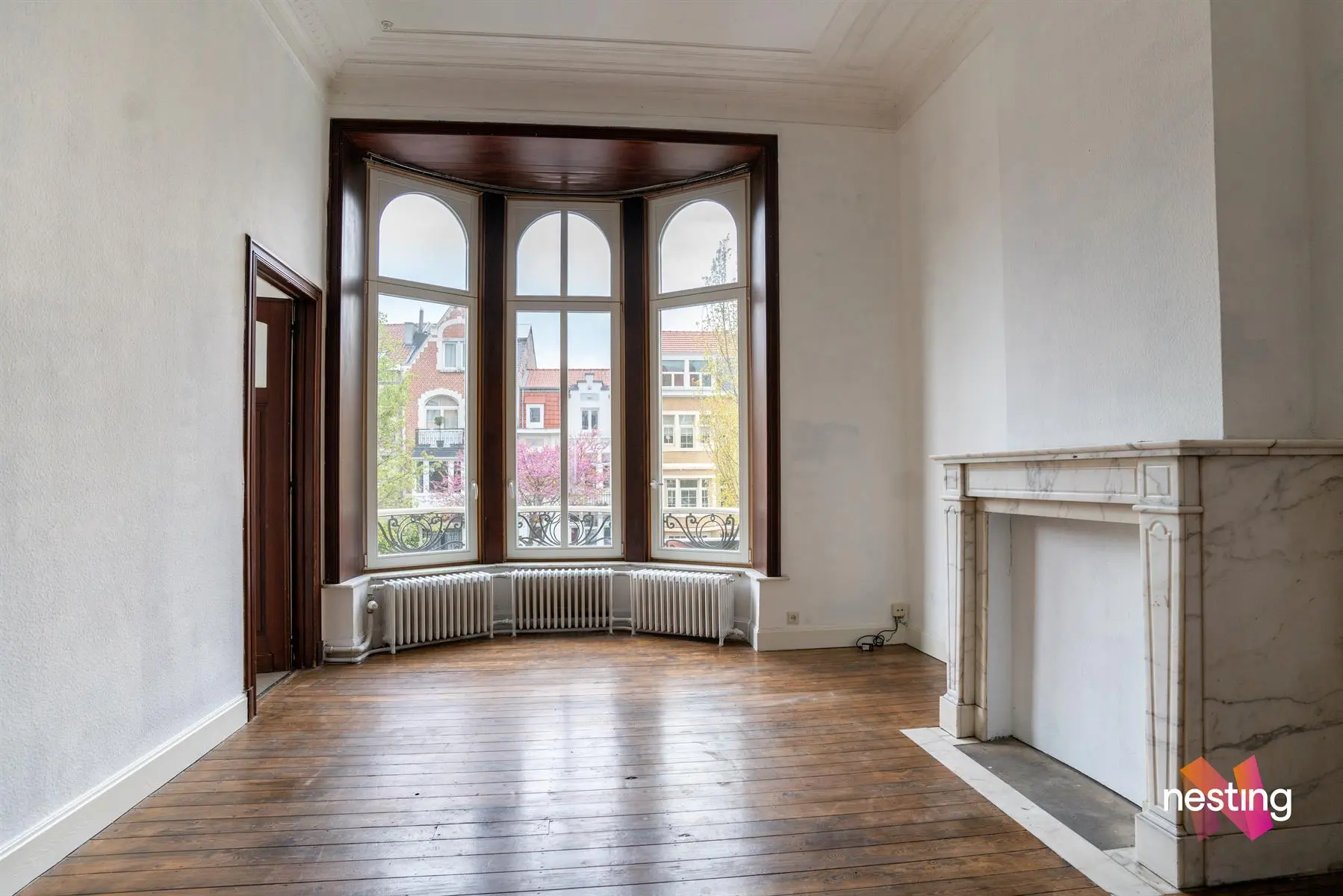 Dans une Avenue prestigieuse, A proximité du parc Josaphat, des commerces et des transports en communs, au 1er étage d'une superbe maison de Maître de +/-1920, superbe appartement très lumineux et offrant : salon de +/-20m2 , salle à manger de +/-16m2 donnant sur une terrasse plein sud de +/-8m2, cuisine séparée donnant également sur la terrasse, chambre de +/19m2 donnant sur une seconde pièce de +/-7m2 pouvant servir de bureau/dressing, salle de bains avec bain-douche et WC.