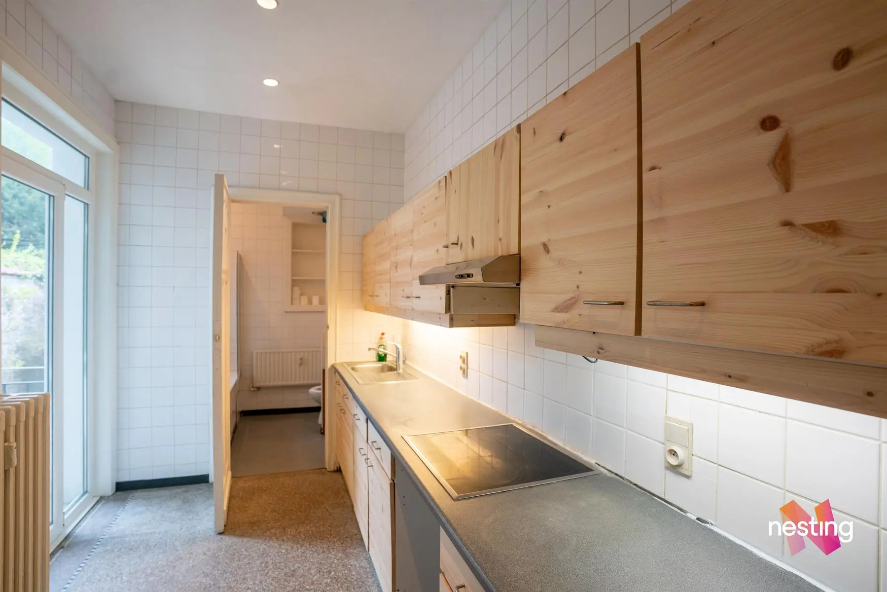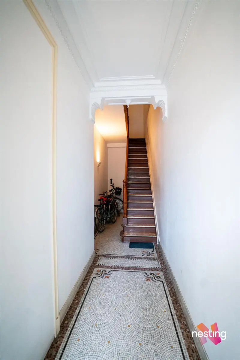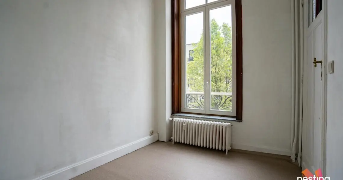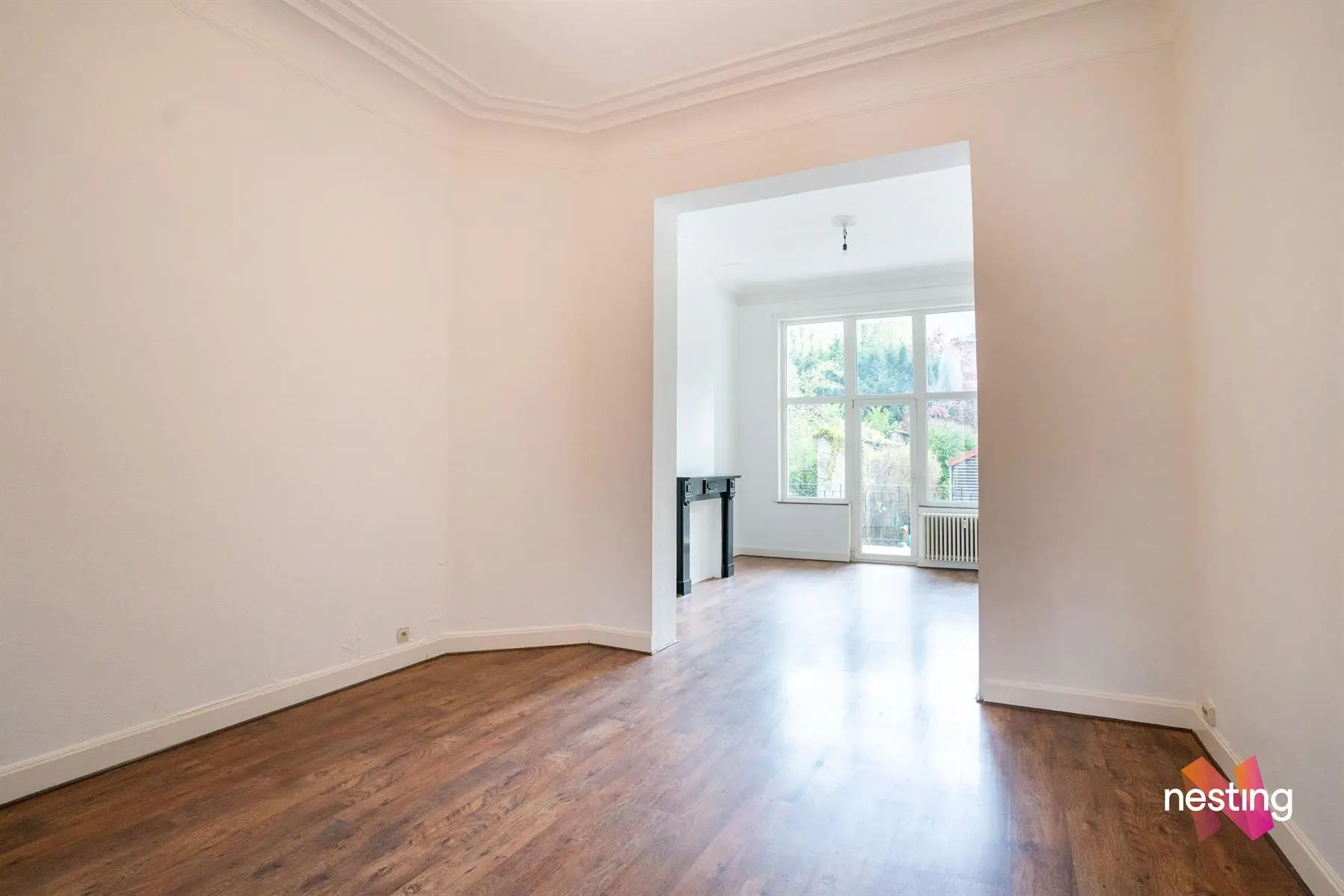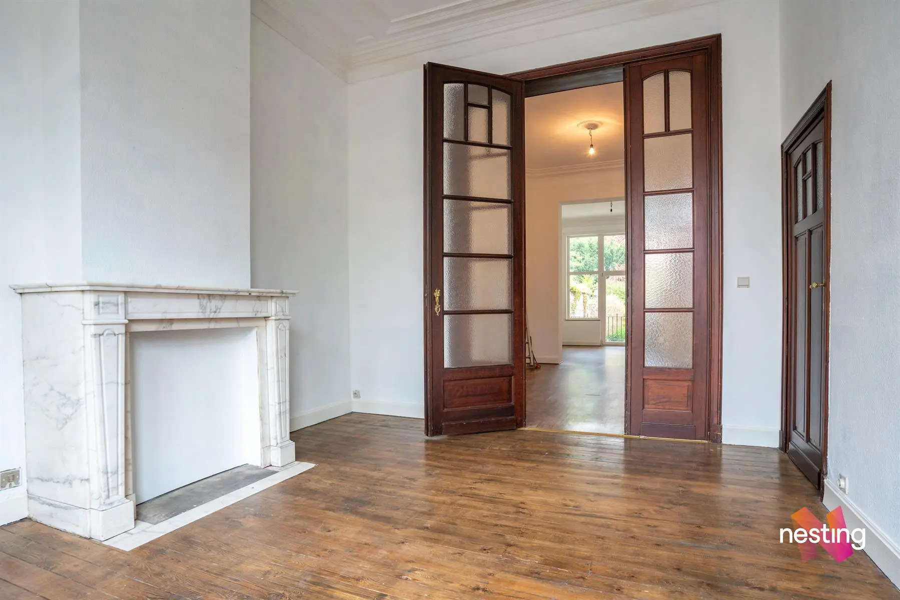 Dans une Avenue prestigieuse, A proximité du parc Josaphat, des commerces et des transports en communs, au 1er étage d'une superbe maison de Maître de +/-1920, superbe appartement très lumineux et offrant : salon de +/-20m2 , salle à manger de +/-16m2 donnant sur une terrasse plein sud de +/-8m2, cuisine séparée donnant également sur la terrasse, chambre de +/19m2 donnant sur une seconde pièce de +/-7m2 pouvant servir de bureau/dressing, salle de bains avec bain-douche et WC.