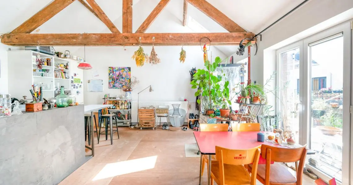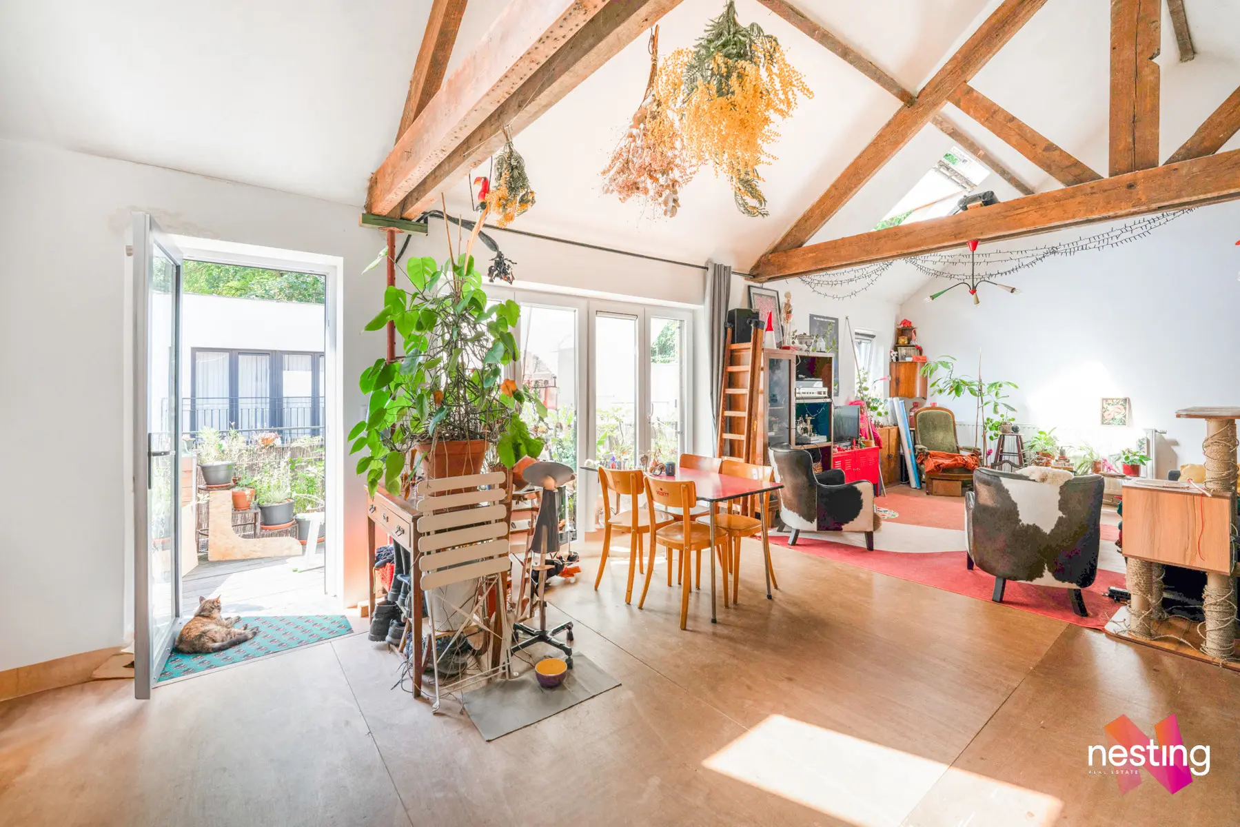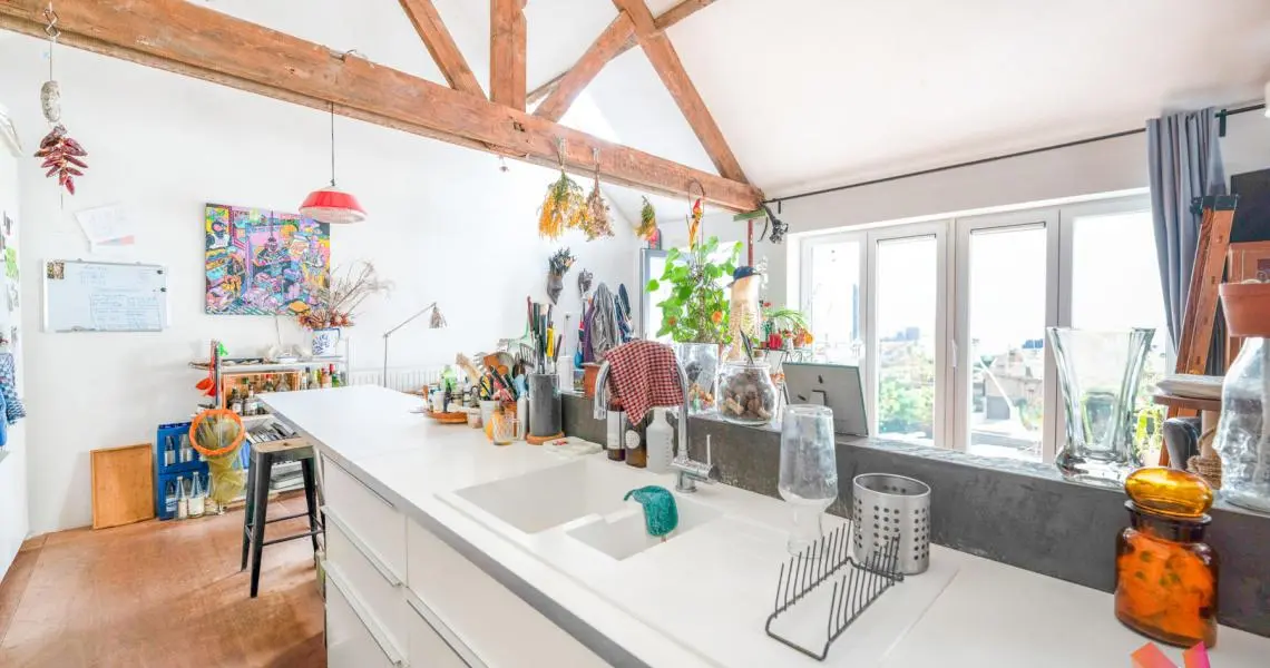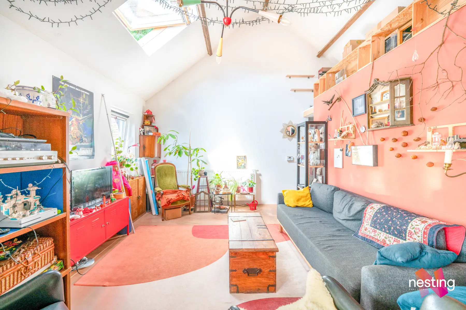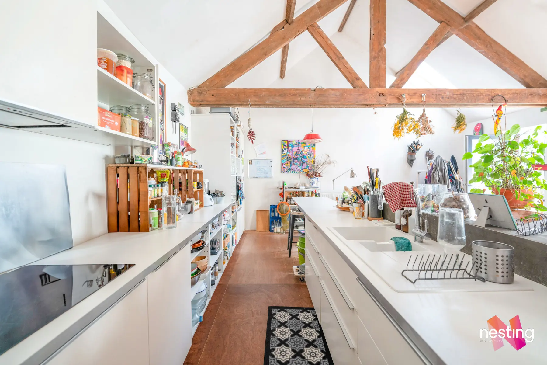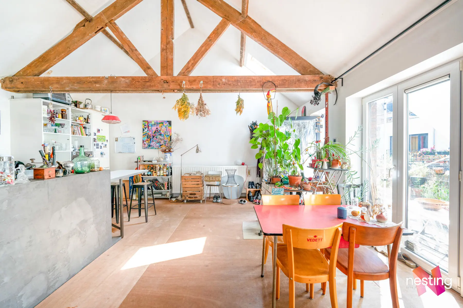 Un grand espace de vie lumineux de +- 50m2 avec une cuisine ouverte super équipée, un salon et une salle à manger s’ouvrant sur une terrasse orientée sud ouest, parfaite pour profiter de la lumière naturelle, d'un hall de nuit avec buanderie, d'un wc séparé, d'une salle de bain et d'une chambre avec une mezzanine pouvant être également un bureau.