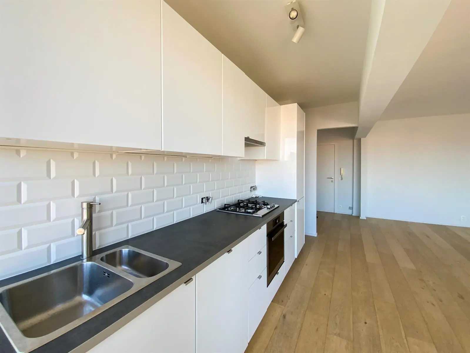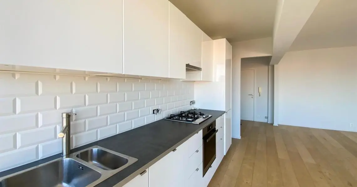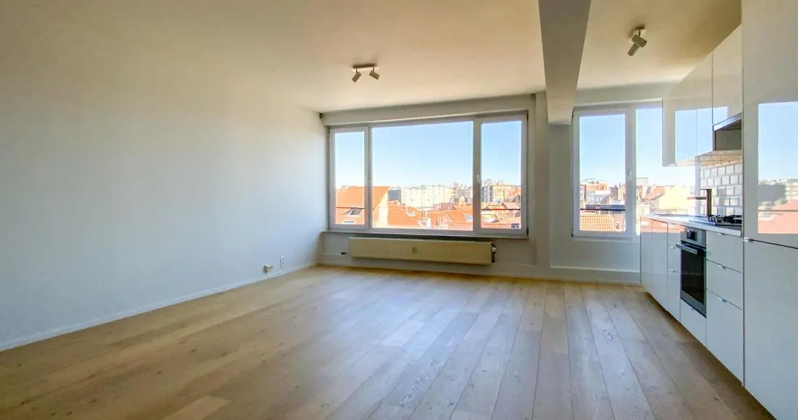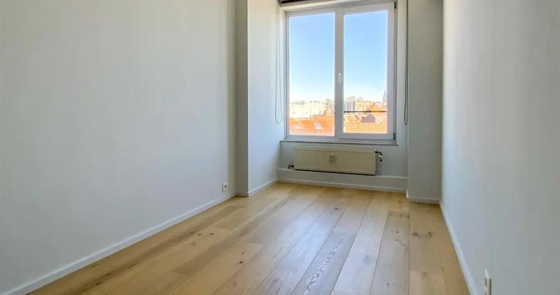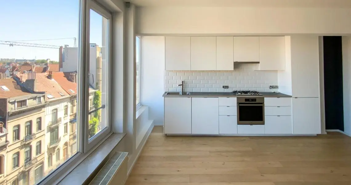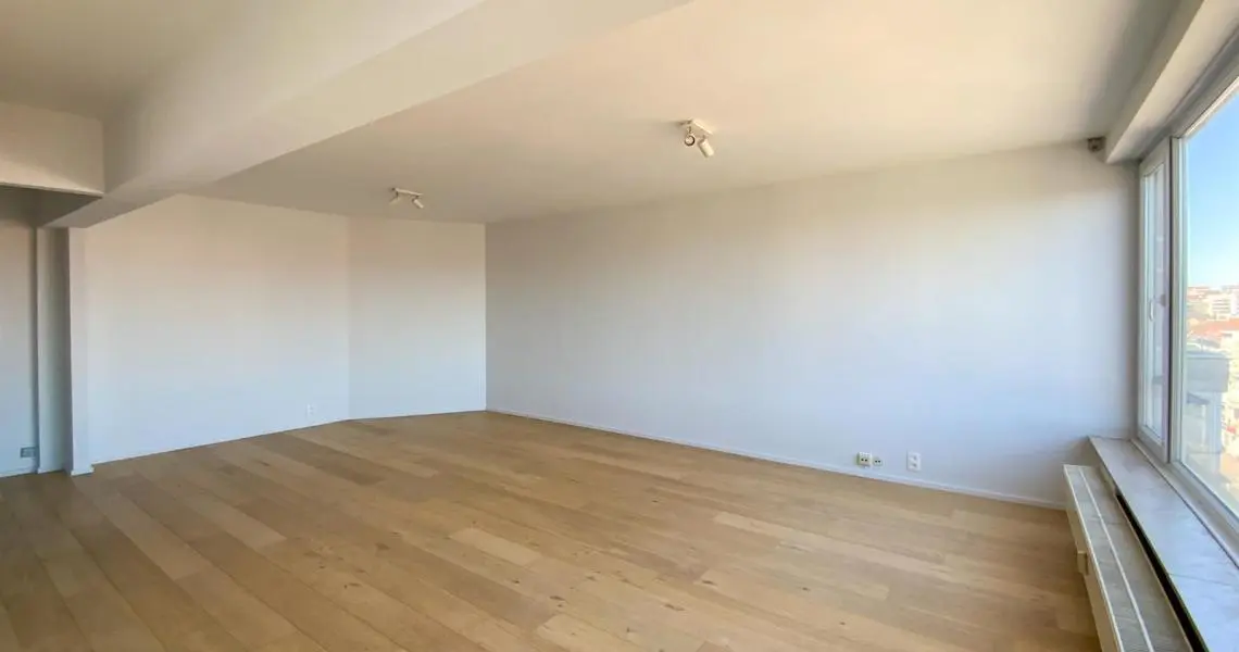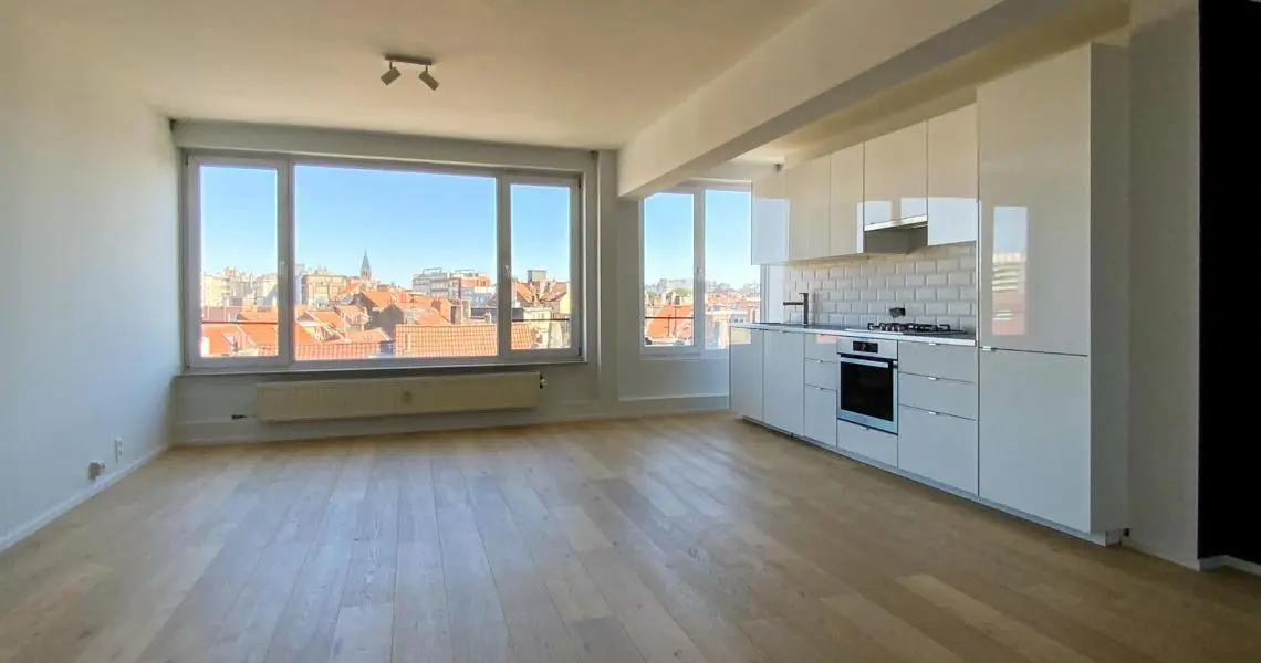 LOUE - Avenue de la Chasse 94, à proximité de Mérode, de la Chasse, des commerces et des transports en communs, Au 6ème étage, superbe appartement 2ch rénové en 2015. Calme, lumineux, parquet partout et offrant : hall d'entrée avec wc séparé, un superbe living très spacieux (+/- 45m2), une cuisine US hyper-équipée, deux chambres (+/- 15 - 11m2), une salle de bains, une buanderie (avec machines à laver/sécher). Cave. PEB (E). Double vitrage. Charges : 150eur/mois (chauffage, eau, communs, conciergerie). Libre immédiatement.