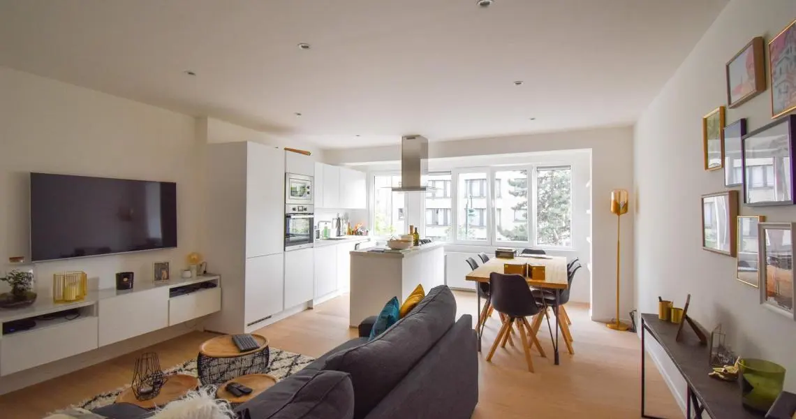 Forest, limite Uccle, à proximité de l'Altitude 100, en face du parc Duden, des commerces et transports en communs, superbe appartement entièrement rénové en 2018, calme, lumineux, parquet partout et offrant : hall d'entrée avec wc séparé, séjour de +/-30m2, cuisine américaine super équipée, chambre avec blacon, salle de douche. Double vitrage. Ascenseur. Cave. Parlophone. PEB : E. Charges de 175€/mois. Libre à l'acte. A saisir sans tarder !