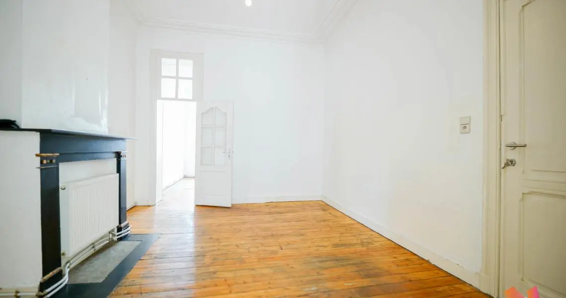 Forest, en bas du parc de Forest des commerces et des transports en communs, Rue de Mérode 239, au 1er étage et 2ème étage d'un superbe immeuble de maître, 2 appartements 1ch de +-70m2 avec balcons à vendre, très lumineux, parquet d'origine partout, moulures aux plafonds, et offrant :