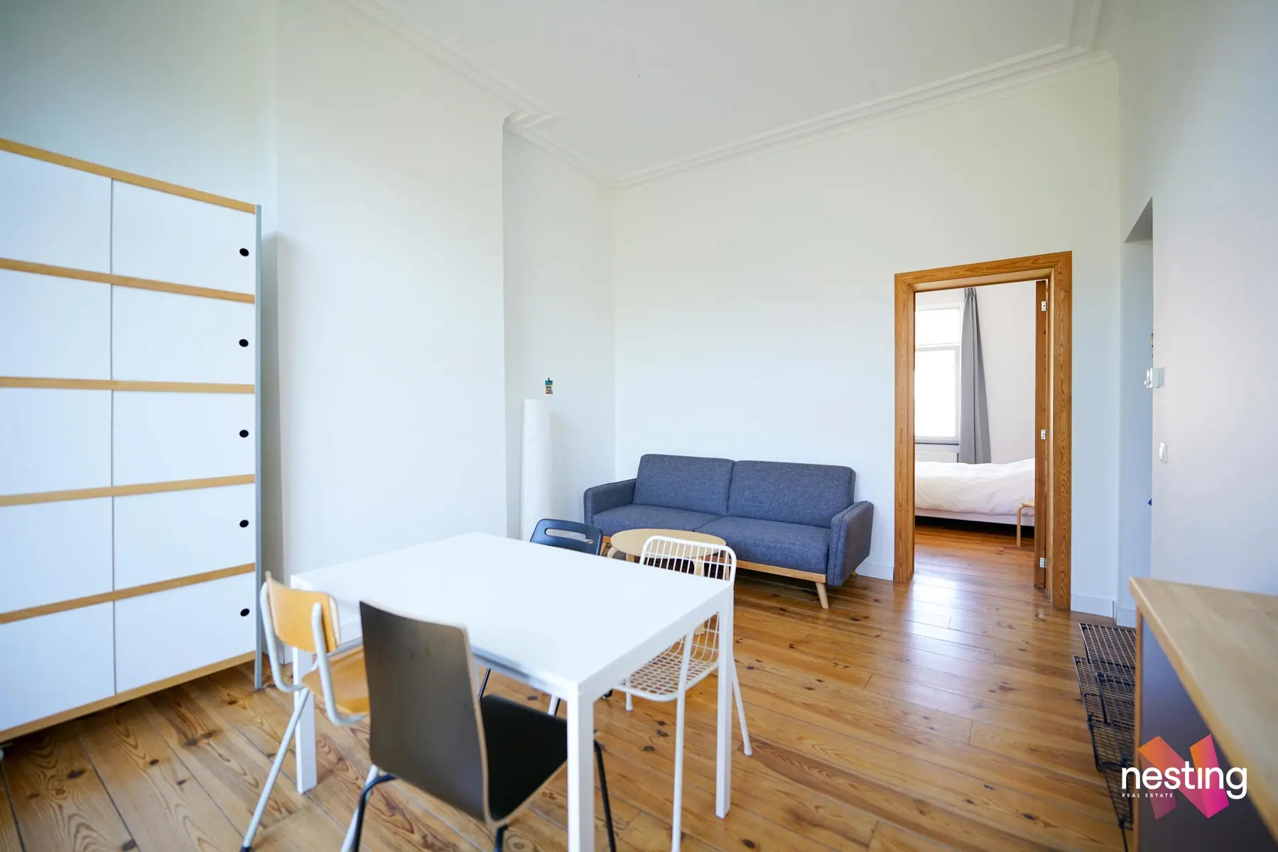 Saint-Gilles, limite Forest, sur le prestigieuse Avenue du Roi, à proximité du parc de forest, des commerces et transports en communs, superbe appartement meublé entièrement rénové en 2022, calme, lumineux, parquet partout et offrant :