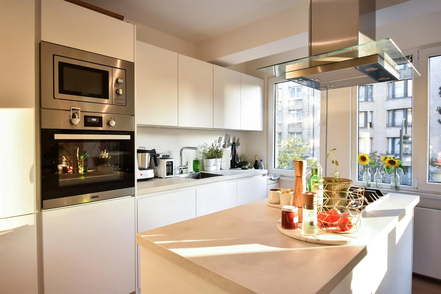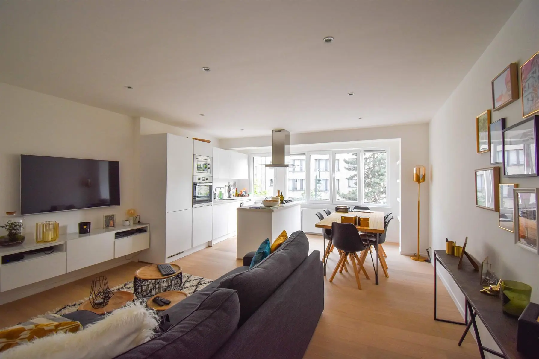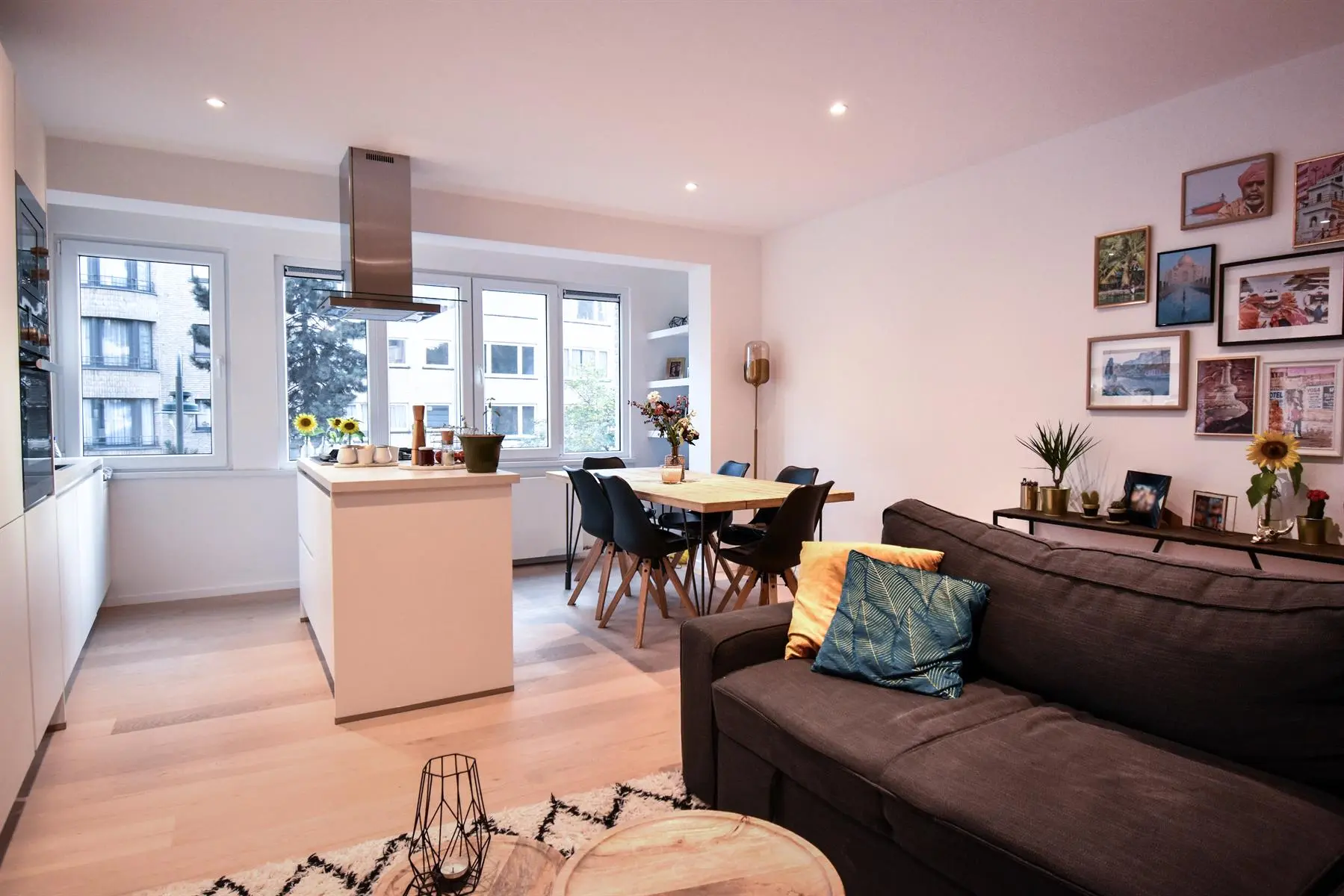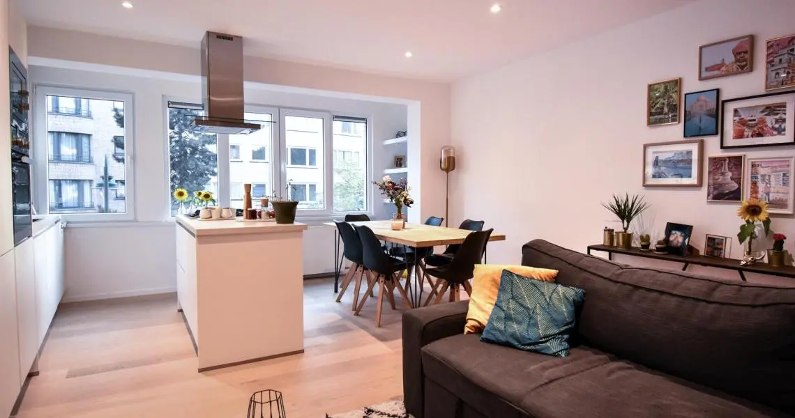 Forest, limite Uccle, à proximité de l'Altitude 100, en face du parc Duden, des commerces et transports en communs, superbe appartement meublé entièrement rénové en 2018, calme, lumineux, parquet partout et offrant :