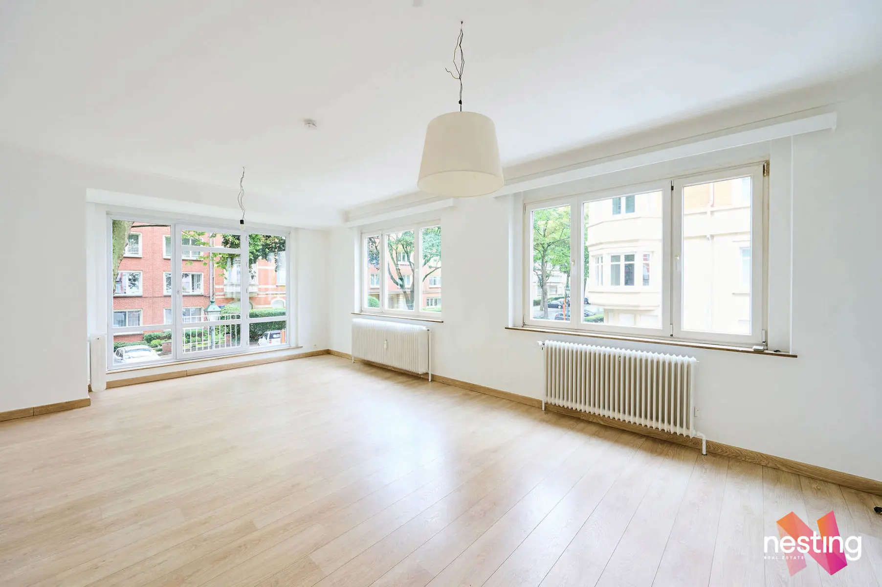 Forest, sur la Prestigieuse Avenue Molière, à deux pas de la Place d'Arezzo et de la Bascule, venez découvrir ce bel appartement de +- 120 m2 et comprenant : un hall d'entrée, un grand séjour lumineux, une cuisine fermée équipée avec un balcon, un hall de nuit avec rangements, une salle de bains avec espace buanderie et un balcon, un wc séparé et trois chambres (+- 17 - 13 et 11m2). L'appartement dispose également d'une cave .