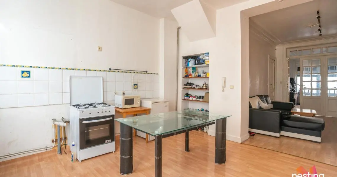Forest, Rue Berthelot 126, dans une rue calme idéalement située par sa proximité avec le parc de Forest, de nombreux commerces et transports en commun, dans une maison de Maître, bel appartement 1ch de +/-66m² brut + 63m2 de cave à aménager.