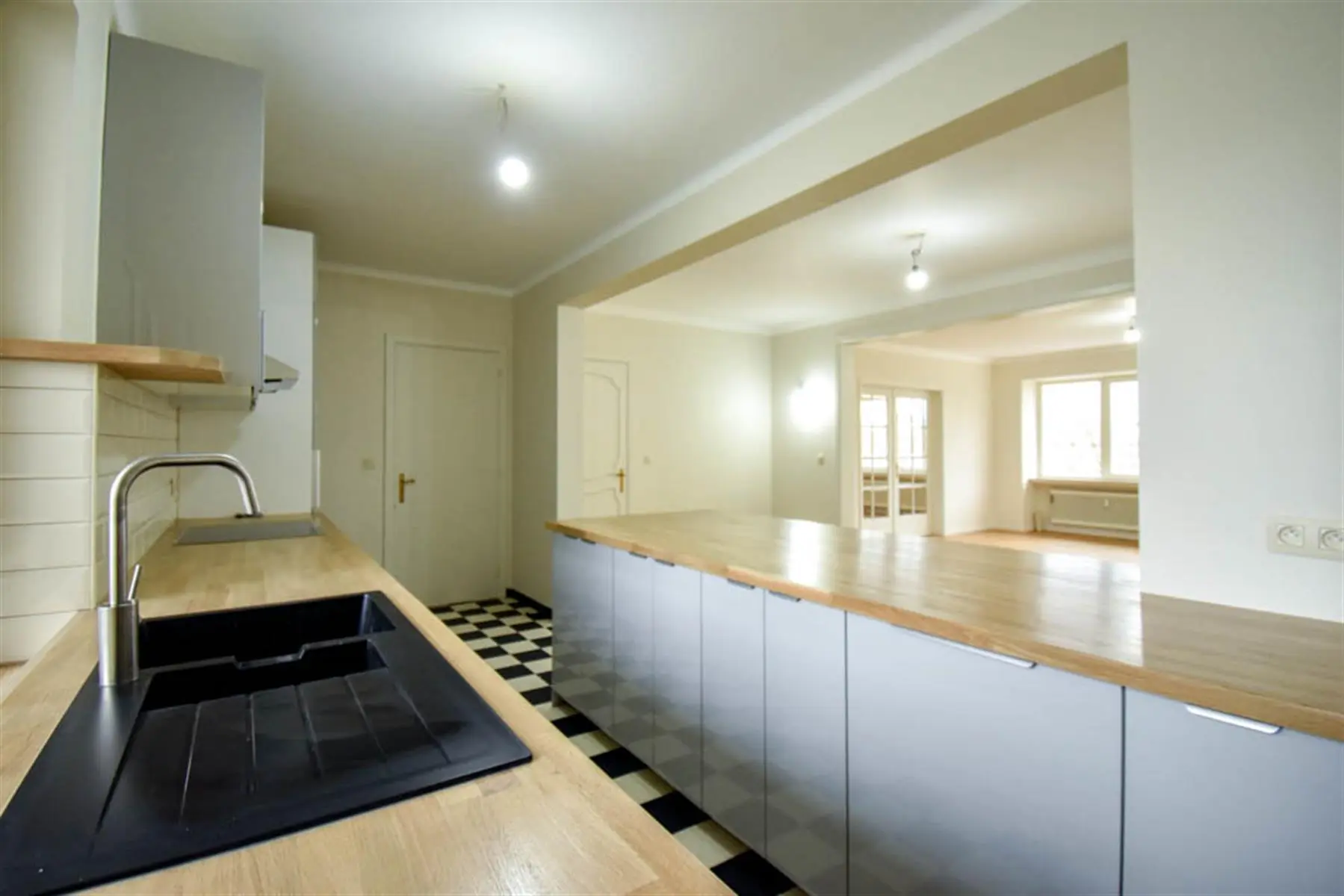 Vaste hall d'entrée, grand séjour de +/- 55m², grande cuisine US donnant accès à la terrasse de +/- 5m² exposée sud, hall de nuit avec placards, 3 chambres, salle de bains, buanderie, wc séparé.
