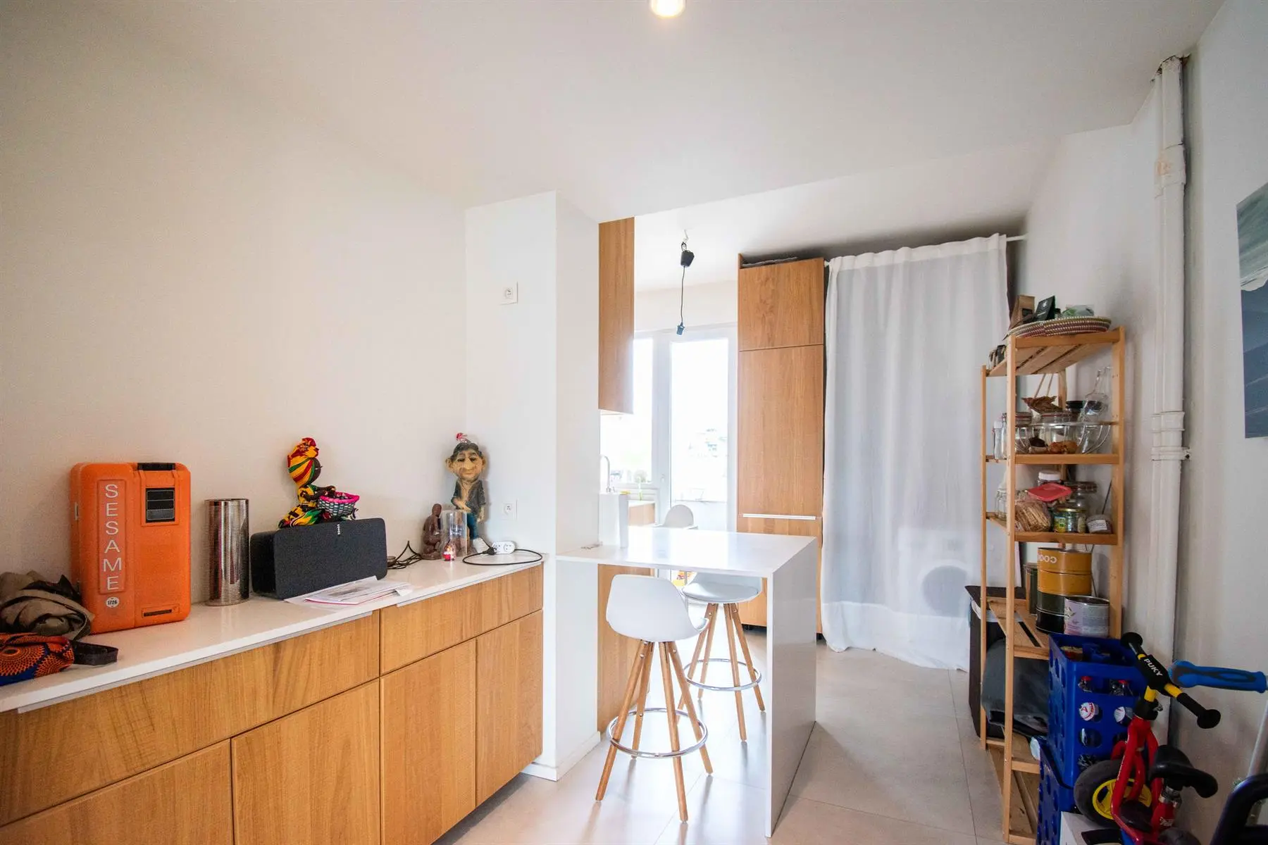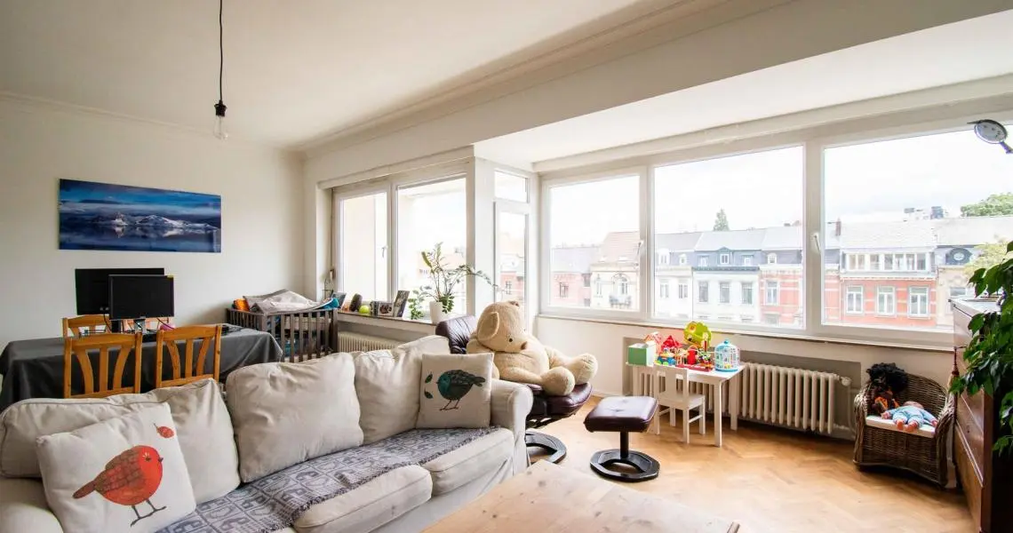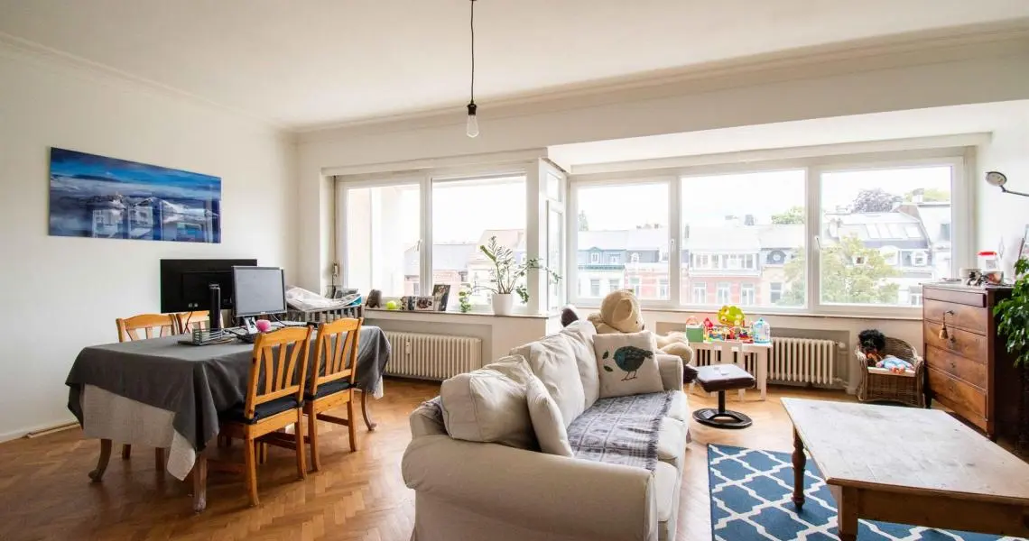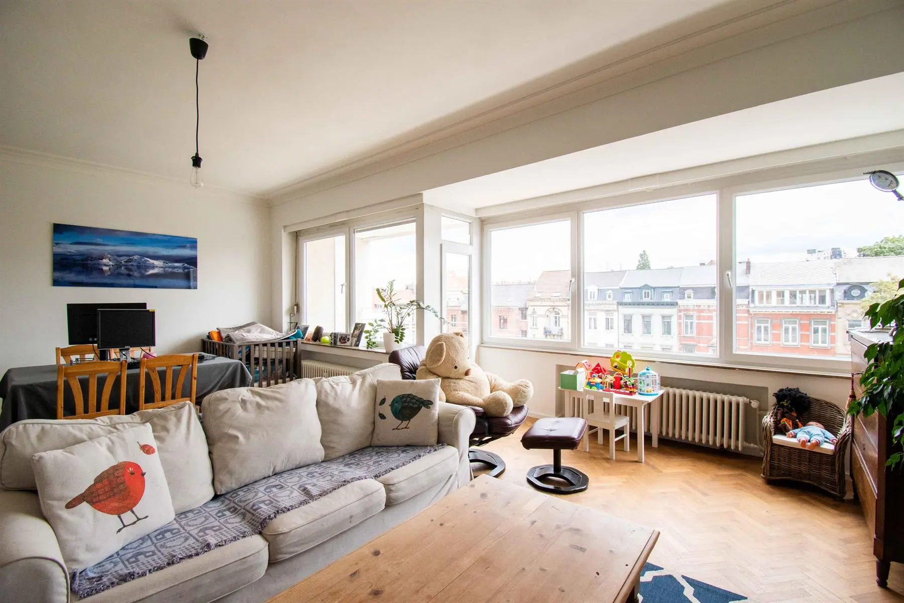 LOUE - Ixelles, à proximité de l'Abbaye de la cambre, des étangs d'ixelles, de l'ULB des commerces et des transports en communs, au 5ème étage d'un immeuble de 1949, superbe Appartement rénové de +/-105m², très lumineux, calme, et offrant : Hall d'entrée avec vestiaire, un vaste salon de +/-35m2 donnant accès à une terrasse de 3m², une cuisine ouverte hyper équipée avec un balcon à l'arrière et buanderie, hall de nuit, toilette indépendante, salle de bain, deux chambres (15 et 12m2). Double vitrage. Porte blindée. Cave. Charges de 150 euros : communs et chauffage. Disponible à partir du 15 Août. PEB : D- . A visiter sans tarder !
