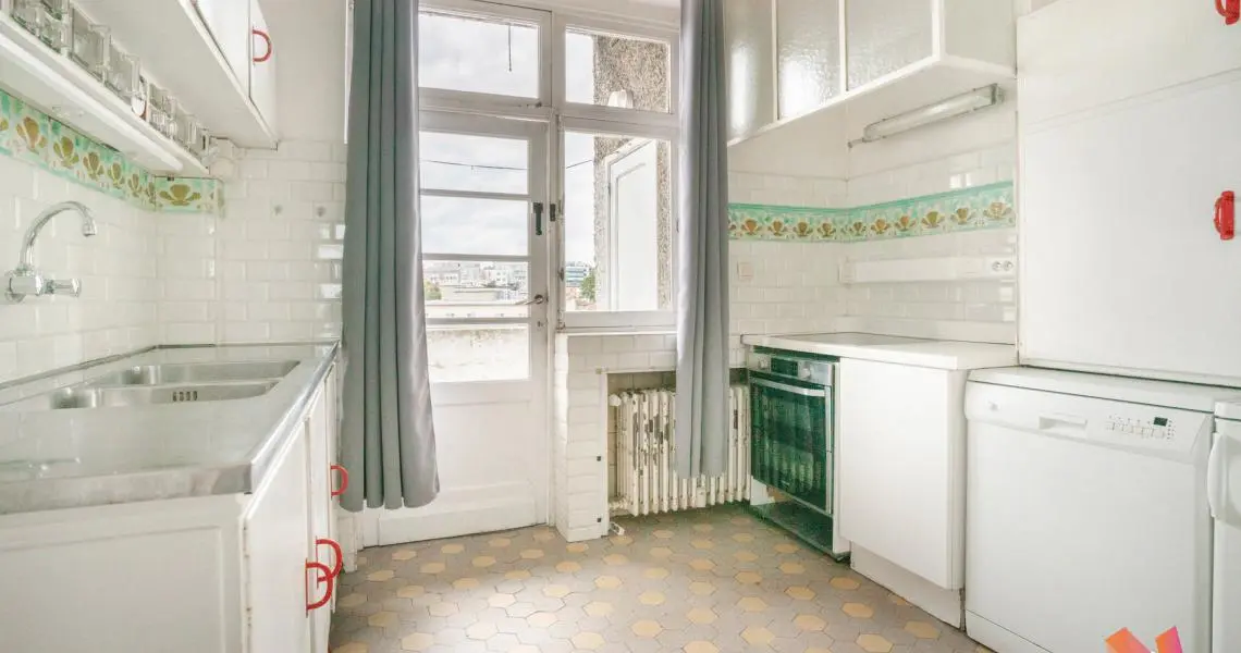 L'appartement conserve le charme de ses origines ( hauts plafonds, portes vitrées, radiateurs en fonte,..)