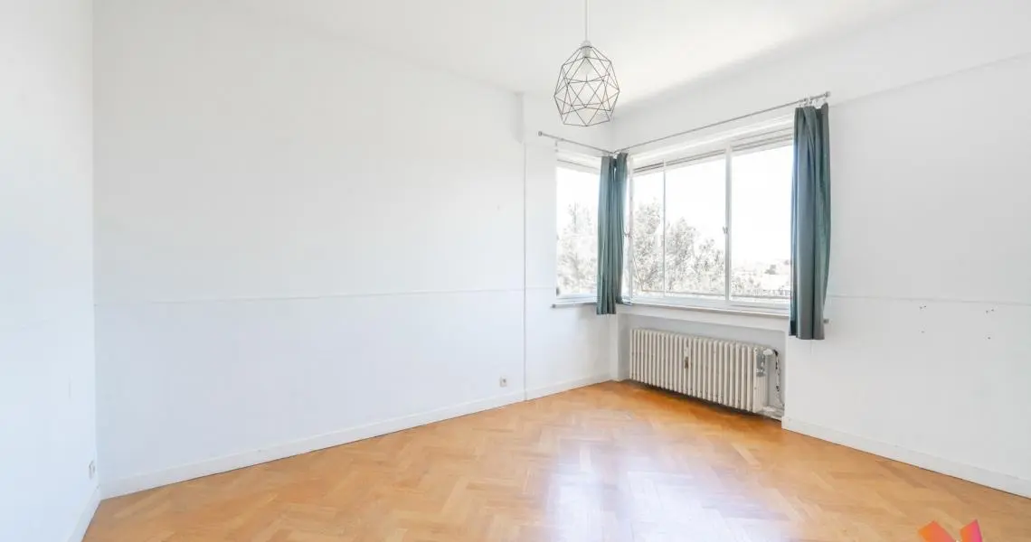L'appartement se compose comme suit : un hall d'entrée avec vestiaire et wc séparé, un magnifique séjour de +- 45m2 (actuellement divisé pour en faire une 3e chambre), une cuisine fermée spacieuse donnant sur petite terrasse, un hall de nuit, 2 chambres (+-14m2 et +-16m2 ) et une salle de bains.