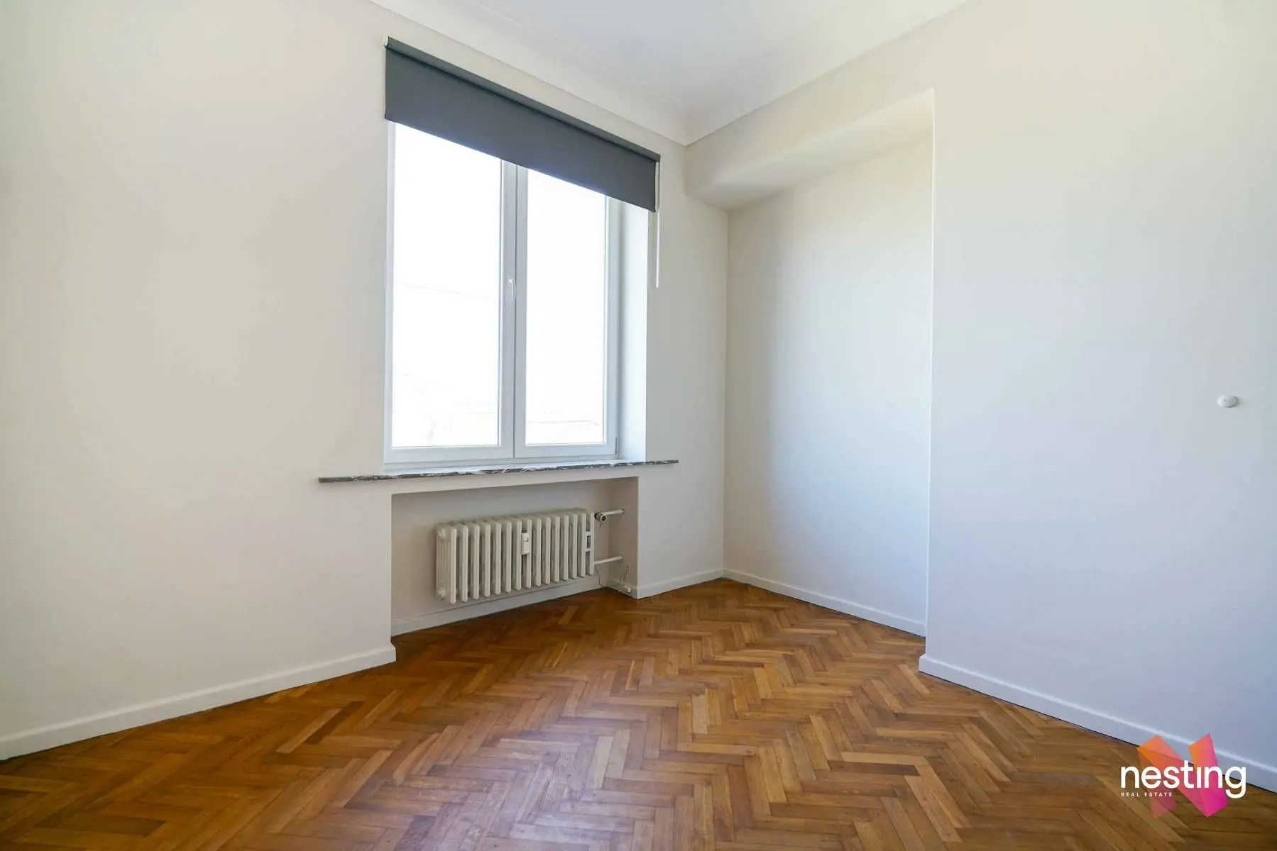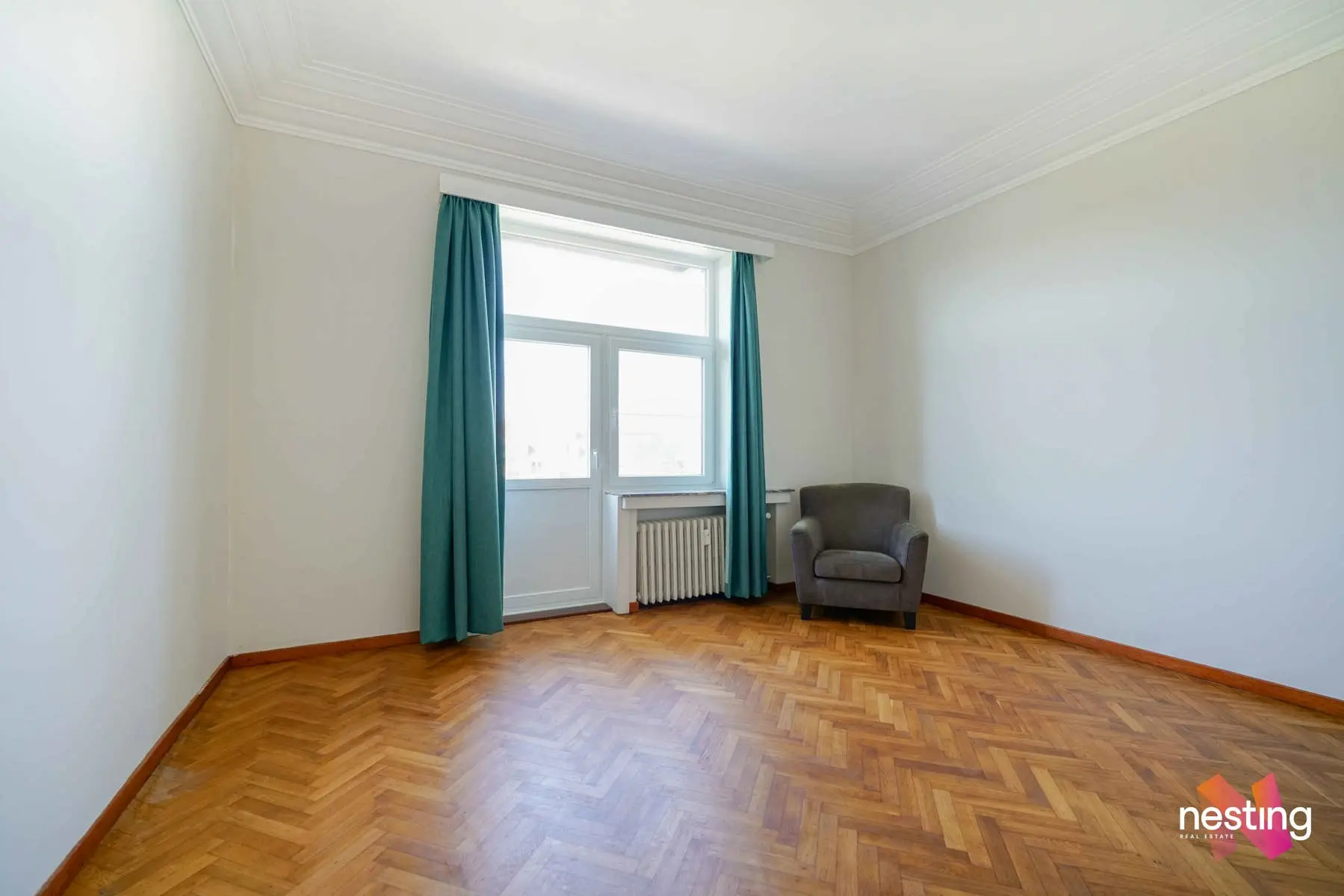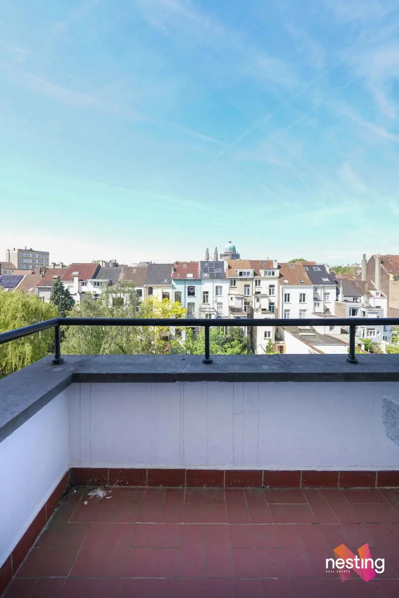 Jette, Avenue de Jette, à proximité de la place du Miroir et des transports en commun, venez découvrir ce bel appartement lumineux, rénové en 2022 de +- 135 m2 (bruts) et comprenant : un grand un hall d'entrée, une cuisine fermée super équipée avec des matériaux de qualité (terrazzo, noyer, "quartz" etc.) et un coin buanderie, un grand living de +- 40 m2 avec possibilité d'installer une cassette au gaz, un balcon est, un hall de nuit et de nombreux rangements, un wc séparé, 2 chambres (+- 18 et 11) dont une avec terrasse sud ouest donnant sur la Basilique et une salle de bain. L'appartement dispose également d'une grande cave (+- 6m2) et d'une chambre de bonne de +- 8m2 au 6e étage.