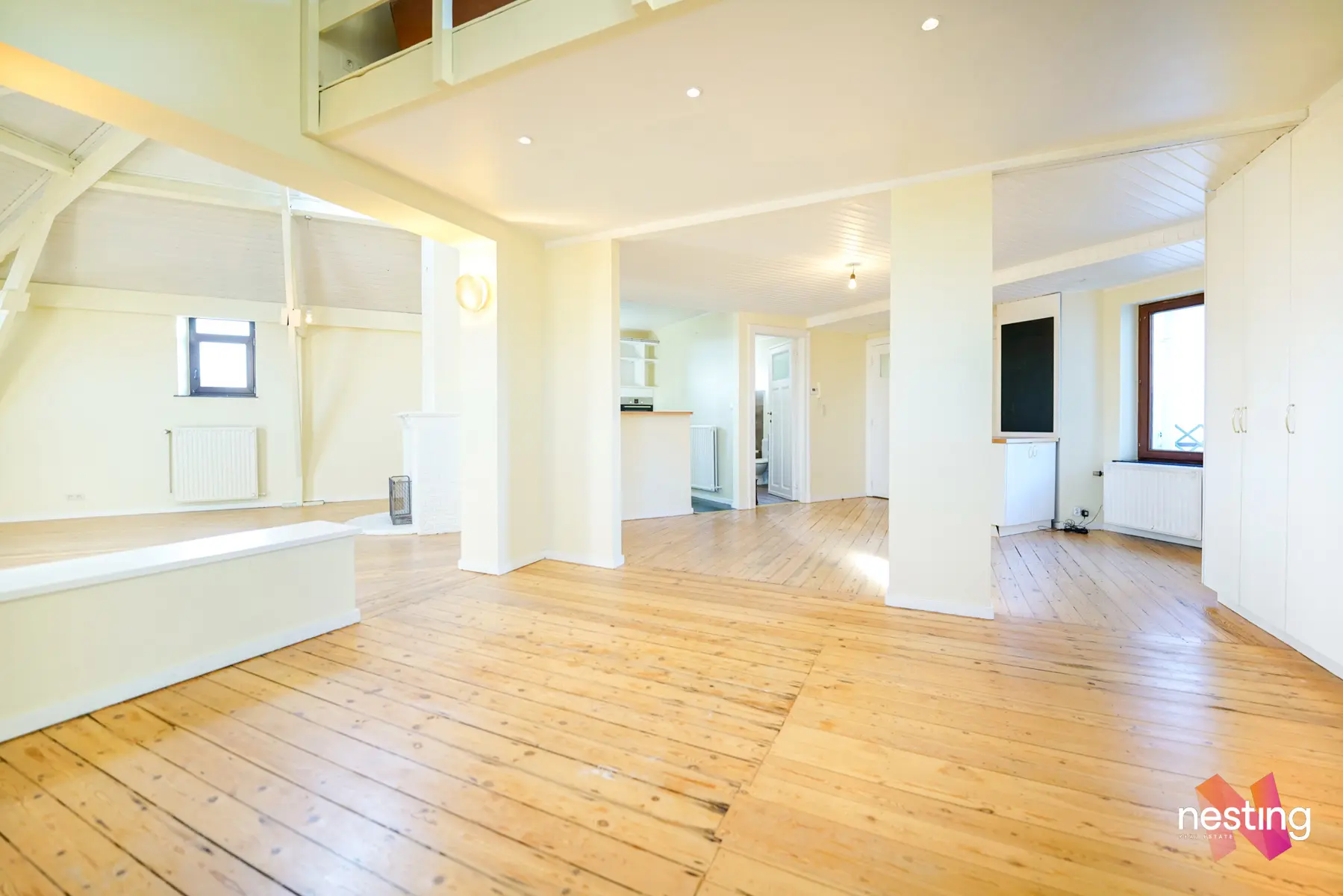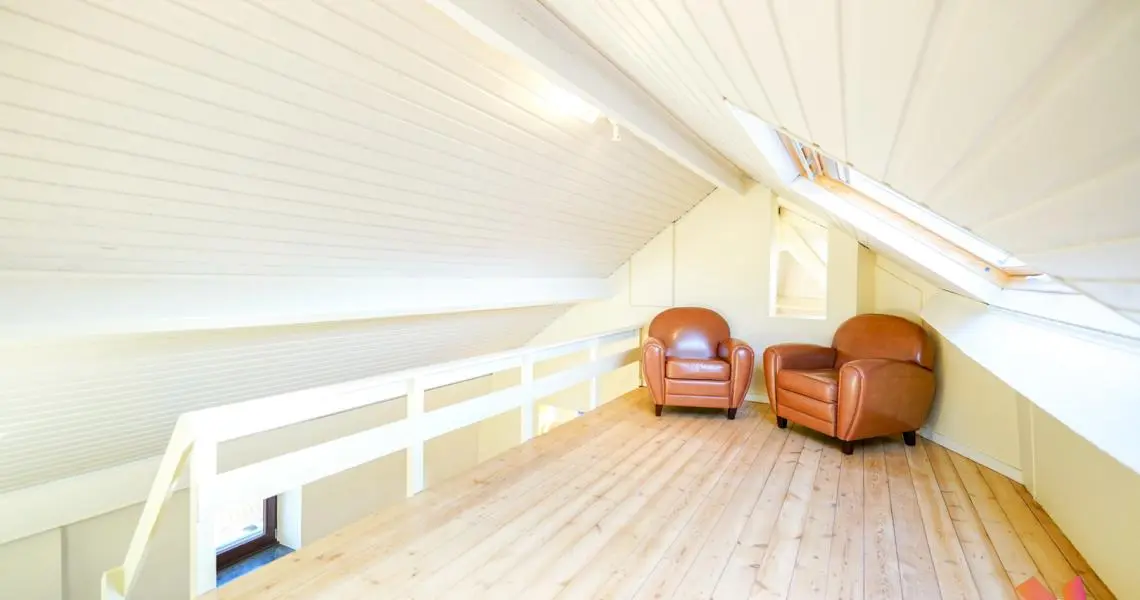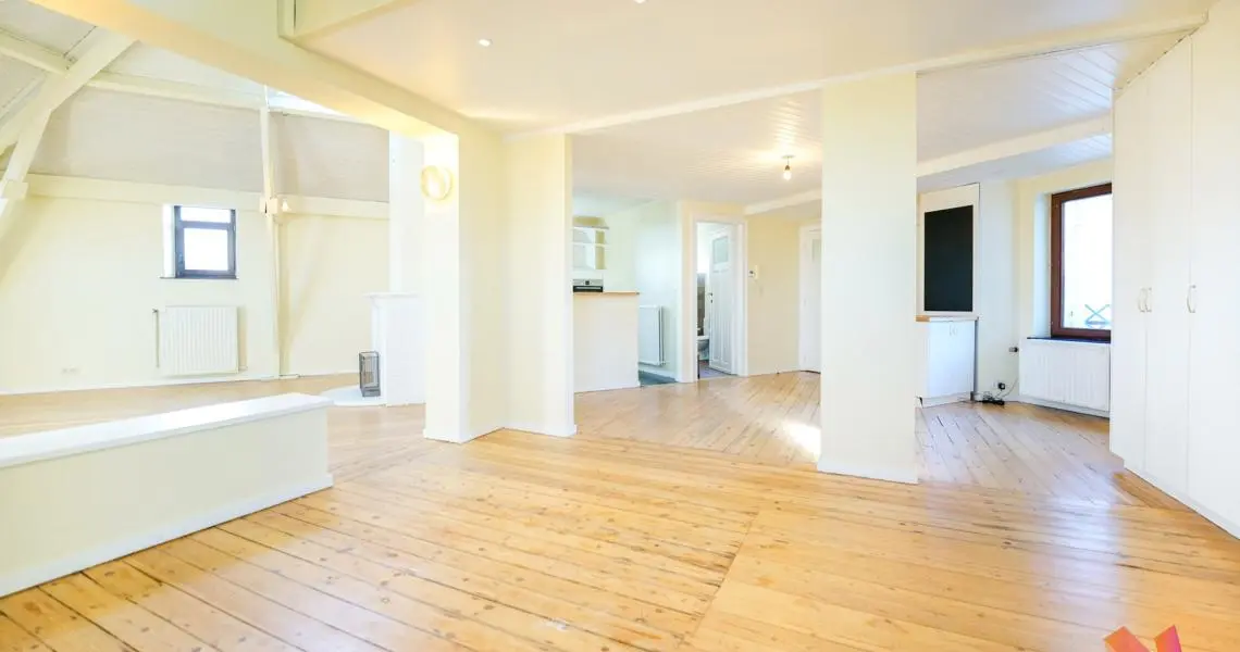 Un séjour de 35 m², salle à manger de 20 m², cuisine américaine super-équipée, deux chambres avec dressing et espace bureau (+- 30 et 35 m²) dont une donnant sur une terrasse de +- 5 m², salle de bain