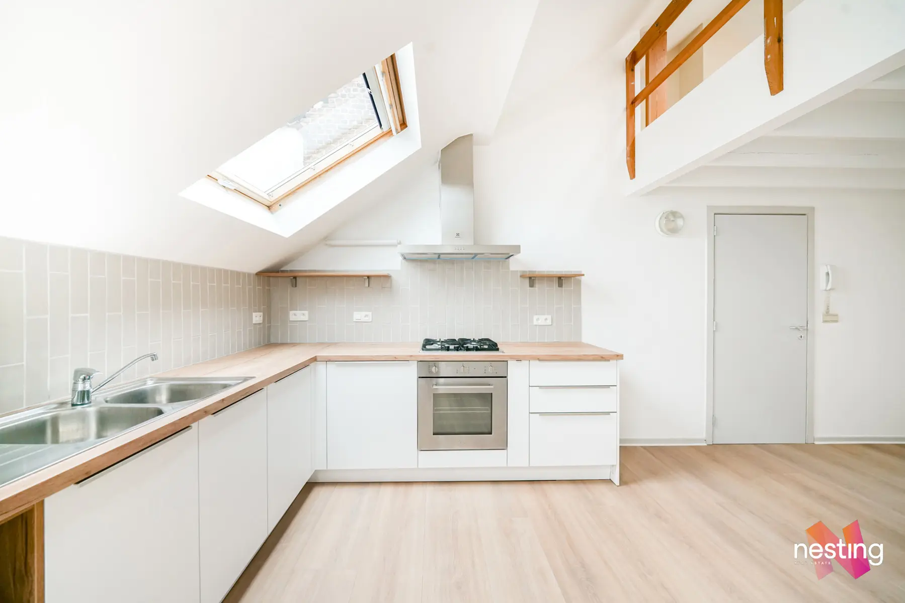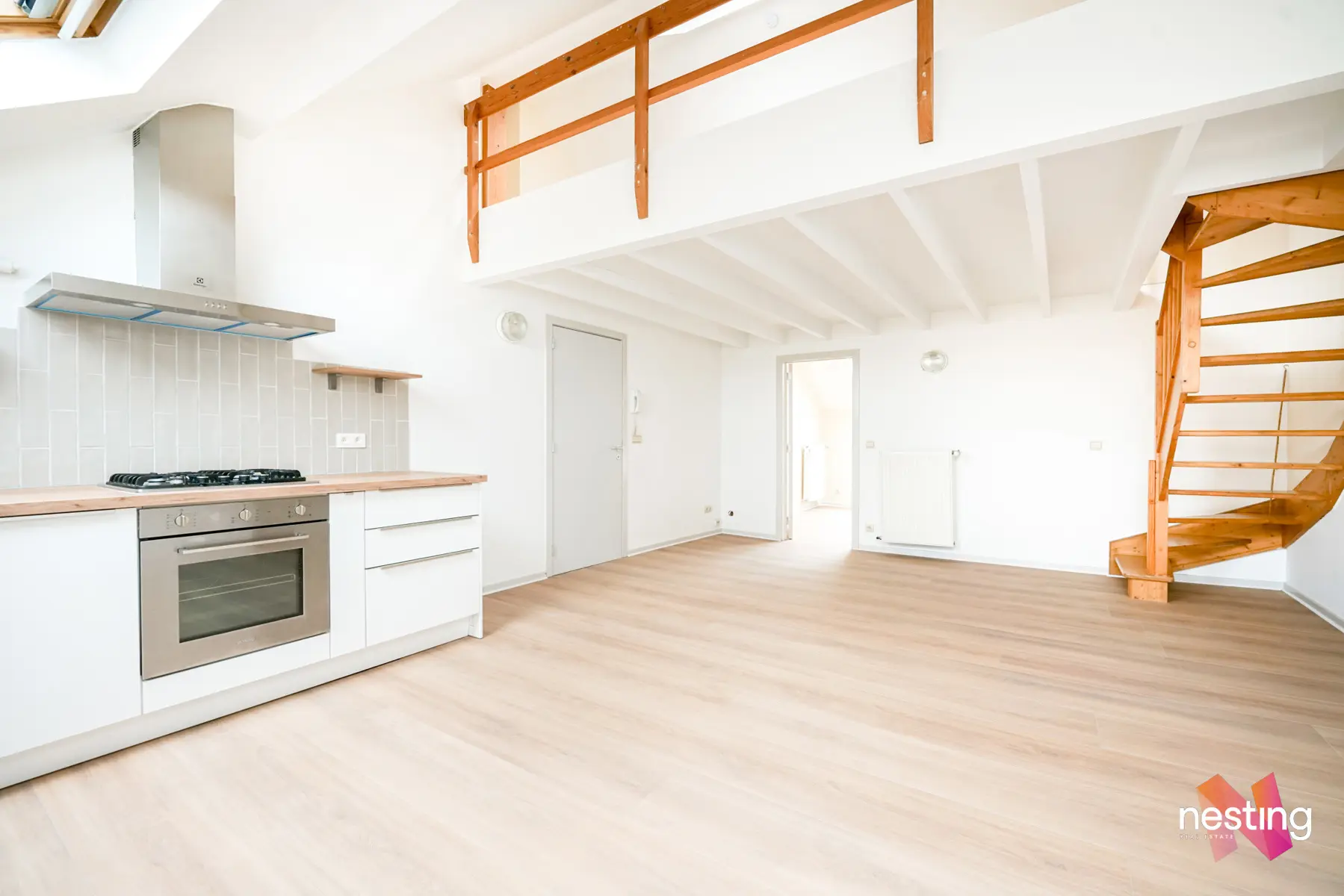 Grand séjour de +/- 29 m2 + cuisine ouverte semi- équipée (sans frigo ni congélateur), une salle de bain, un WC séparé , ainsi qu'une chambre et un bureau.