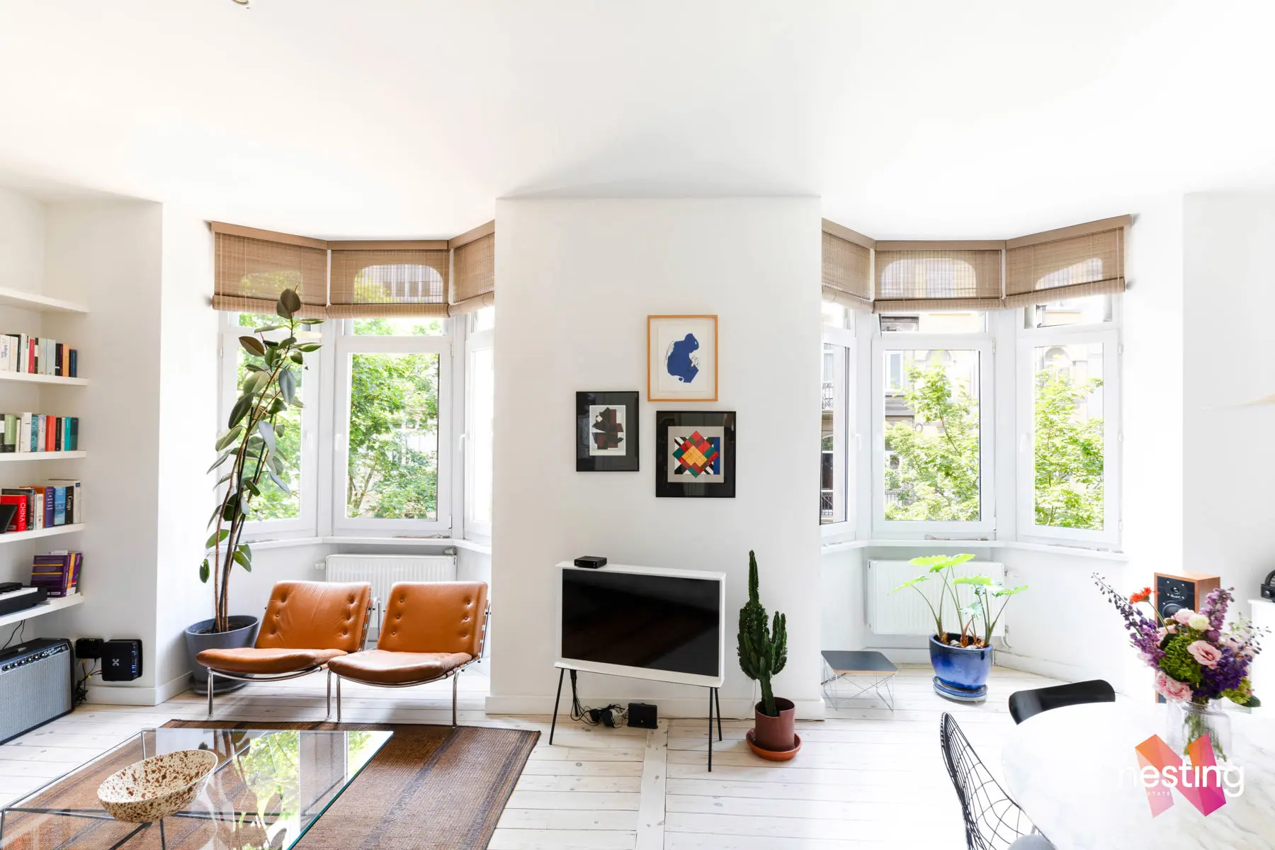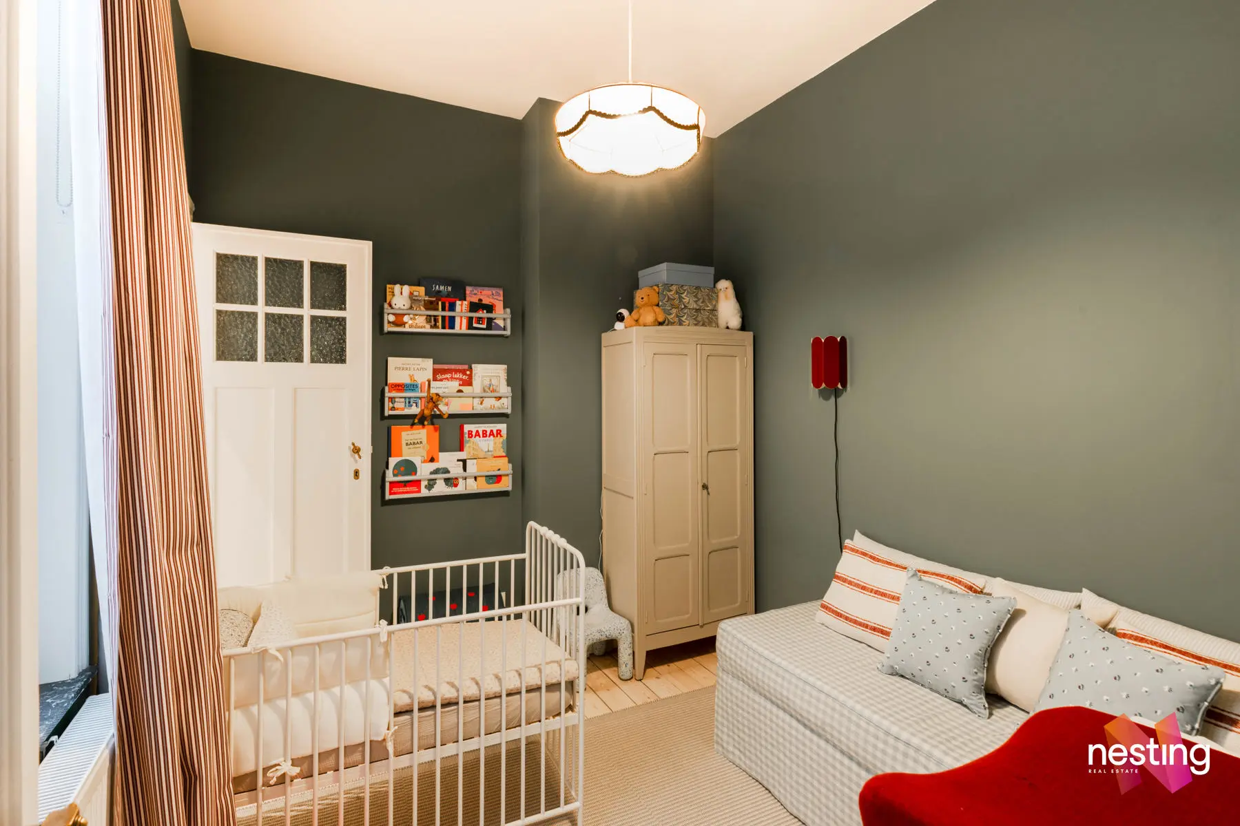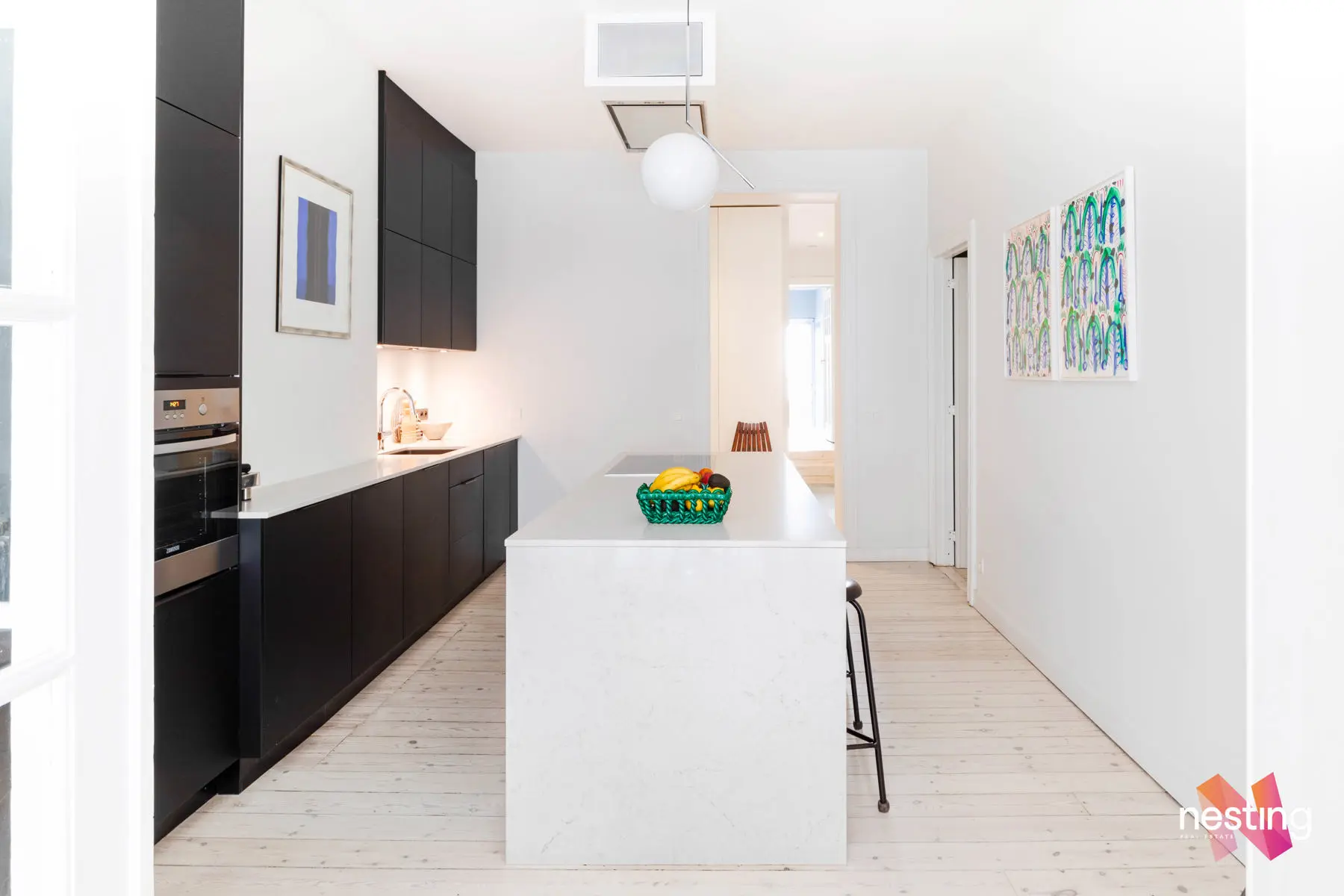 Nombreux rangements sur mesure, cachet et éléments d’époque conservés (portes, terrazzo), hauts plafonds