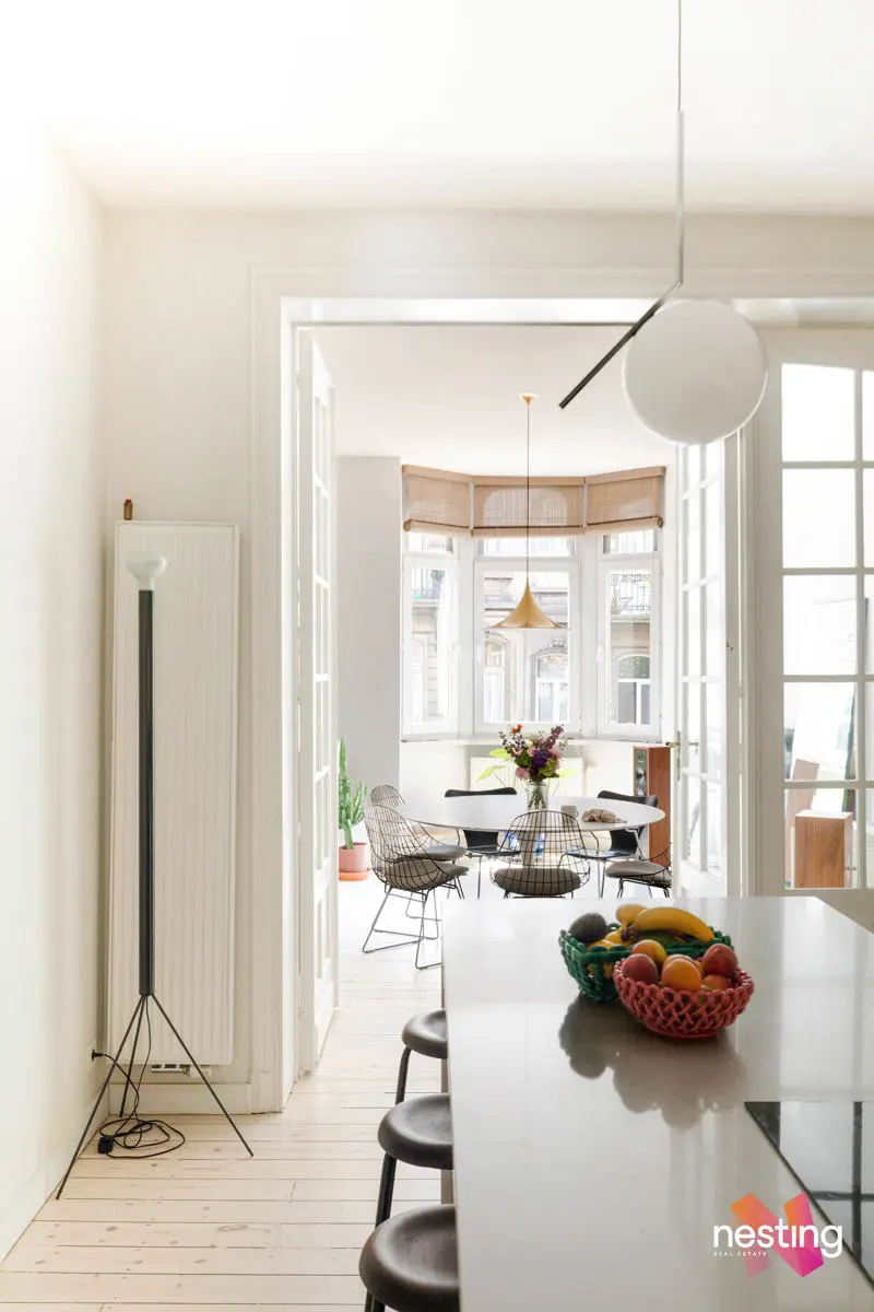 Saint-Gilles – Avenue Jean Volders, à deux pas du Parvis, venez découvrir ce superbe appartement de ±135 m² (selon le PEB), entièrement rénové par un architecte, situé au 2e étage d’un immeuble de style Art Déco, avec terrasse.