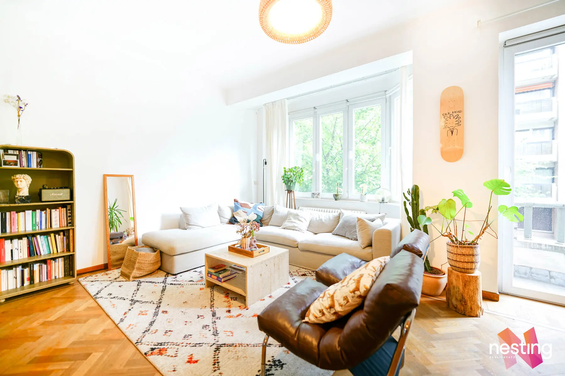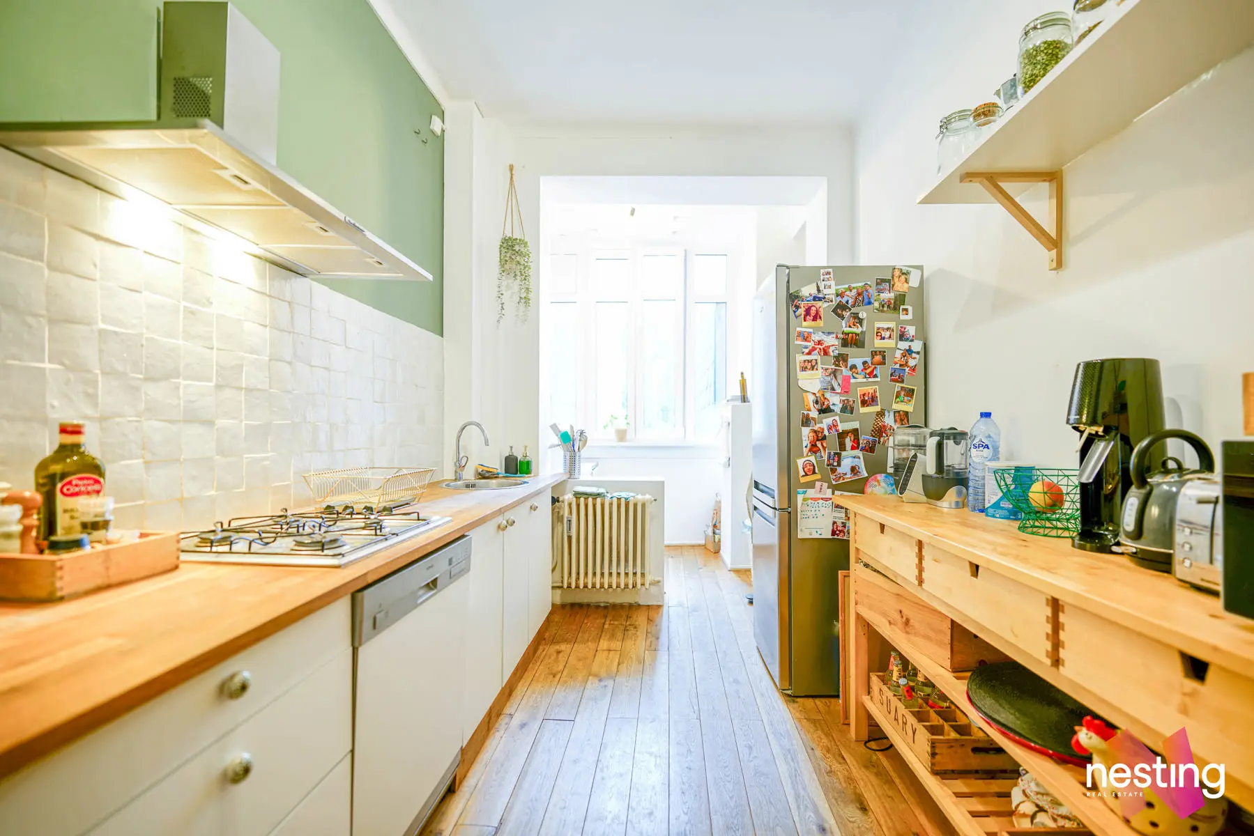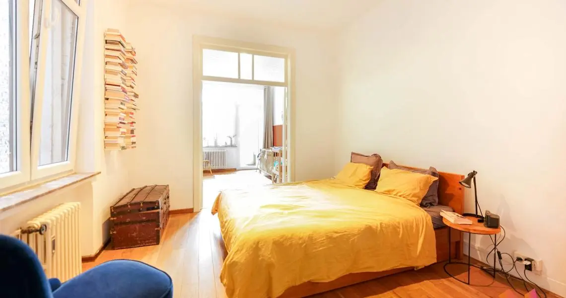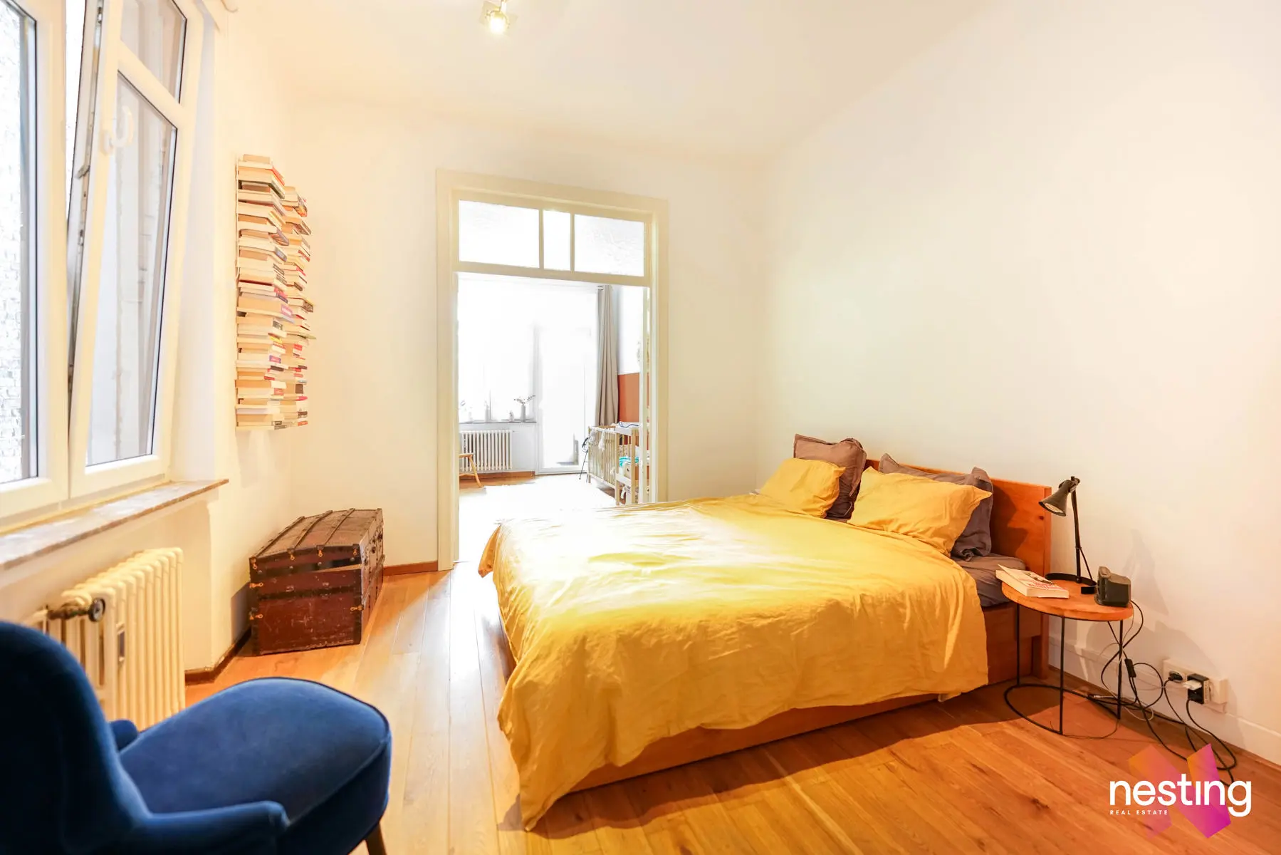 Schaerbeek, Avenue Chazal, venez découvrir ce magnifique appartement de +- 120 m2 comprenant : un hall d’entrée, une très spacieuse et lumineuse salle de séjour, deux chambres de 20 m2 en enfilade, une cuisine équipée, une petite pièce de rangement , une salle de bains, un W-C séparé, un petit balcon à l'avant, un plus grand à l'arrière.