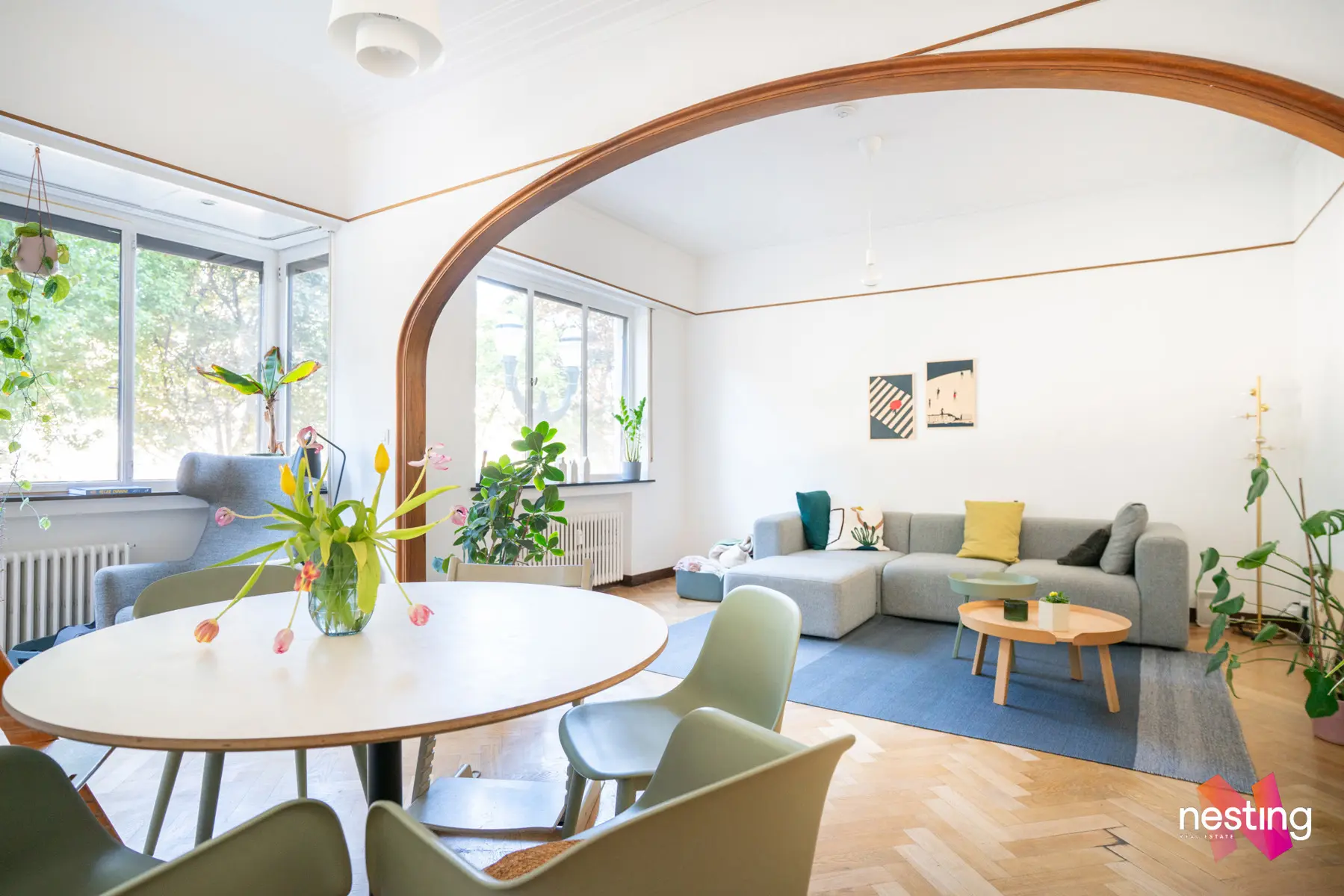 Schaerbeek, Dans la belle Avenue Paul Deschanel, à proximité du parc Josaphat, des commerces et des transports en communs, au 1er étage d'un superbe immeuble de +/-1930, appartement complètement rénové très lumineux et offrant:
