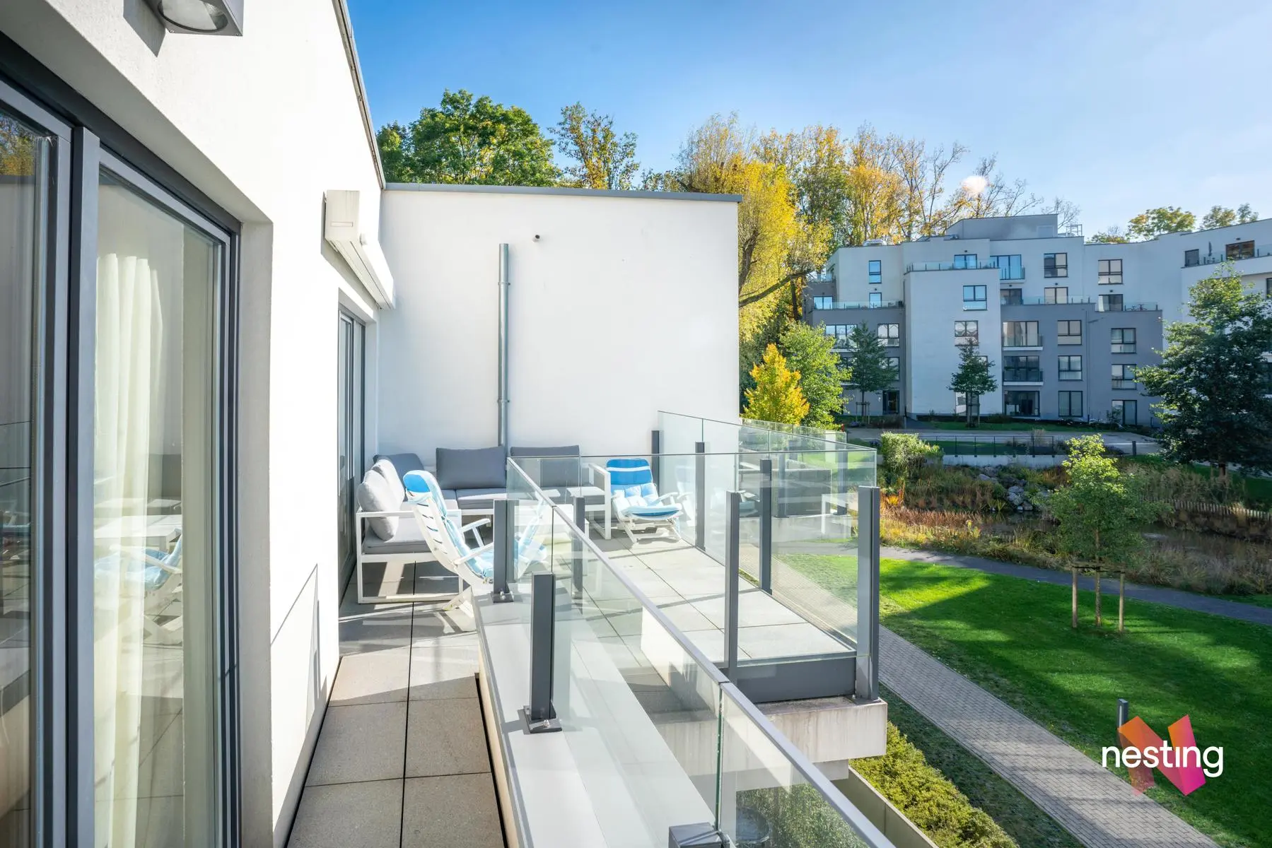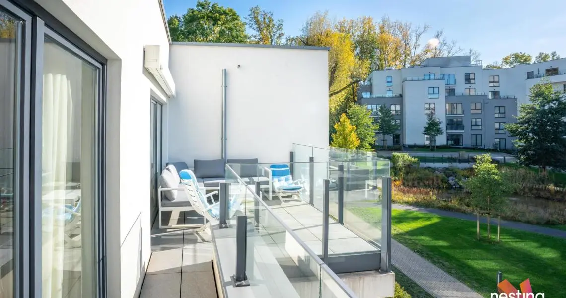 Uccle, à proximité de Stalle, de Calevoet, du Dieweg, des transports en communs et commerces, au 2ème étage sur 3 d'un immeuble récent, superbe appartement 3 chambres avec terrasses composé comme suit :