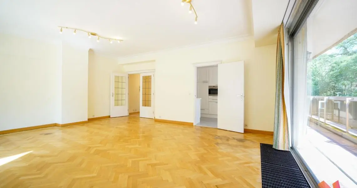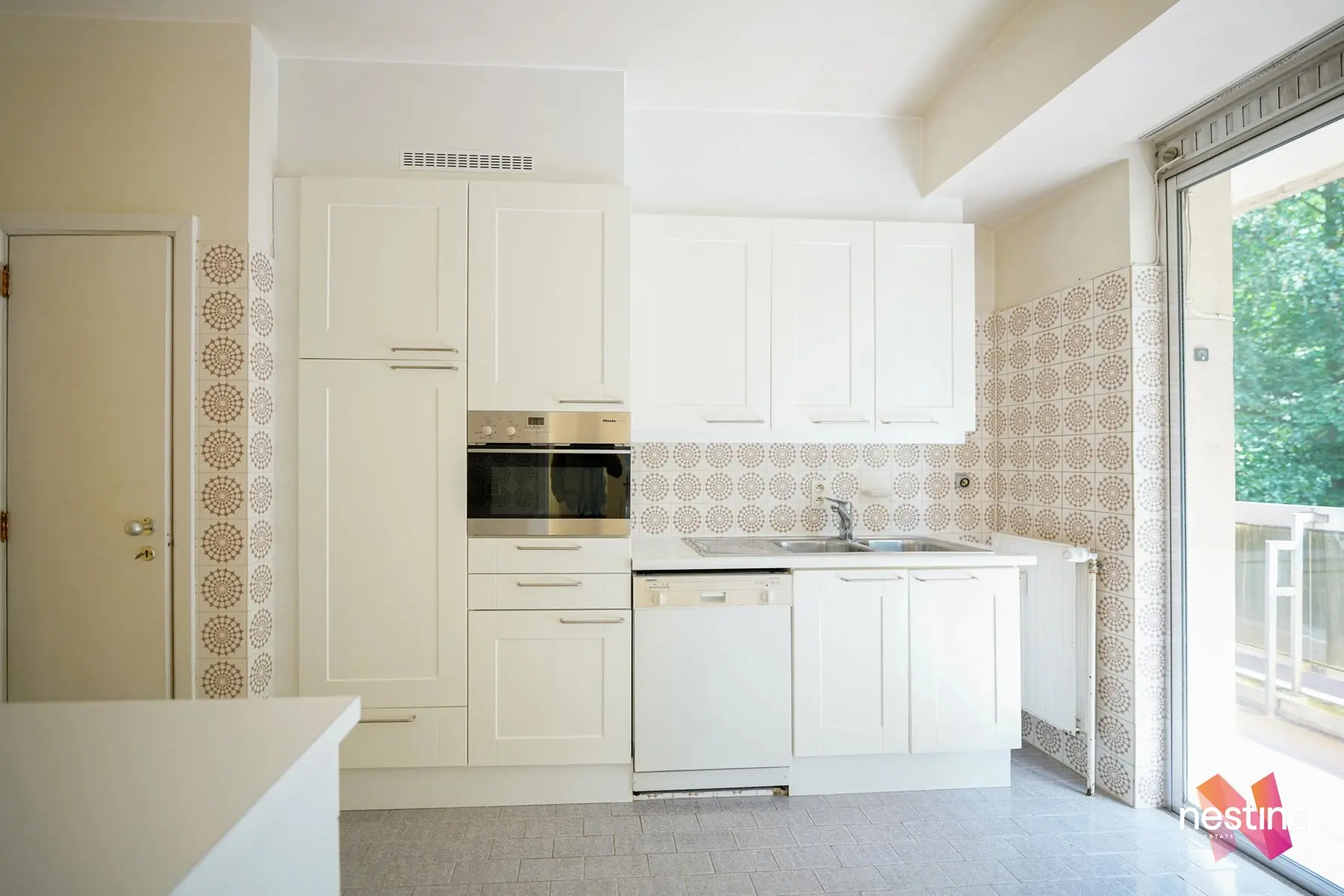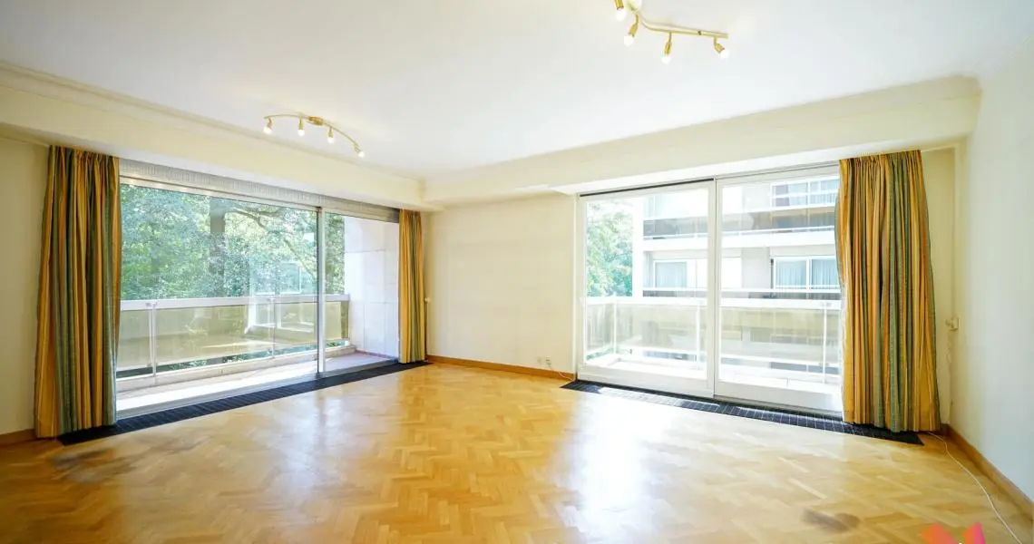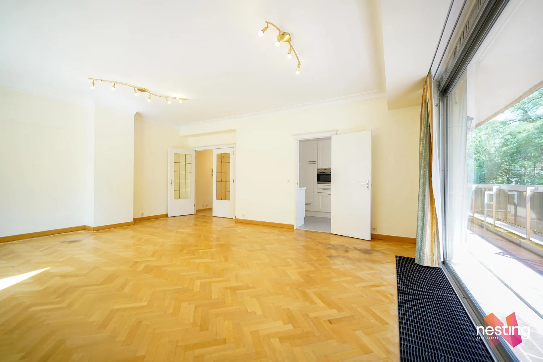 Uccle, sis Avenue de la Ferme Rose 9B, idéalement situé à proximité du Parc Brugmann de Vanderkindere, du square des Héros, de Winston Churchill, des transports et commerces, au 1er étage d'un immeuble calme, superbe appartement de +-75m2, en bon état, très lumineux et offrant :