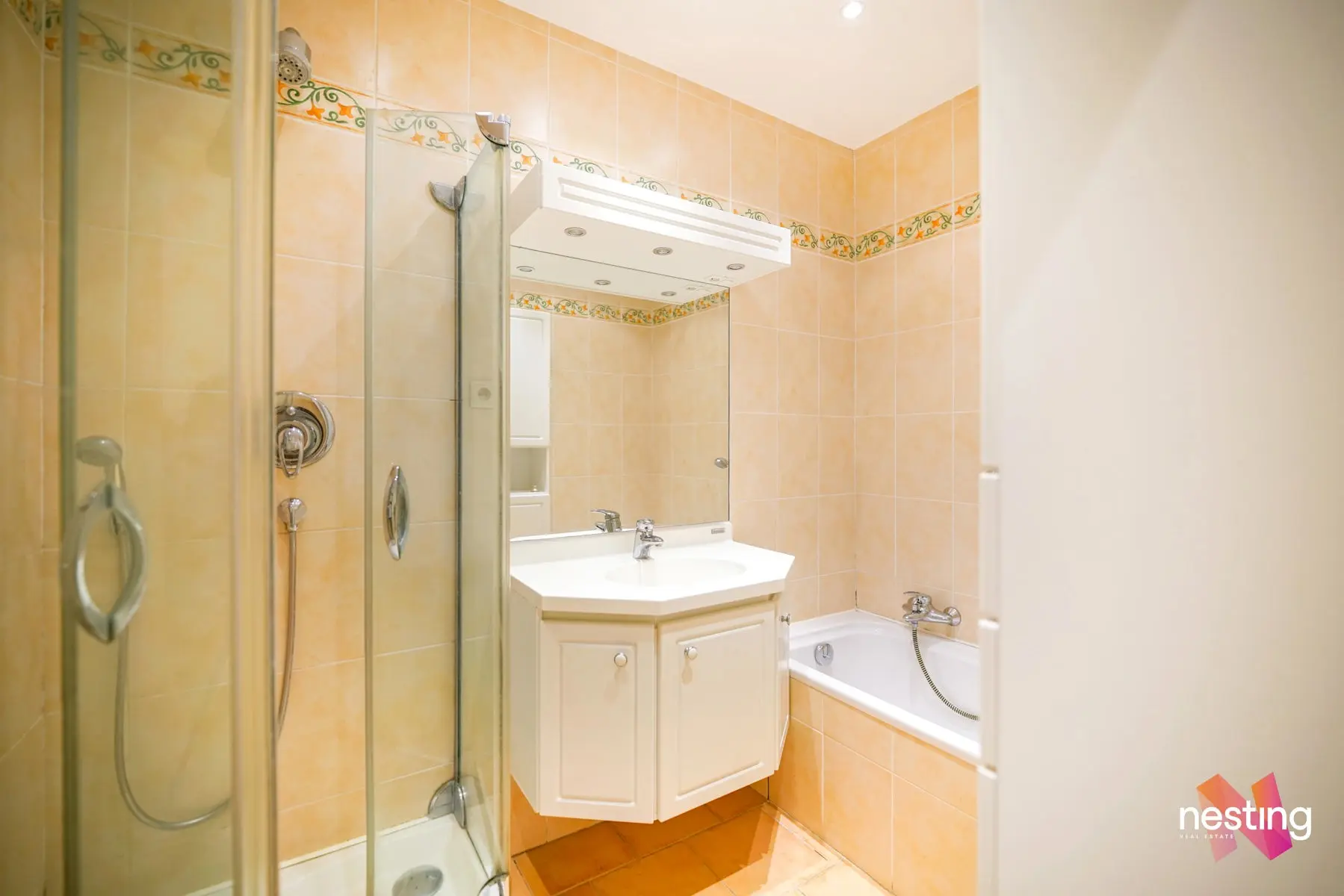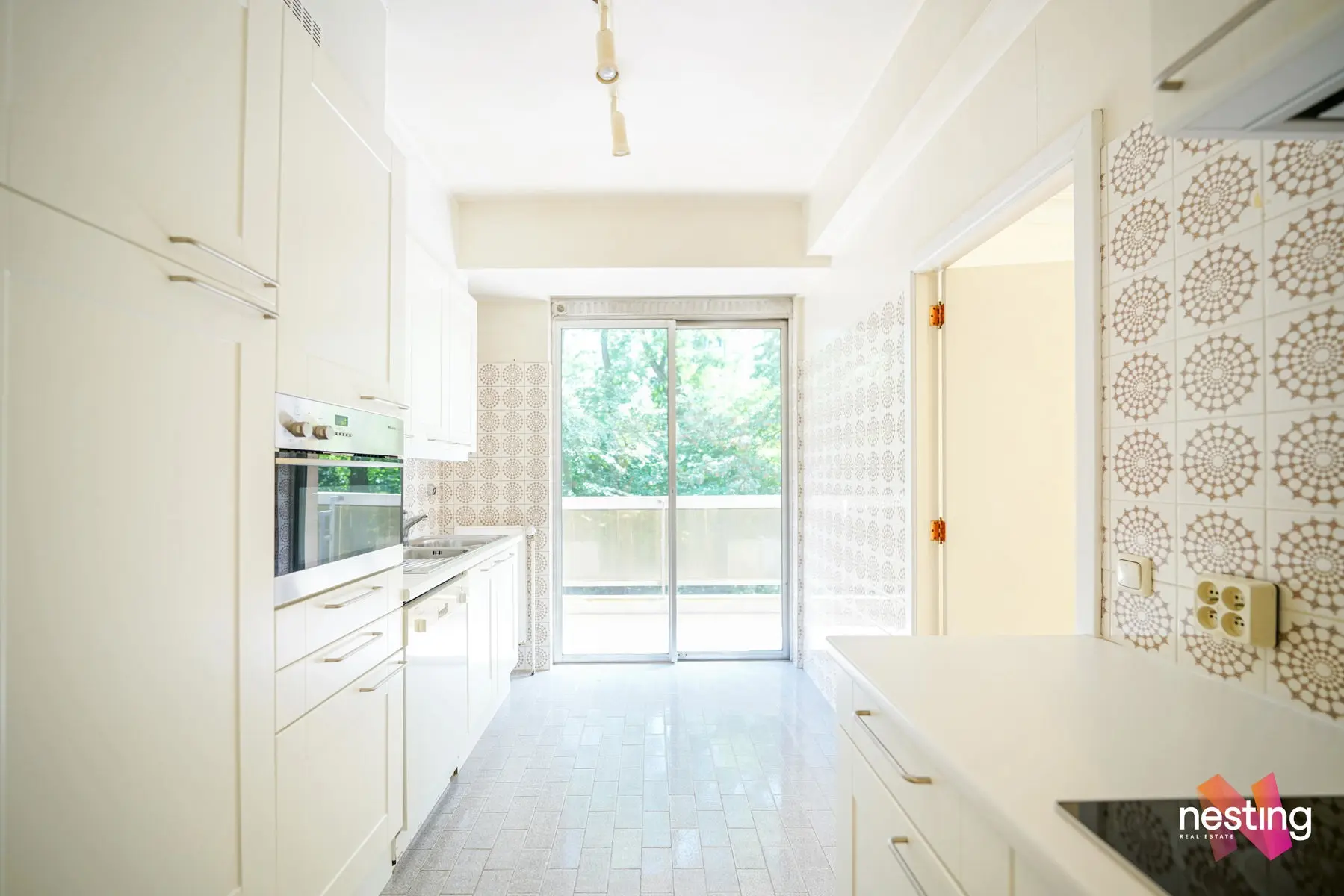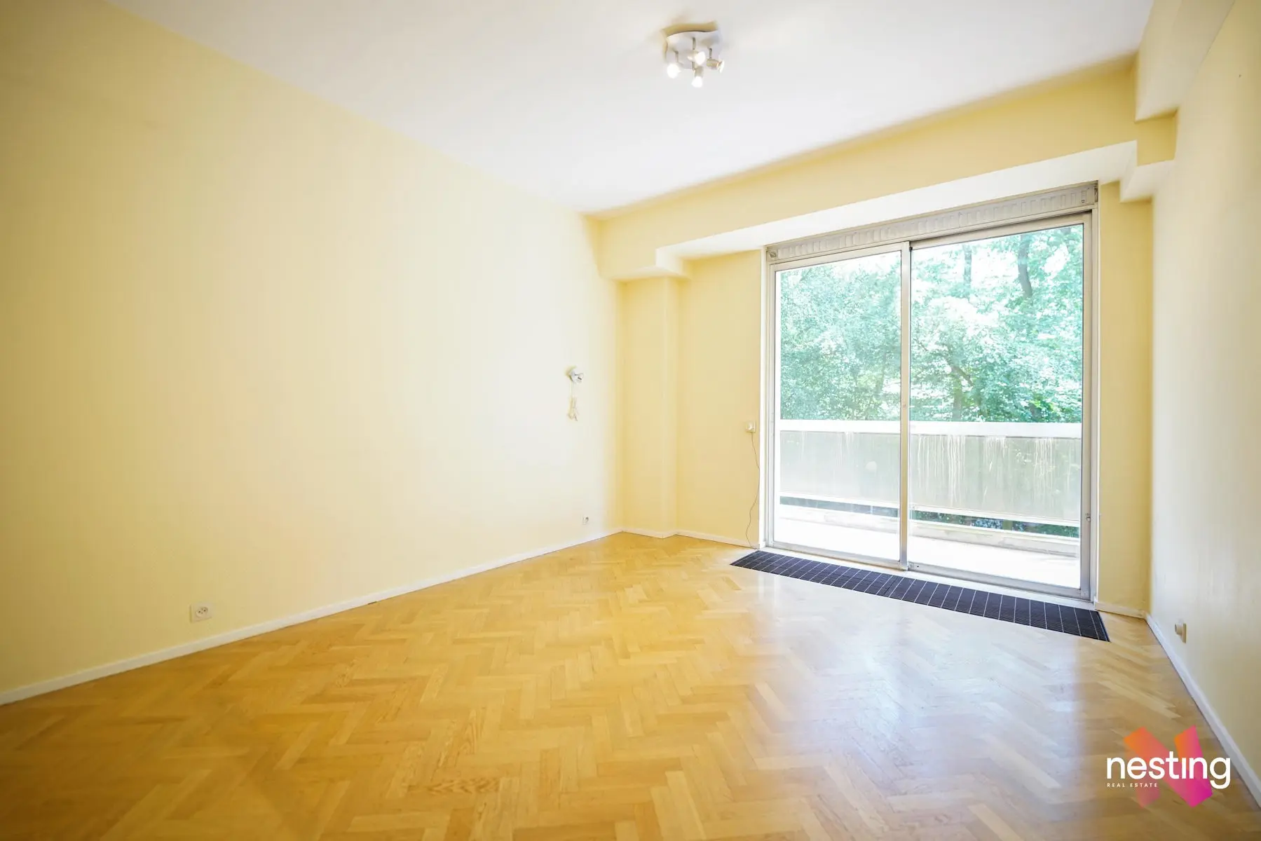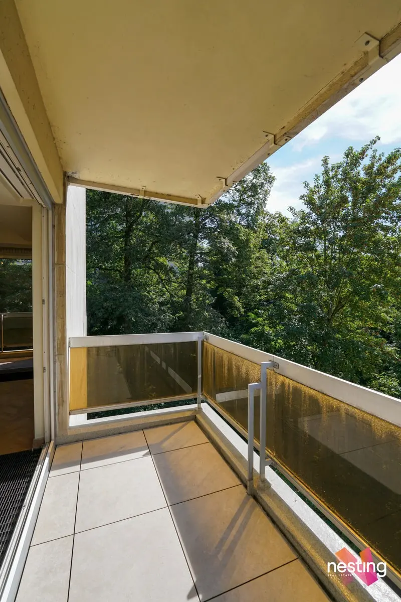 Uccle, sis Avenue de la Ferme Rose 9B, idéalement situé à proximité du Parc Brugmann de Vanderkindere, du square des Héros, de Winston Churchill, des transports et commerces, au 1er étage d'un immeuble calme, superbe appartement de +-75m2, en bon état, très lumineux et offrant :
