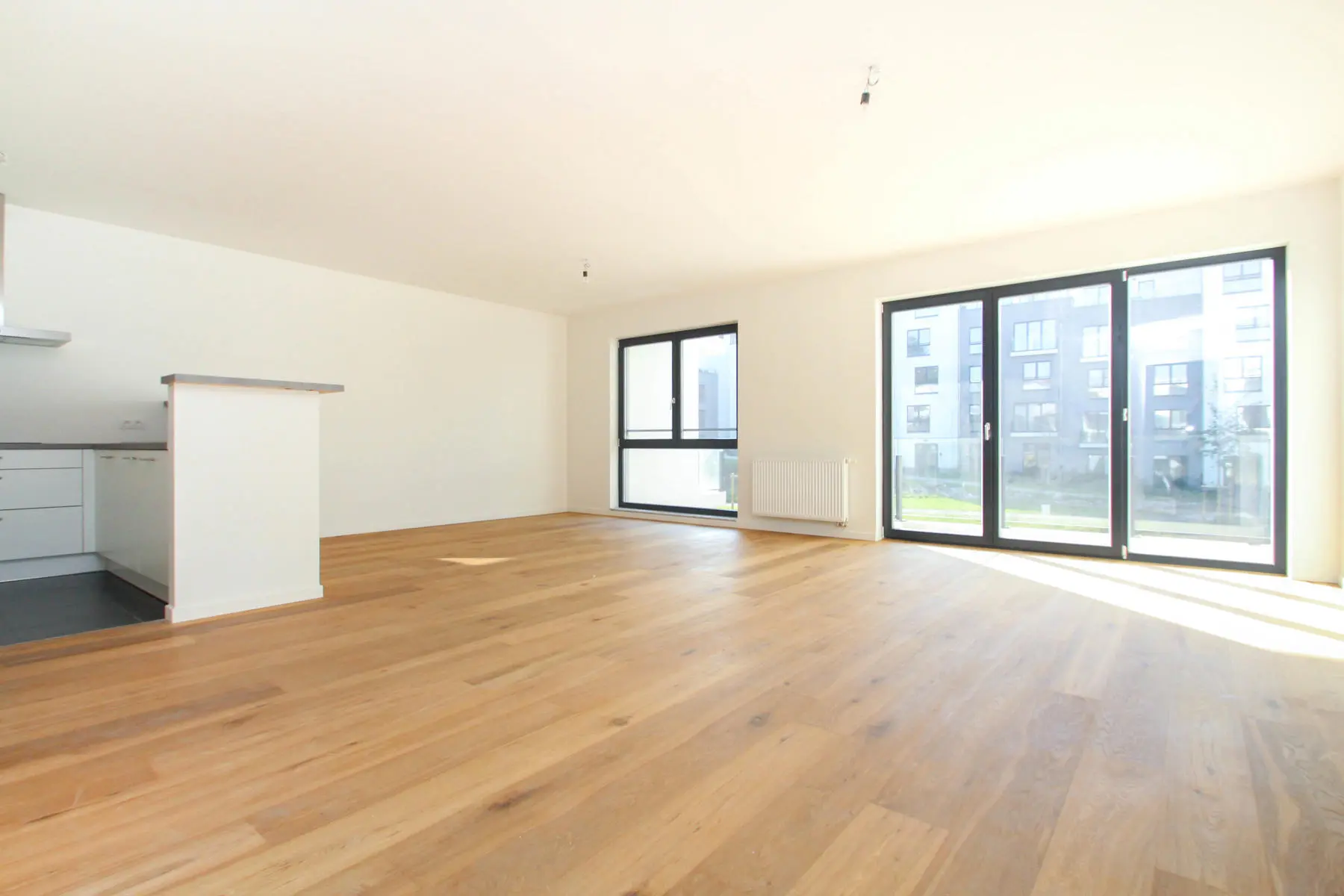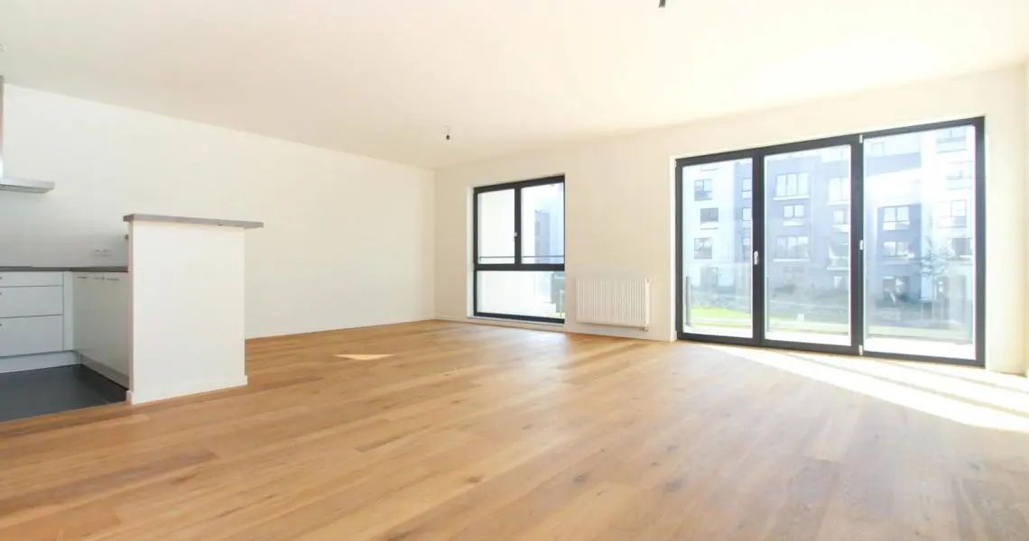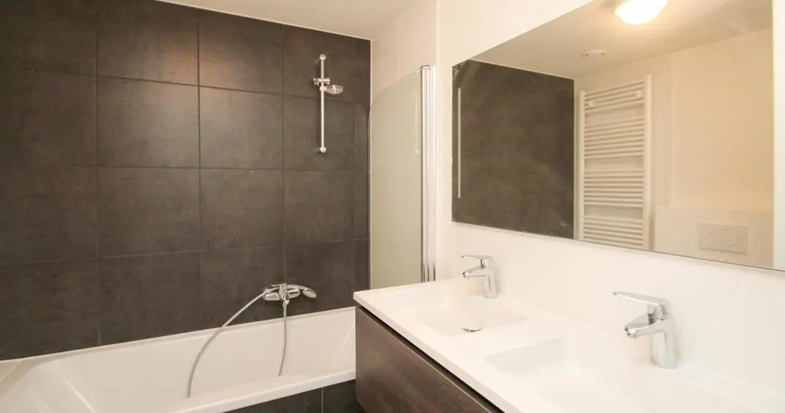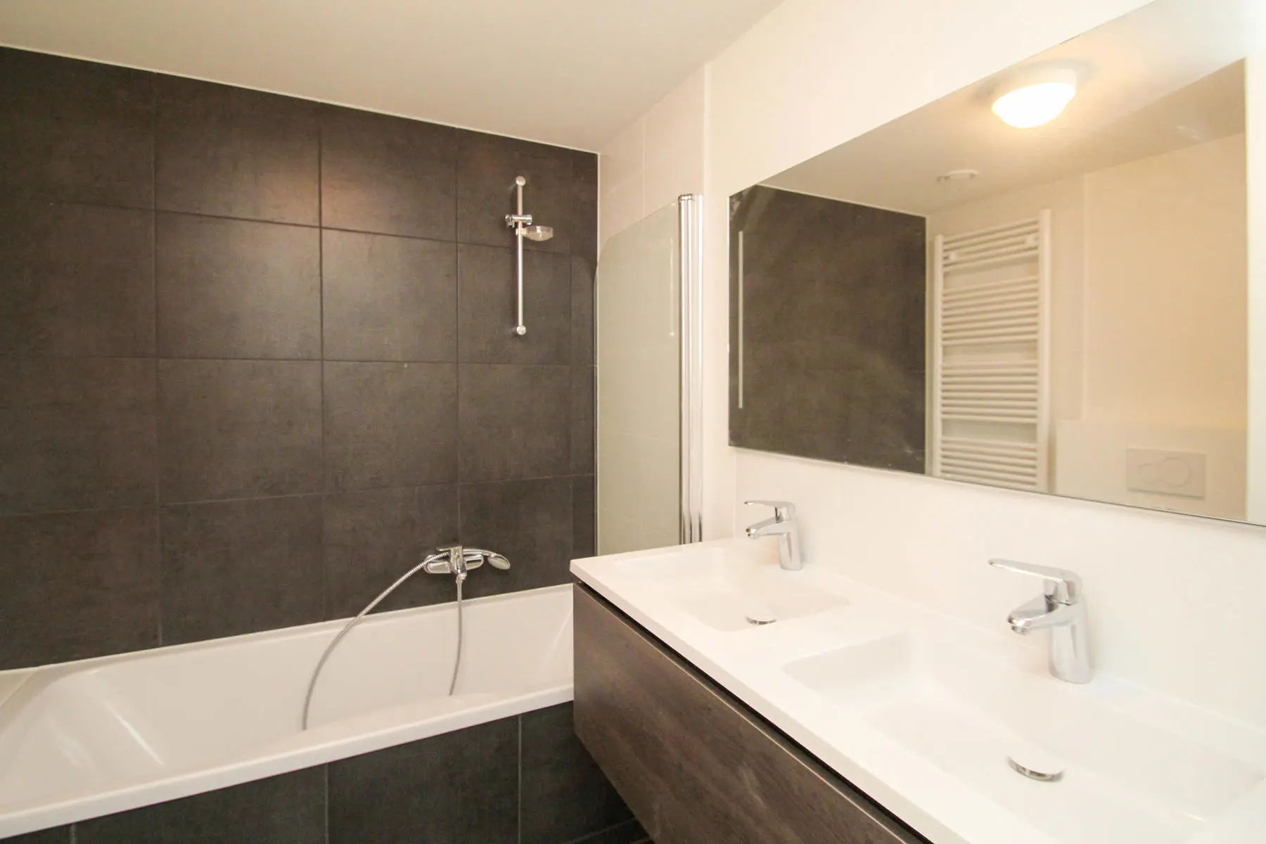 Uccle, Rue du Wagon 16, à proximité de Stalle, de Calevoet, du Dieweg, des transports en communs et commerces, au premier étage d'un immeuble récent, superbe appartement 3 chambres avec terrasses composé comme suit : Hall d'entrée avec wc séparé, vaste séjour de +- 45m2 avec une cuisine US entièrement équipée, le tout donnant sur une superbe terrasse orientée plein sud, hall de nuit, placards, masterbedroom possédant sa propre salle de bain avec wc, 2 chambres qui partagent une salle de douche, buanderie.