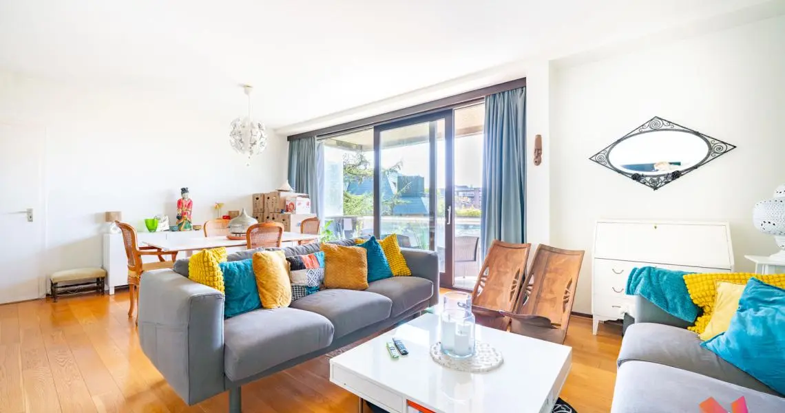 Fort-Jaco, chaussée de Waterloo, à deux pas de la Grande Epicerie et du bois de la Cambre, venez découvrir ce bel appartement de +- 90m2 offrant :