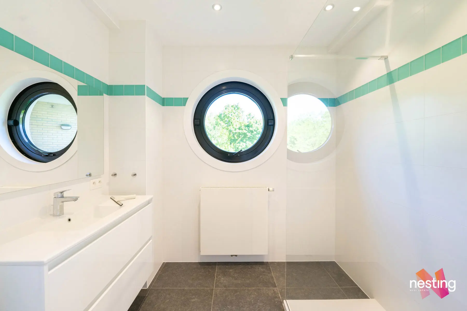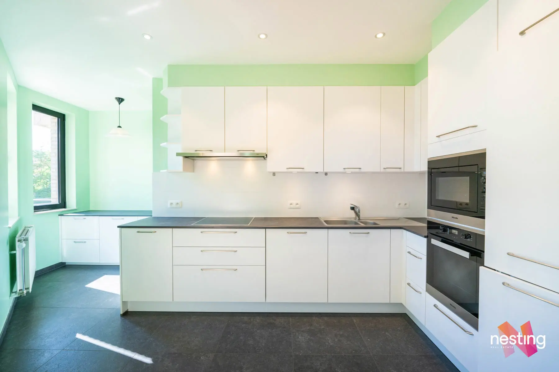 L'appartement se compose comme suit : un grand hall d'entrée avec vestiaire et wc séparé, un magnifique séjour de +- 48m2 donnant sur deux terrasses (+-10m2 et +- 8m2), une cuisine spacieuse (électroménagers de qualités : Miele, Novy, Liebherr), Masterbedroom avec placards, salle de douche, wc séparé, hall de nuit donnant sur 2 chambres (+-13m2 et +-13m2), salle de bains.