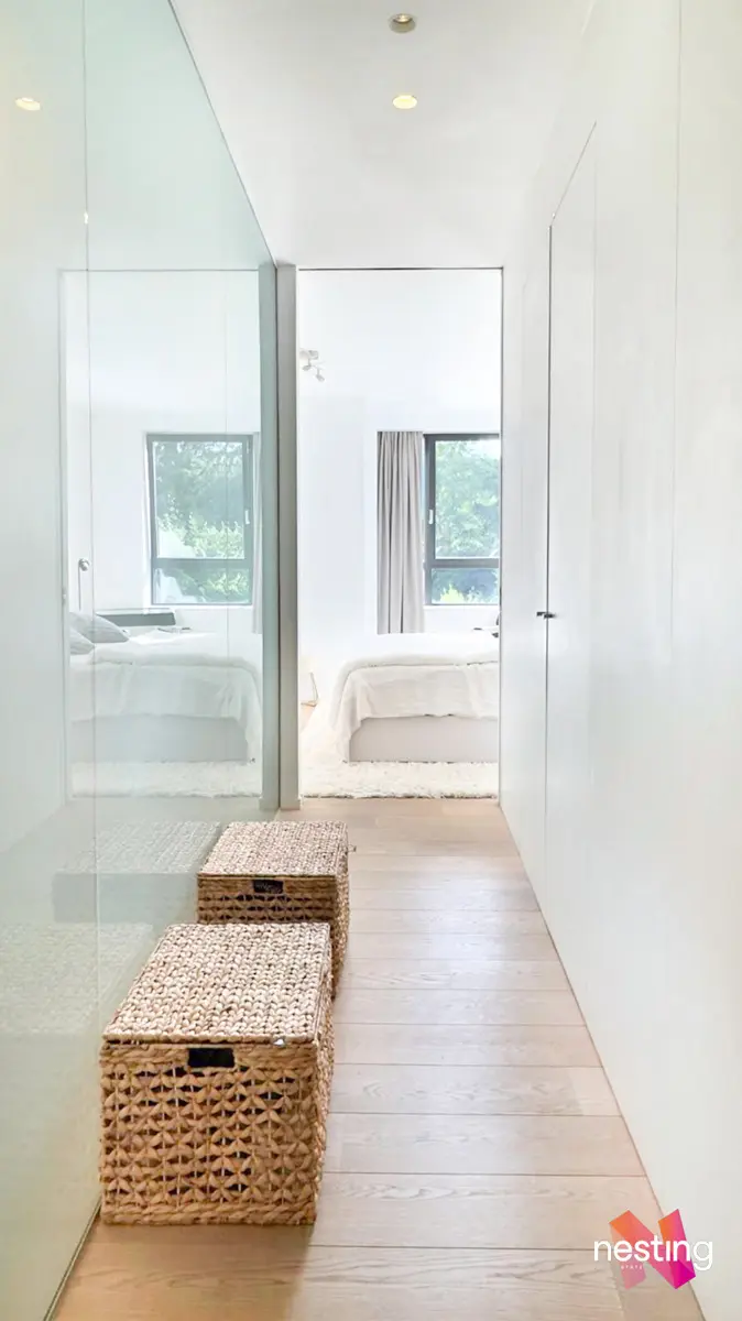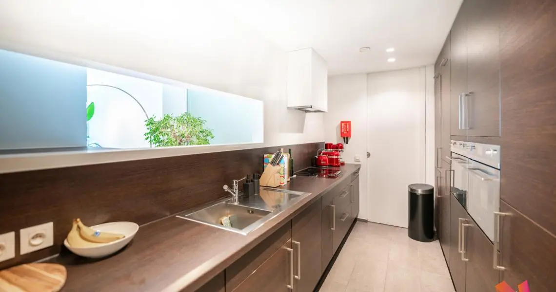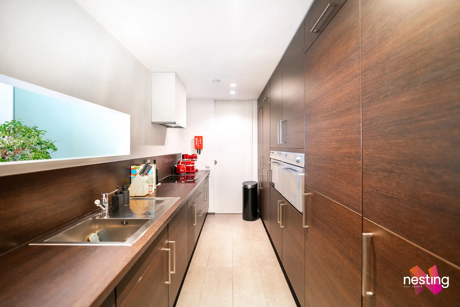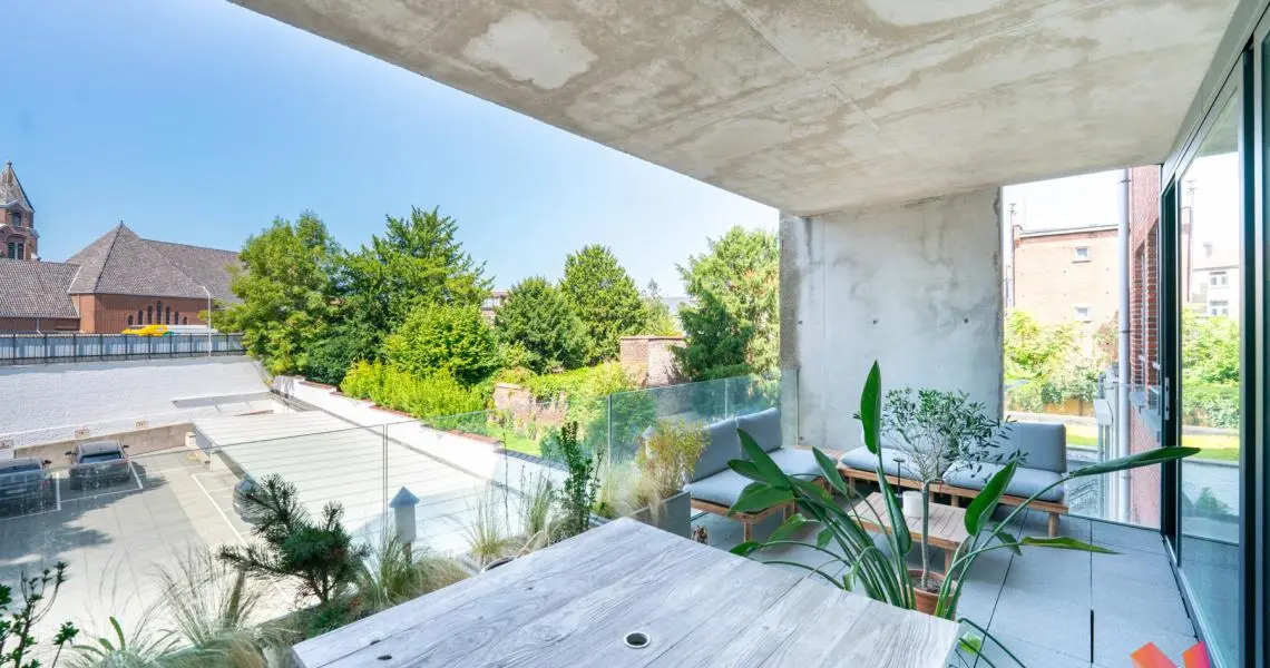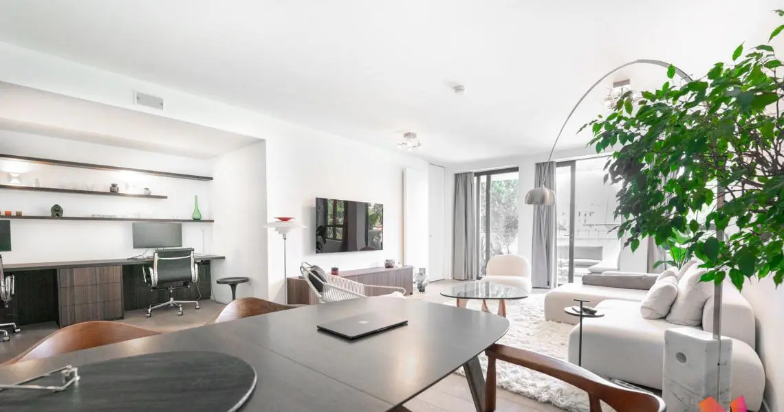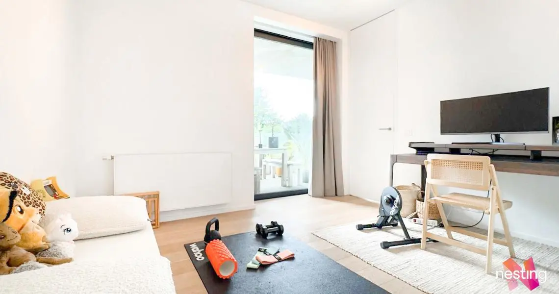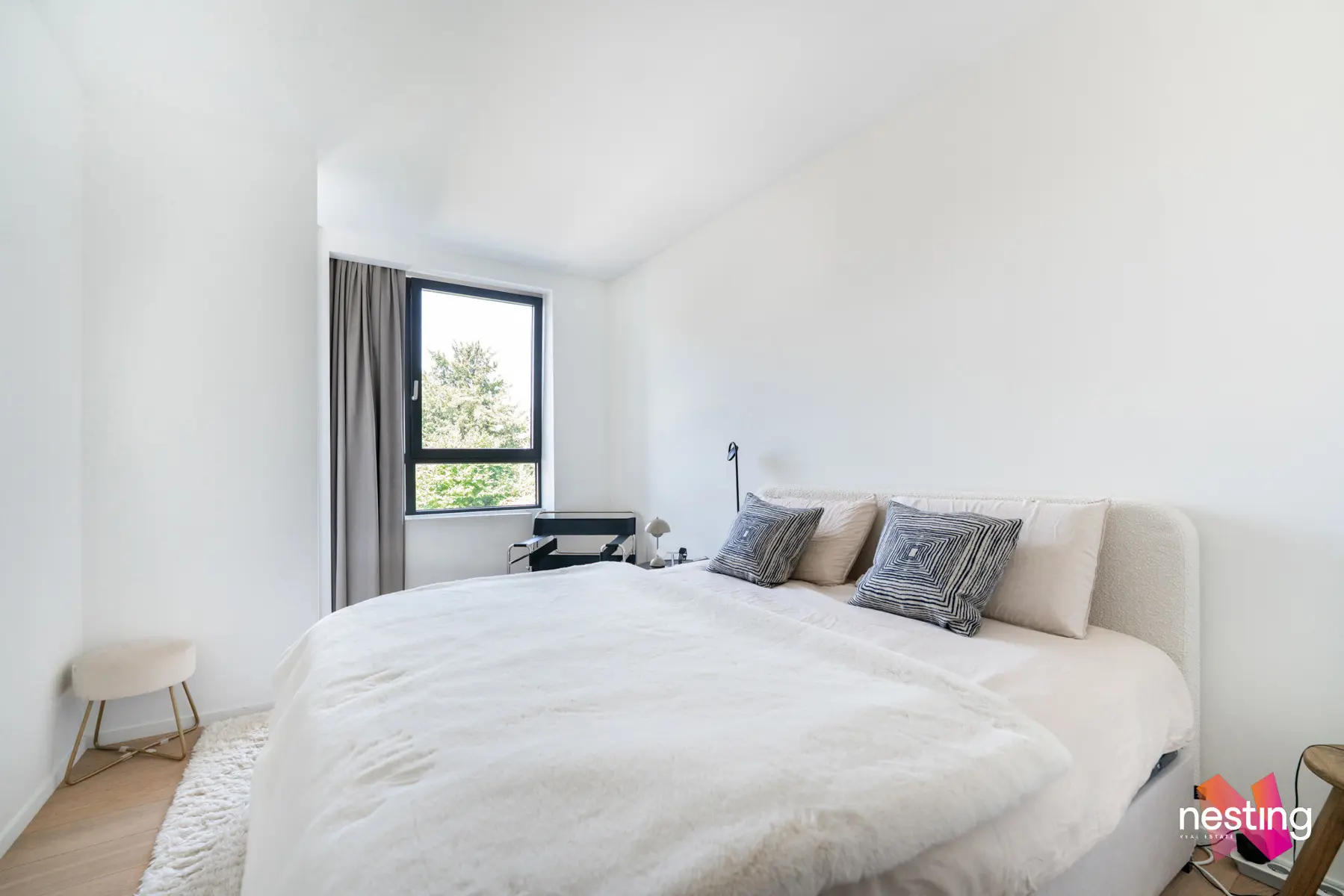 Il comprend : Un hall d'entrée, un espace buanderie, une cuisine super-équipée, un grand séjour de +- 45m2 donnant sur une terrasse de +- 20m2 exposée ouest, 2 chambres dont l'une avec une salle de douche et un espace dressing et l'autre avec une salle de bains et 2 WC séparés.