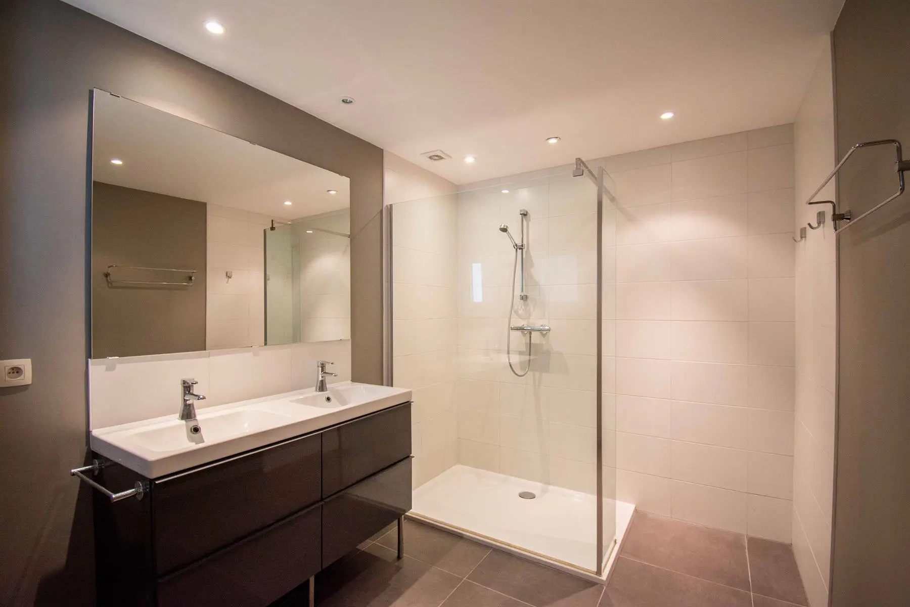 Vaste hall d'entrée avec vestiaire, wc séparé et buanderie, grand séjour de +/- 40m², grande cuisine US donnant accès à la terrasse de +/- 3m² exposée sud, hall de nuit avec placards, 3 chambres (24m2, 14m2 et 11m2) dont une masterbedroom avec salle de douche, salle de bains.