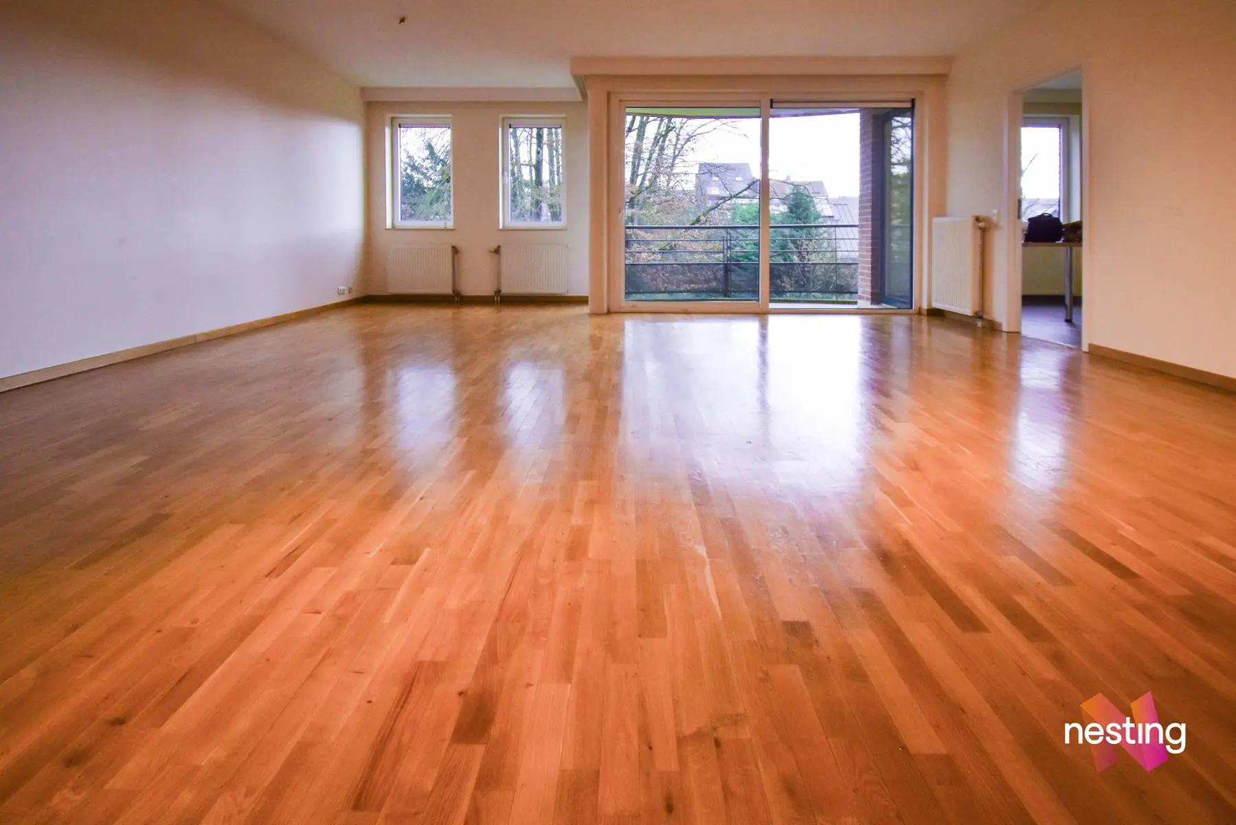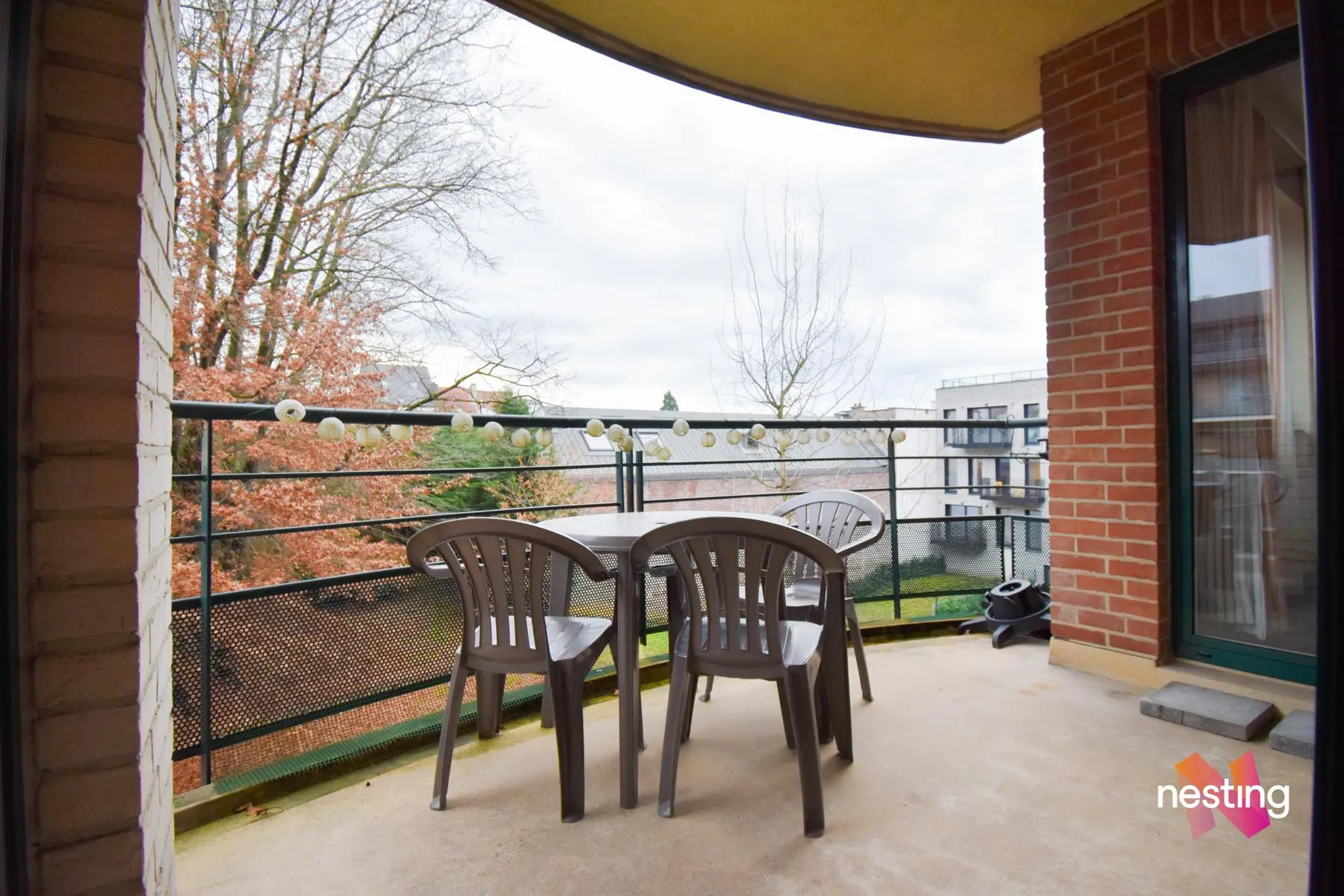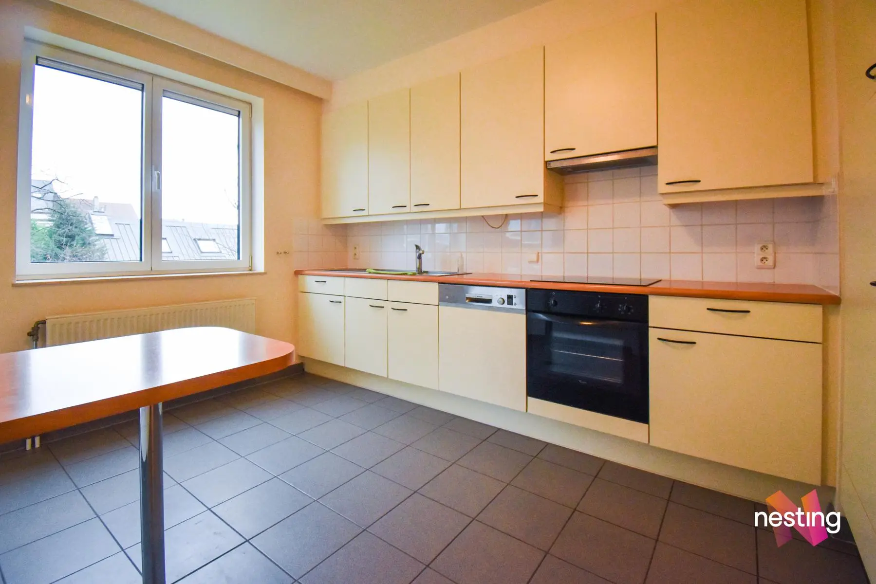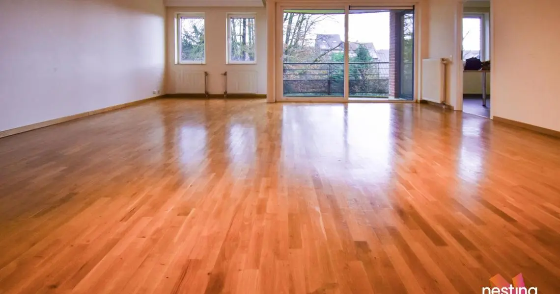 Hall d'entrée avec toilette, vaste séjour de +-50m² avec accès à une terrasse offrant une vue dégagée sur un jardin, cuisine super équipée avec coin déjeuner, buanderie avec sèche linge, hall de nuit, 1 salle de douche, 2 grandes chambres (+/-17 et +/-20m²) dont 1 avec sa salle de bains et toilette.