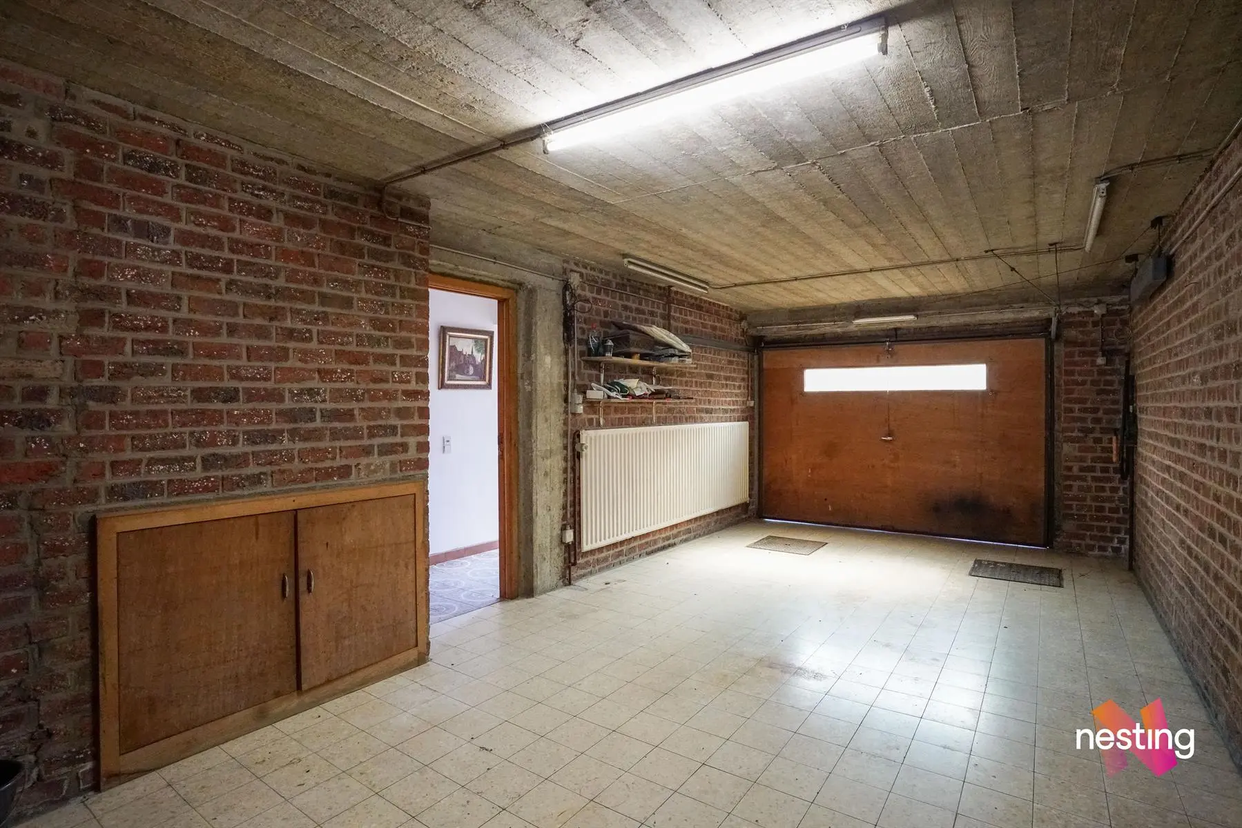 au Rez : hall d'entrée avec vestiaire et wc séparé, espace pour profession libérale/bureau, vaste garage intérieur ainsi qu'un emplacement extérieur, terrasse et jardin de +/-190m2 orienté sud-ouest.