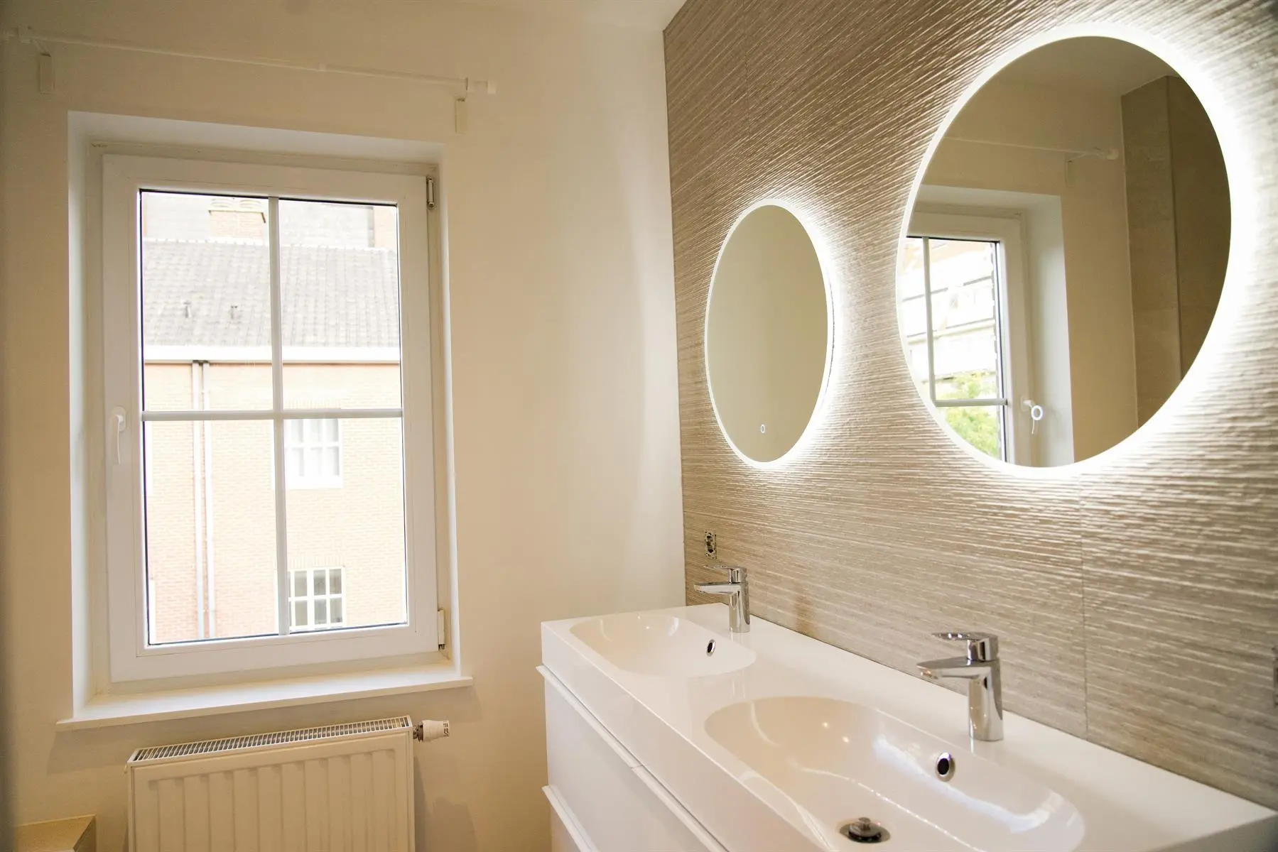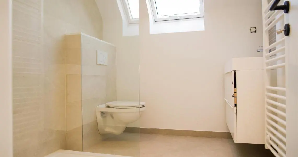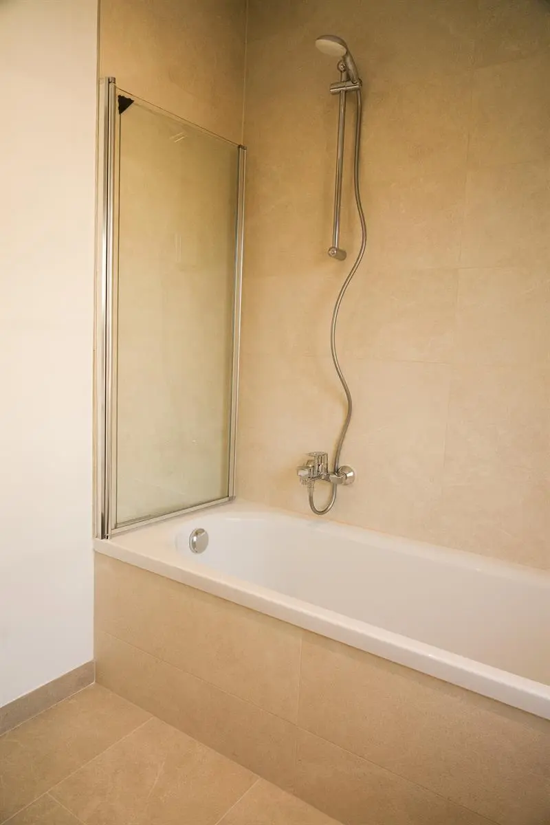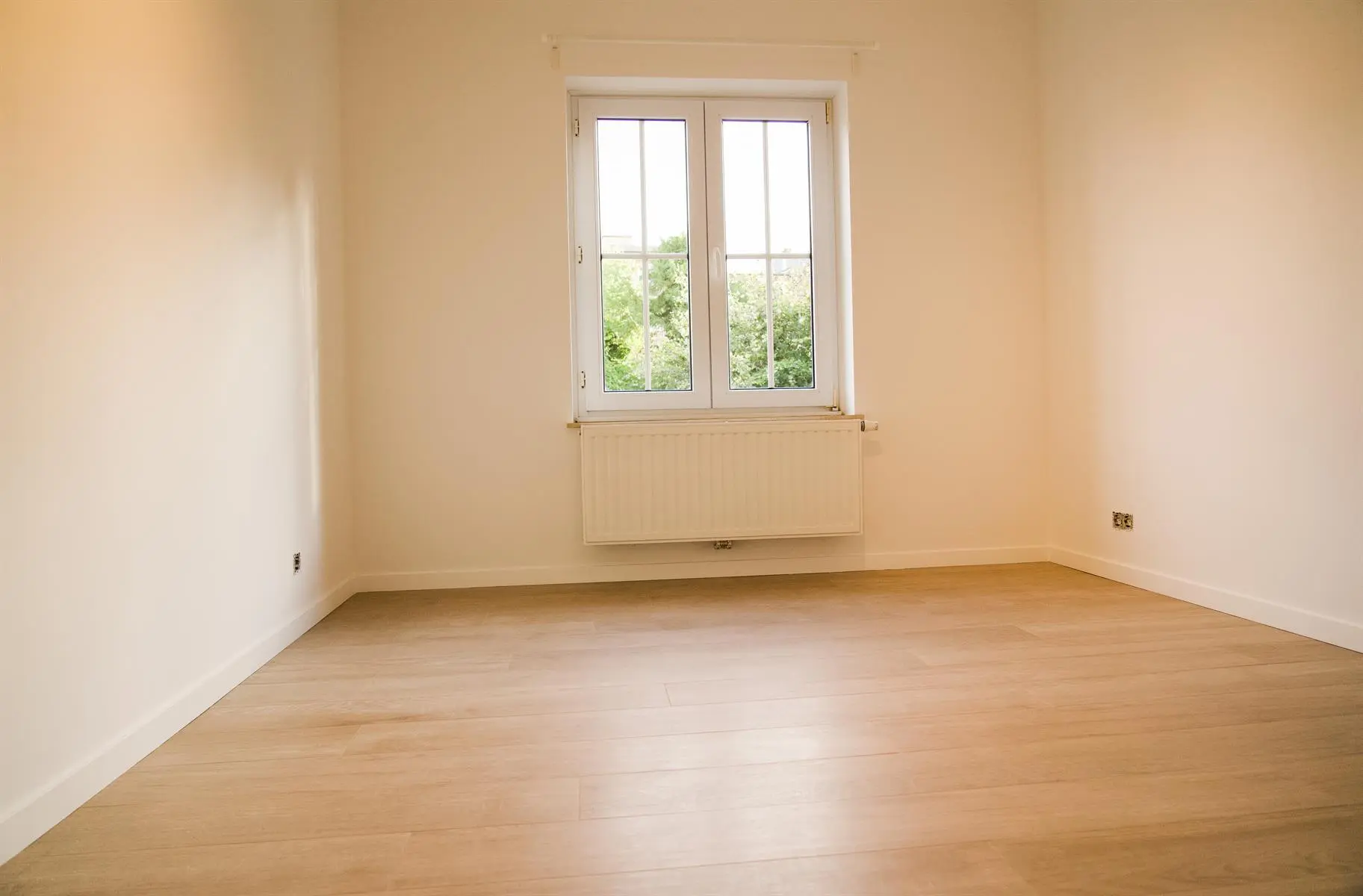 Au rez-de-chaussée : hall d'entrée avec vestiaire et WC séparé, bureau/petite chambre de +/-7m2, garage pour une voiture, buanderie. Jardin de +/-50m2 orienté au sud.