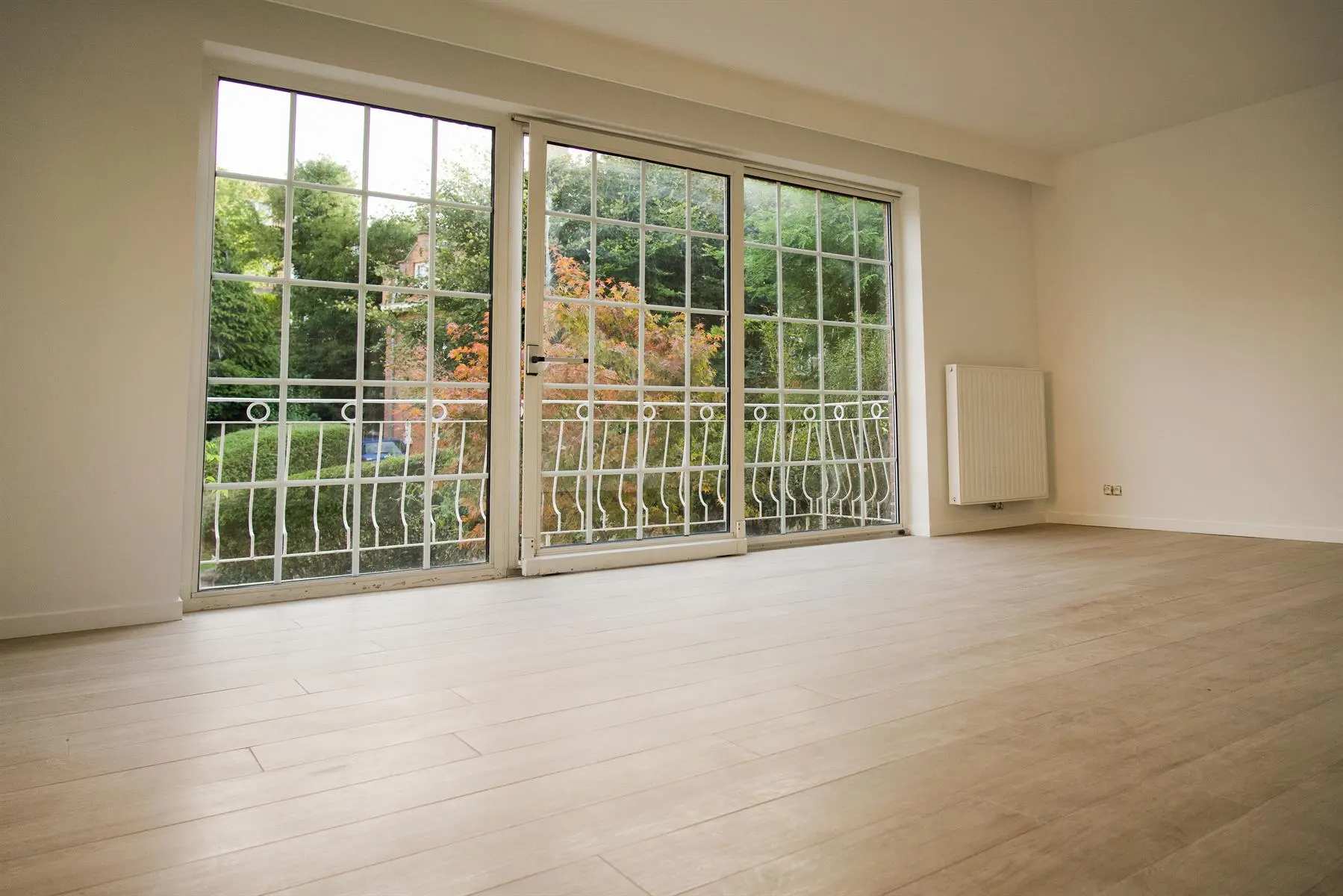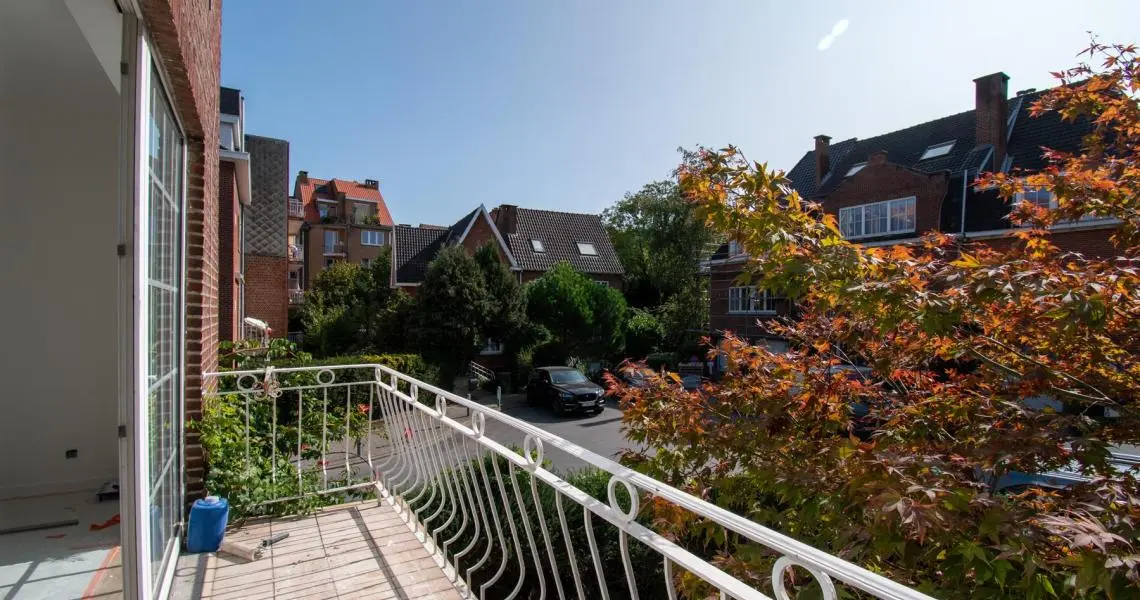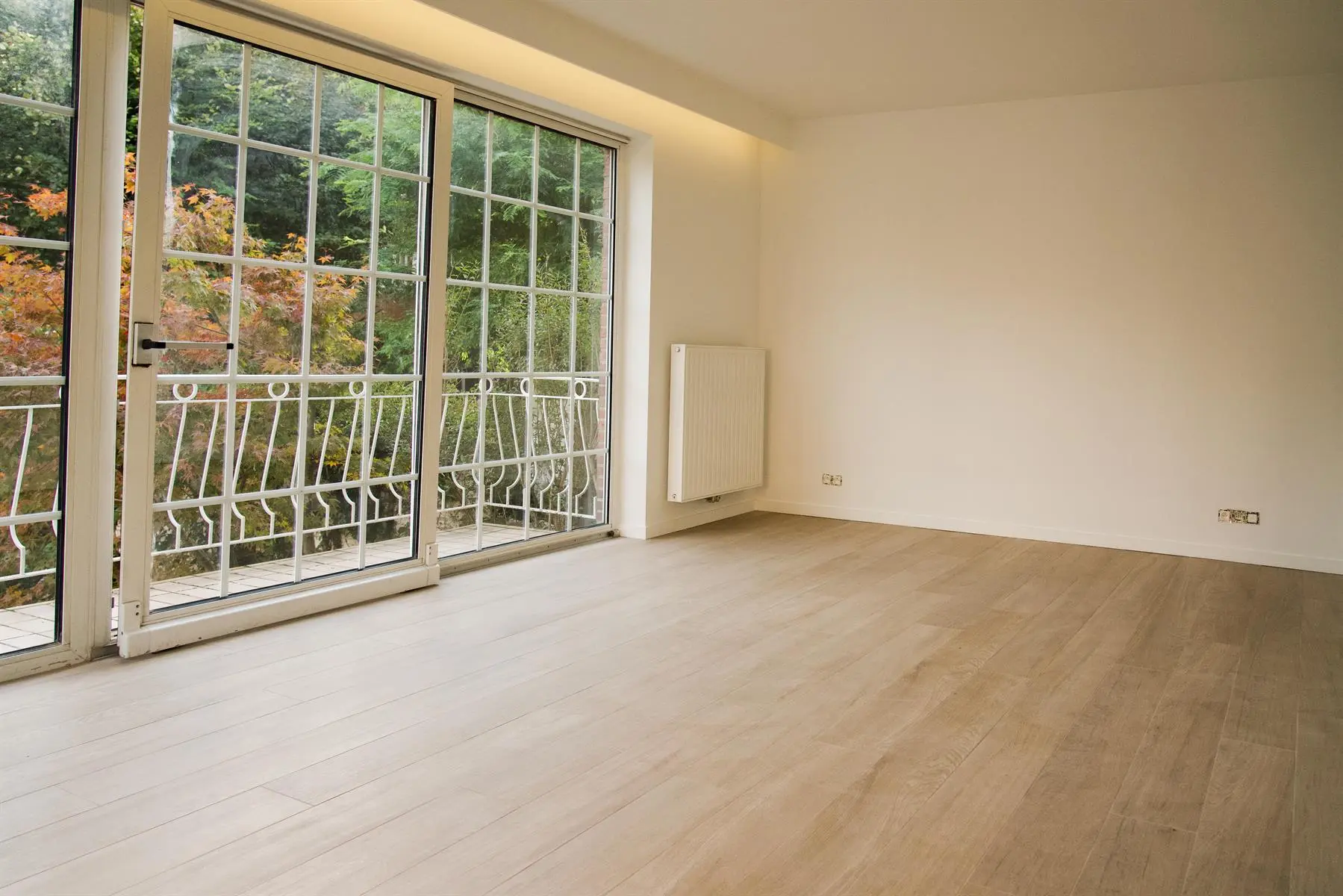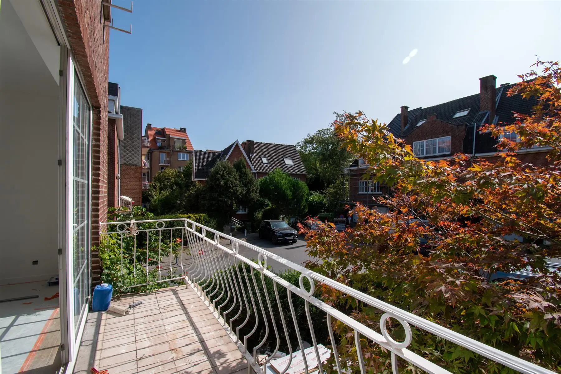 Au 1er étage : hall, séjour de +/-25m2 donnant sur une terrasse plein sud de +/-5m2, cuisine US super-équipée.