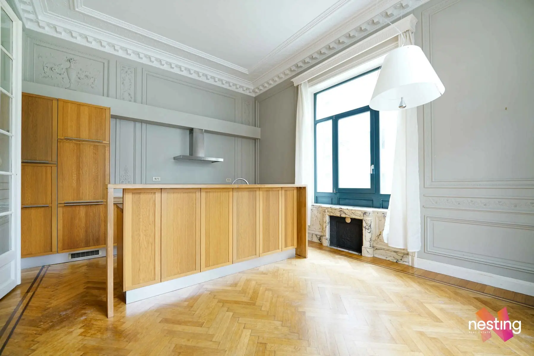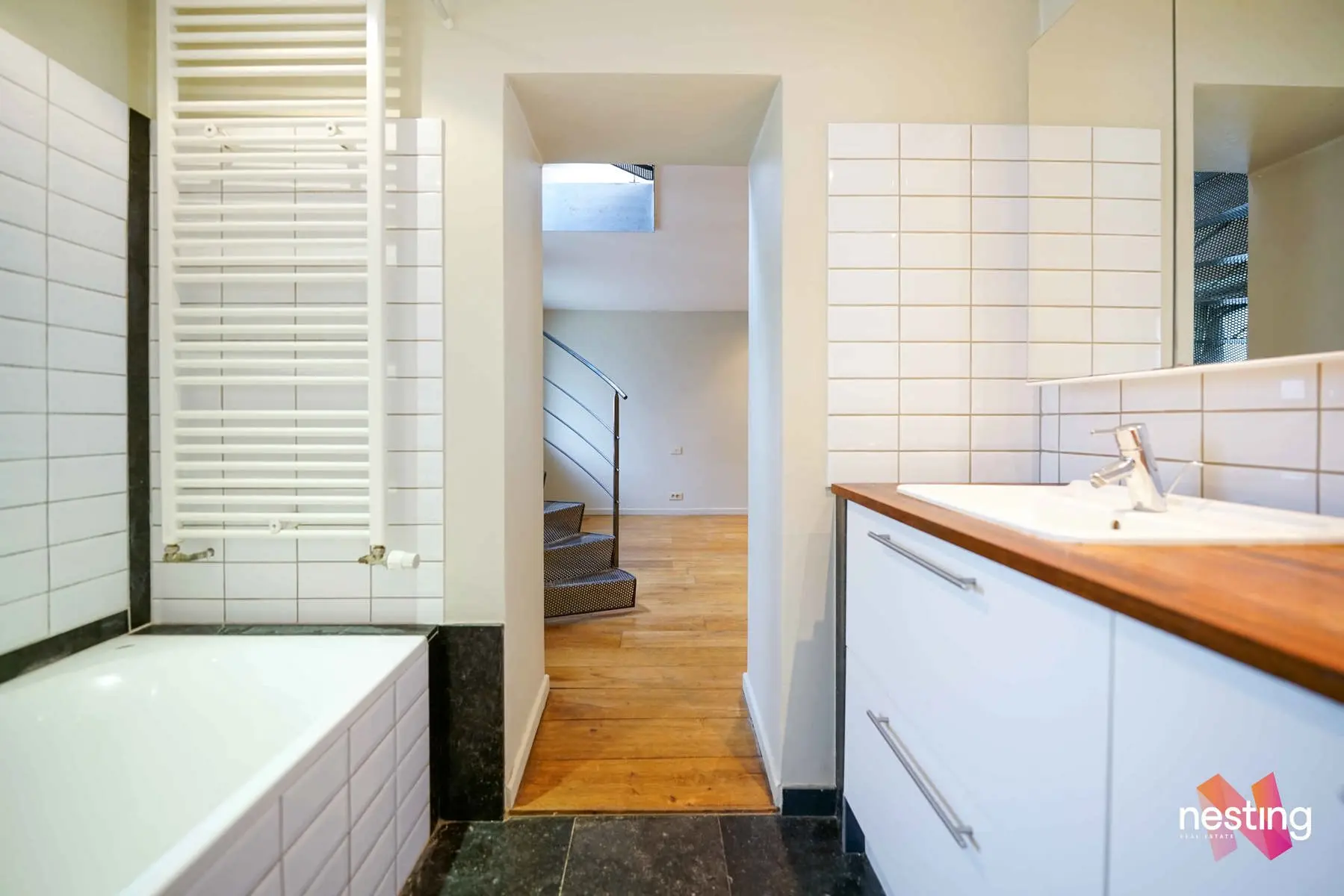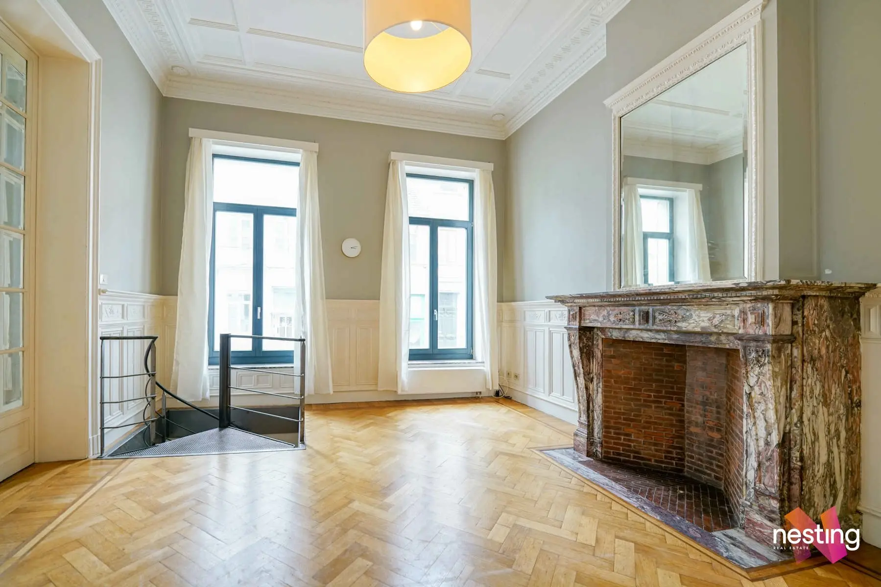 Bruxelles, à proximité des Institutions Européennes et du Square Marie Louise, dans une petite copropriété de 3 appartements, venez découvrir ce beau souplex de +- 100m2 (bruts) et se composant comme suit : Au rez-de-chaussée surélevé : un grand séjour lumineux de +- 25 m2 et une salle à manger/cuisine ouverte super équipée de +- 25m2. Au sous sol : un grande chambre avec sa salle de bain attenante et un espace buanderie/wc séparé. L'appartement dispose également d'une petite cave et il est possible d'y mettre un vélo.