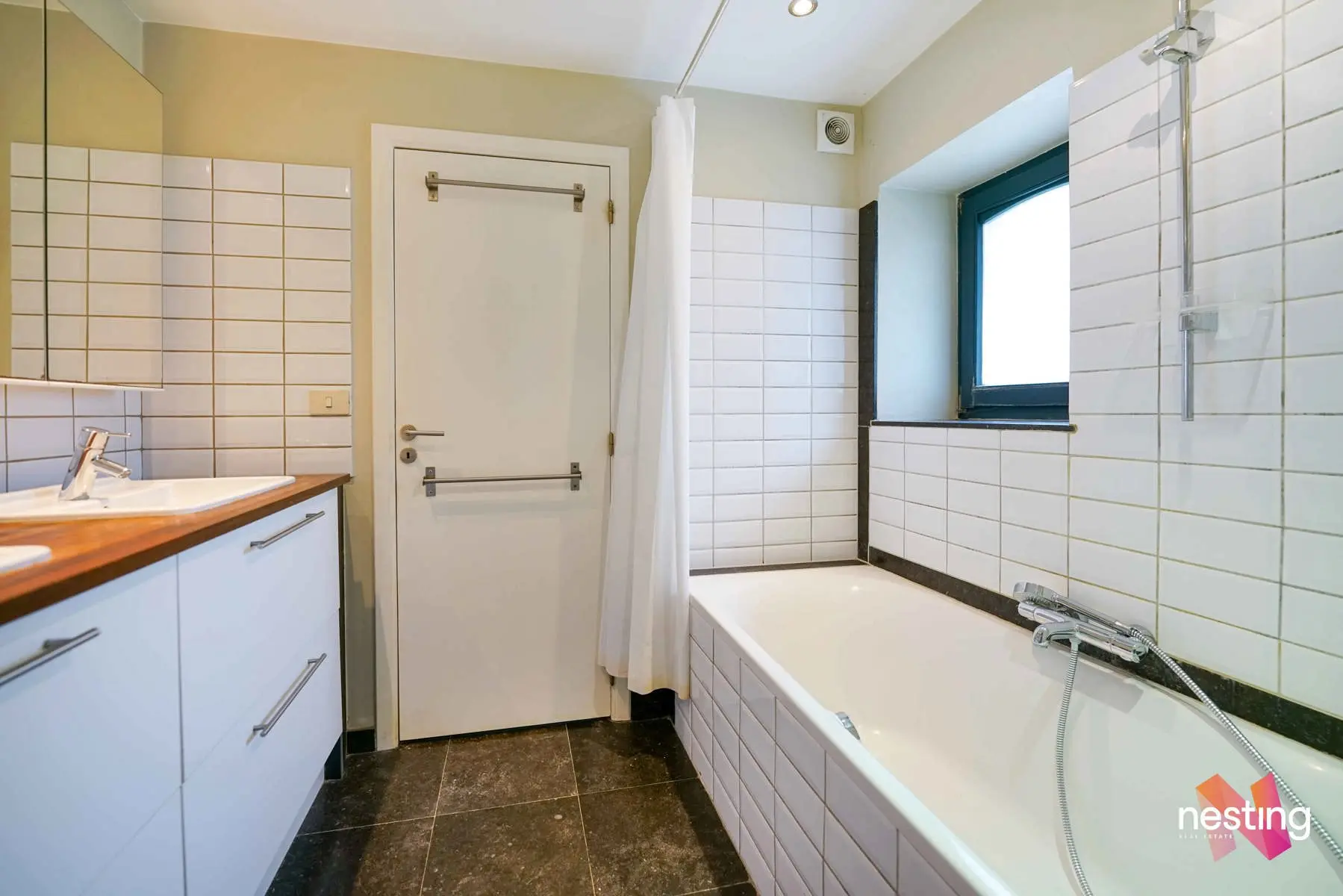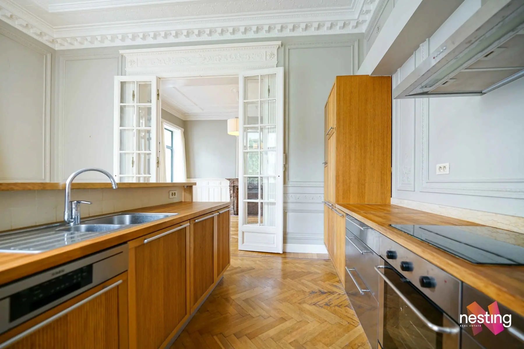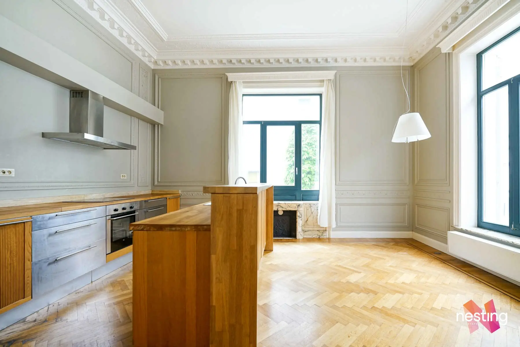 Bruxelles, à proximité des Institutions Européennes et du Square Marie Louise, dans une petite copropriété de 3 appartements, venez découvrir ce beau souplex de +- 100m2 (bruts) et se composant comme suit : Au rez-de-chaussée surélevé : un grand séjour lumineux de +- 25 m2 et une salle à manger/cuisine ouverte super équipée de +- 25m2. Au sous sol : un grande chambre avec sa salle de bain attenante et un espace buanderie/wc séparé. L'appartement dispose également d'une petite cave et il est possible d'y mettre un vélo.