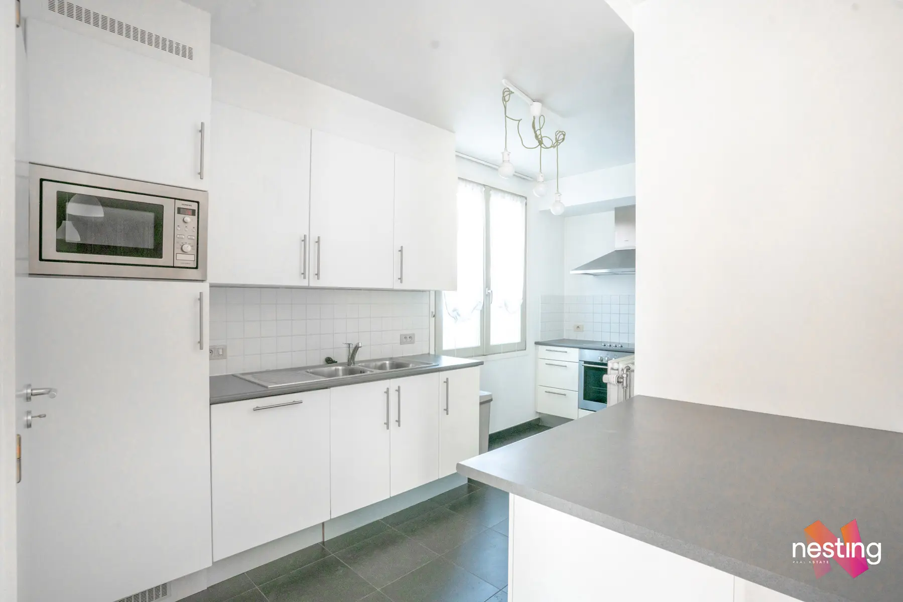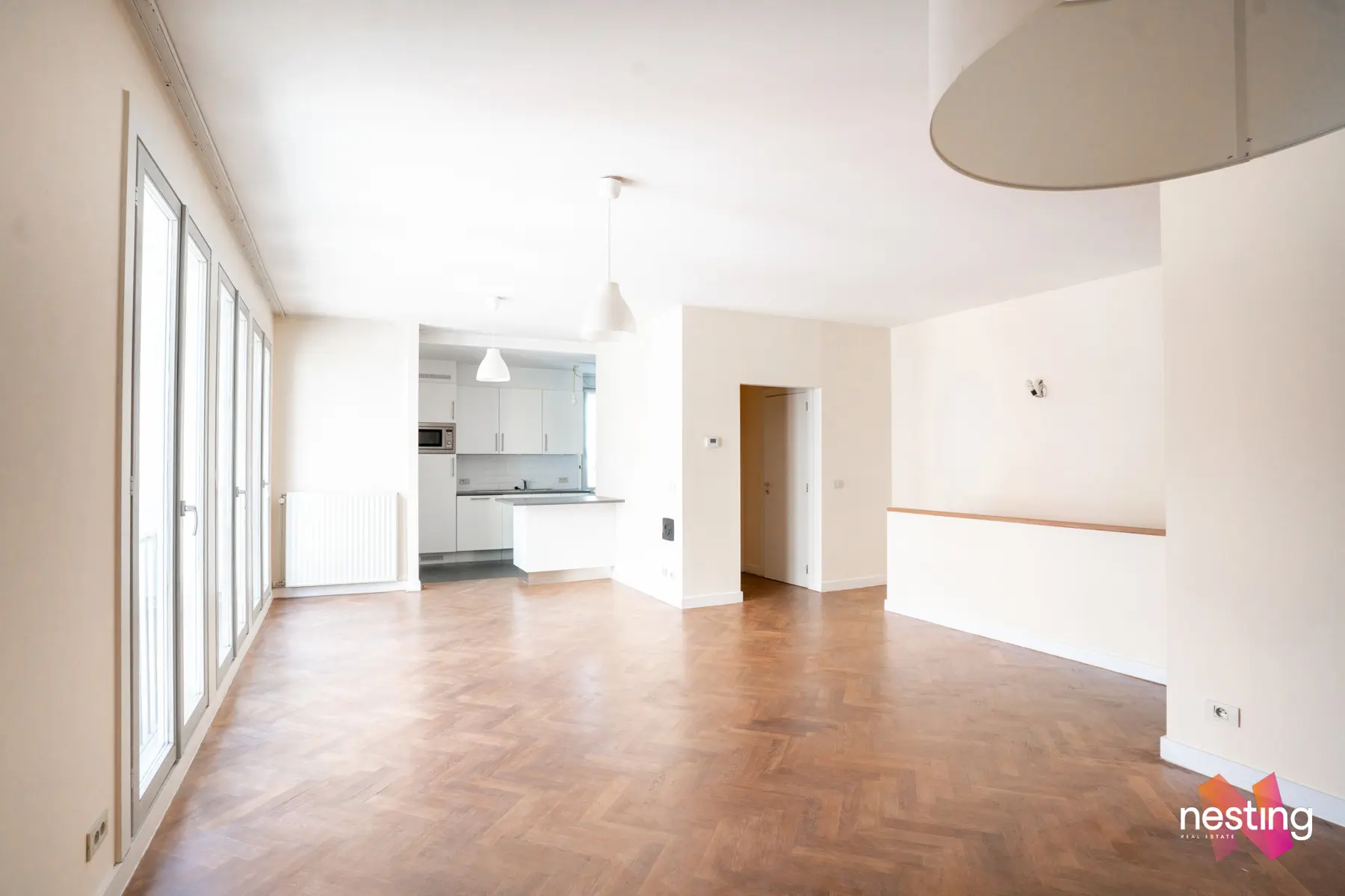 Cet appartement lumineux de ±115 m², situé au 3ᵉ étage (avec ascenseur), vous offre un séjour spacieux de 30 m², cuisine US super équipée avec un coin buanderie.