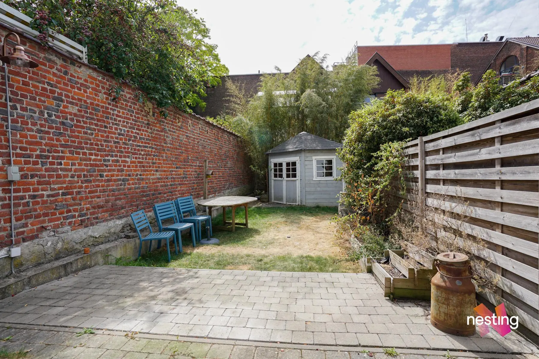 Au bel étage : salon, pièce centrale, salle à manger, cuisine équipée avec un coin à déjeuner s’ouvrant sur une terrasse et un beau jardinet exposé sud-ouest et équipé d’un abri de jardin.