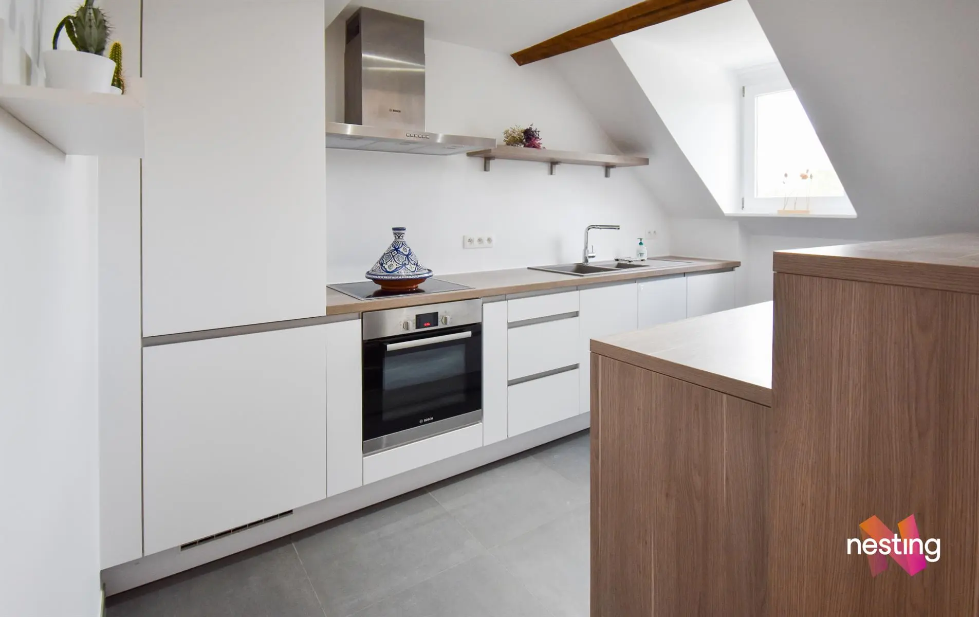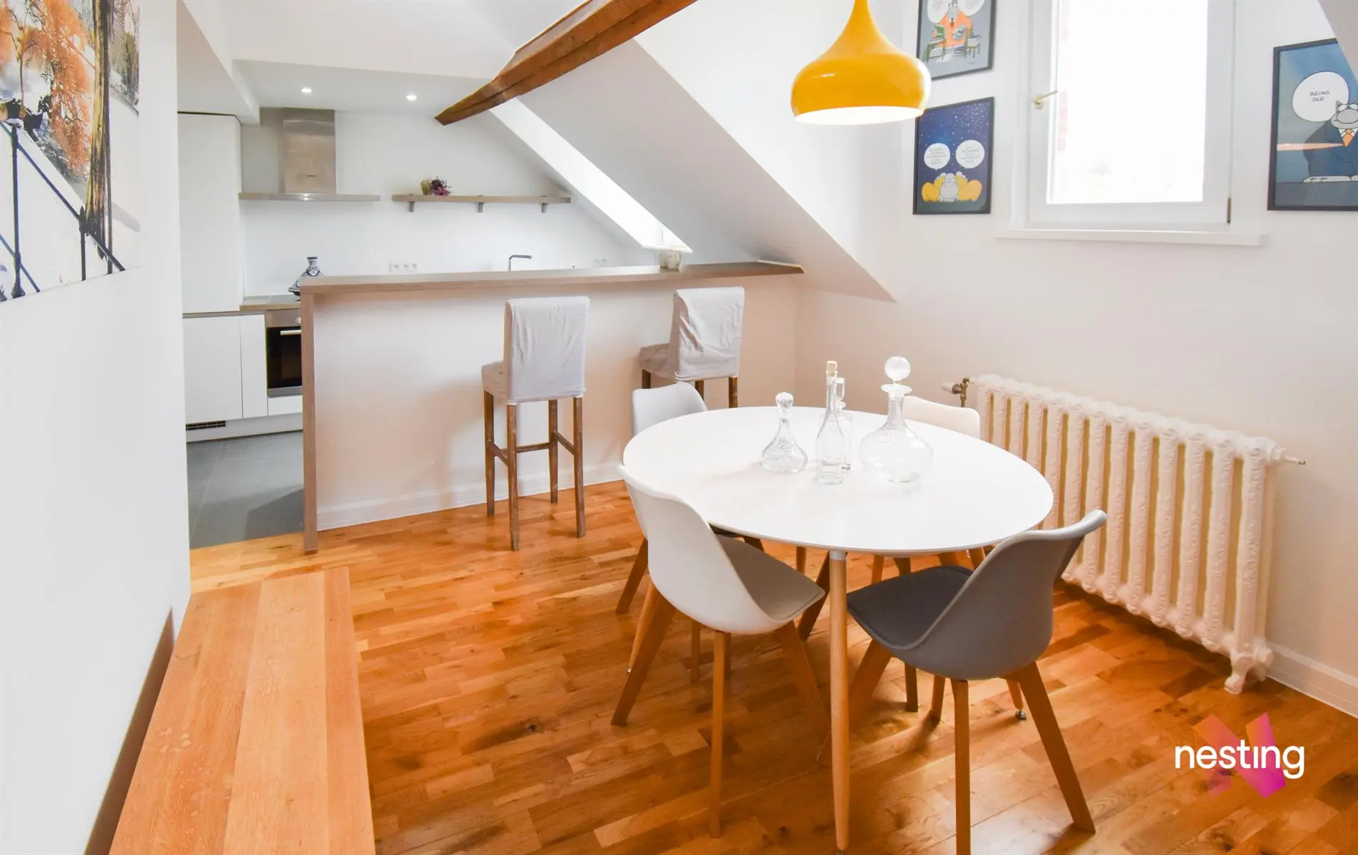 Superbe duplex complètement MEUBLE de +- 90 m² entièrement neuf, 2e occupation après rénovations de haut standing.