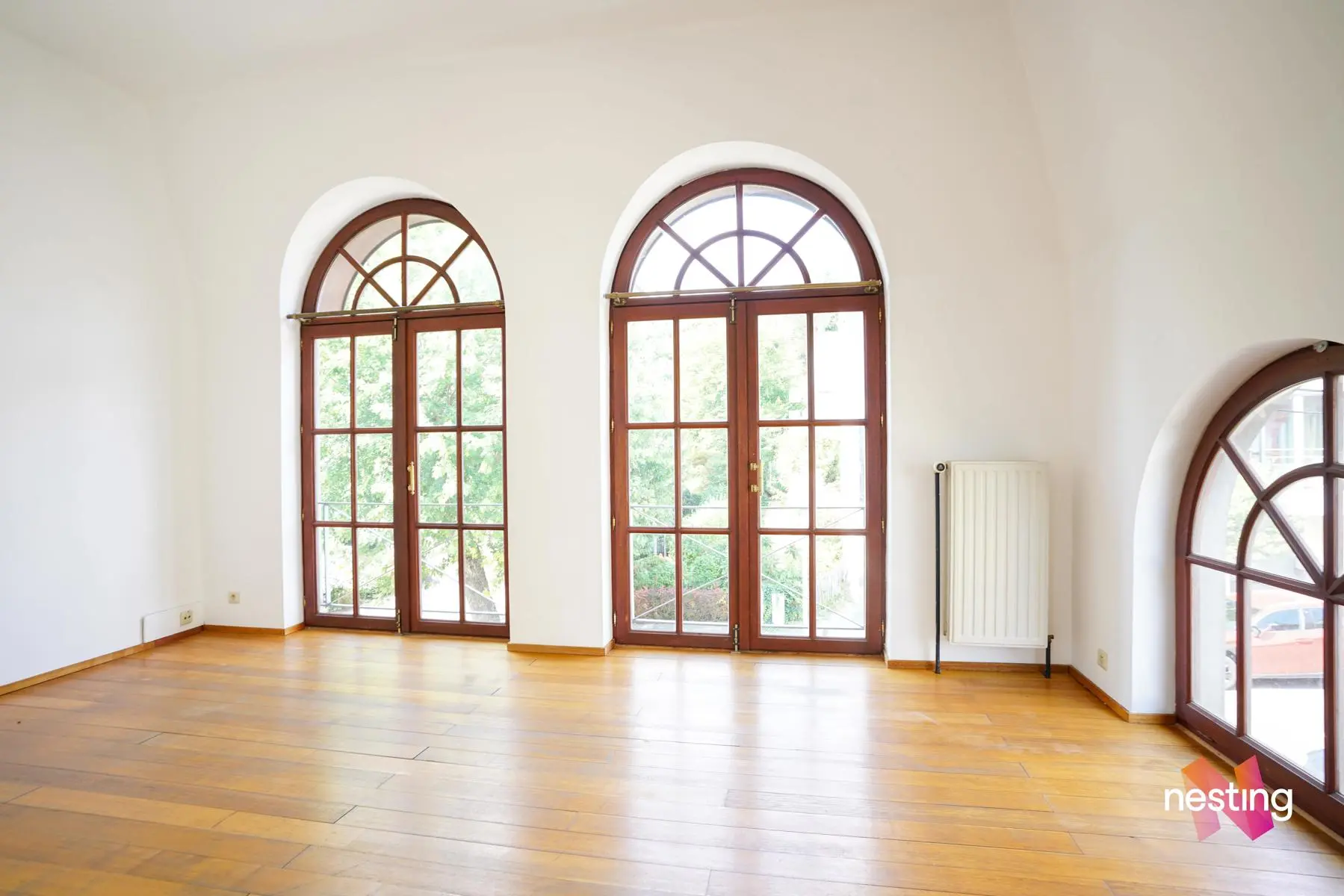 Uccle, à proximité de la place Saint-Job, sis. rue de la pêcherie, dans une petite copropriété calme, superbe rez-de-chaussée de +/- 100m², en bon état, parquet partout, très lumineux et offrant: