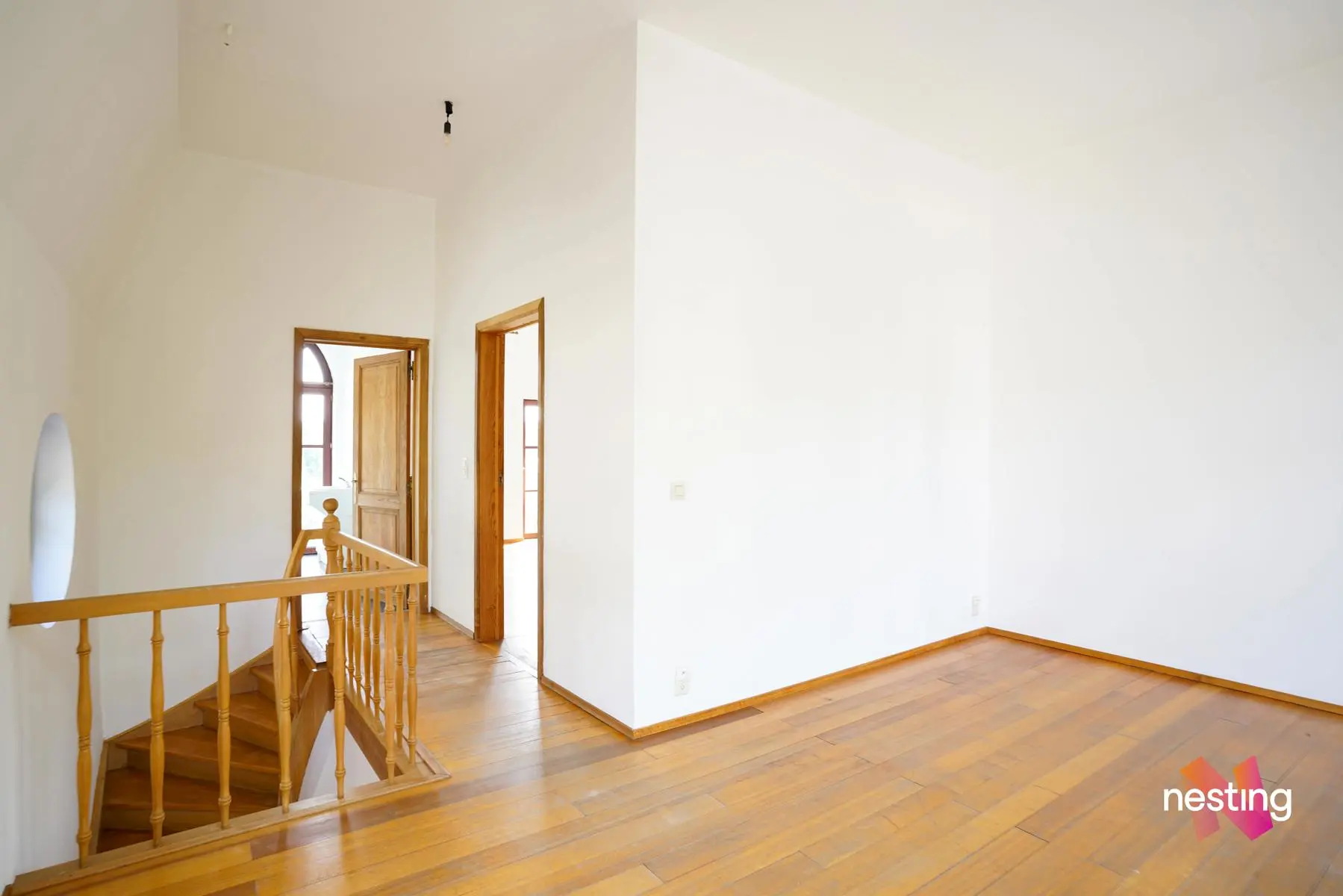 Au 1er étage : Hall de nuit, chambre de +/-20m2, salle de douche avec wc, et espace supplémentaire de +/-16m2 permettant de faire un grand bureau, dressing, ou autre.