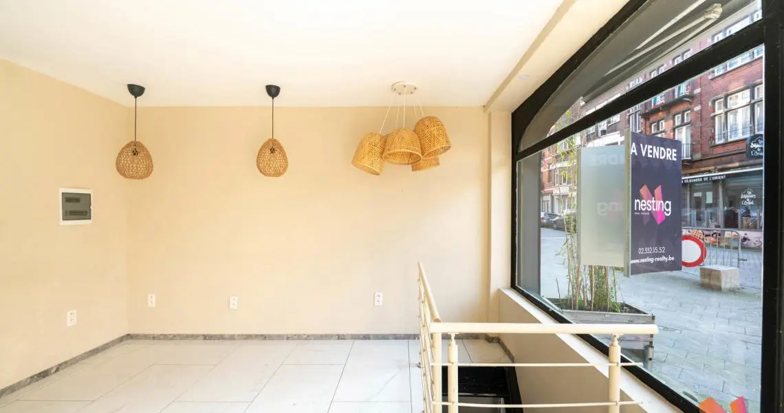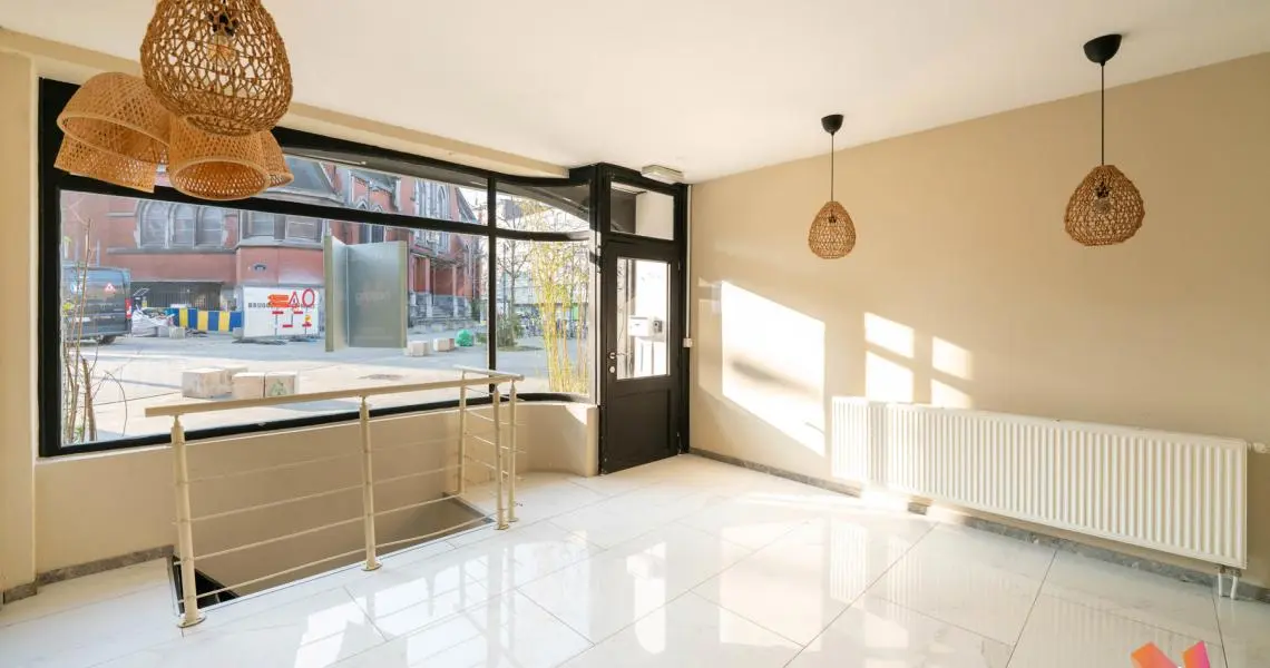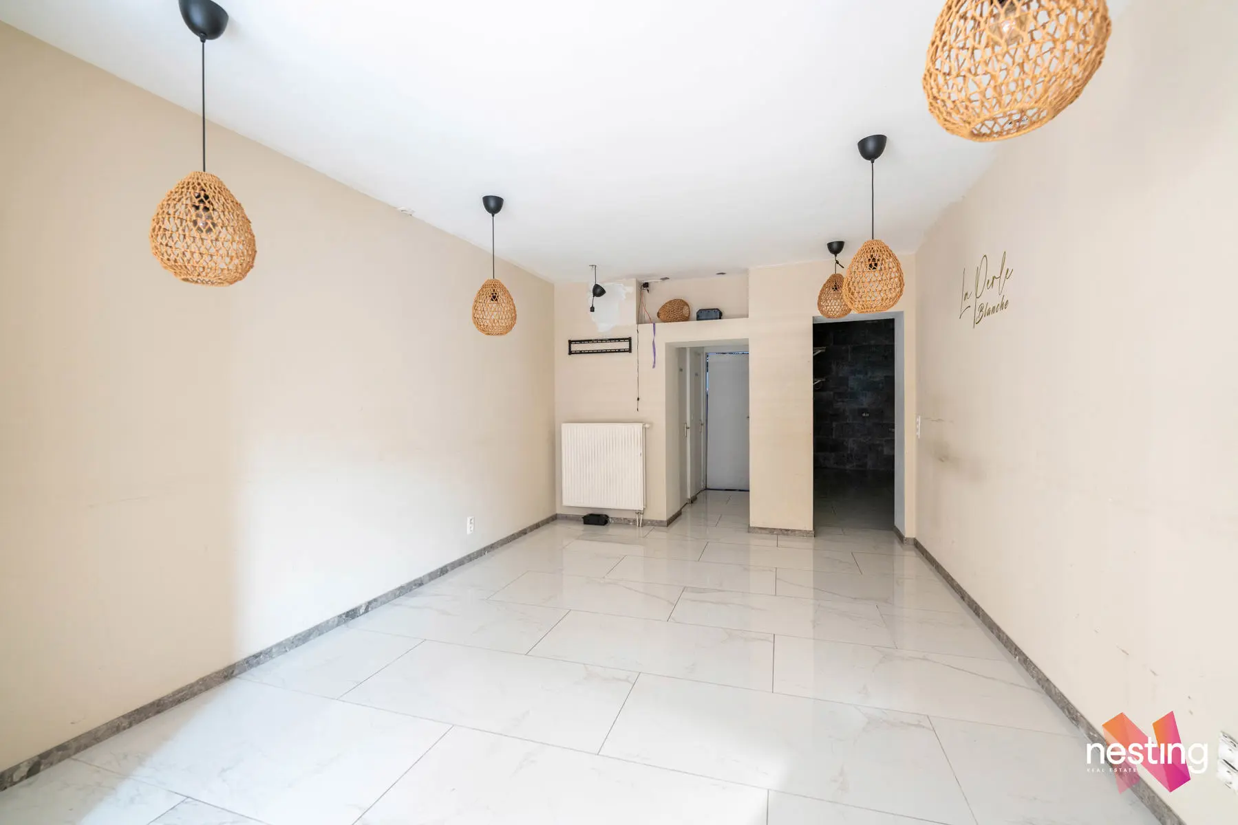 Superbe rez-de-chaussée commercial avec affectation horeca à remettre au gout du jour de +-65m2 réparti sur 3 pièces en enfilades + 55m2 de caves en sous-sol.