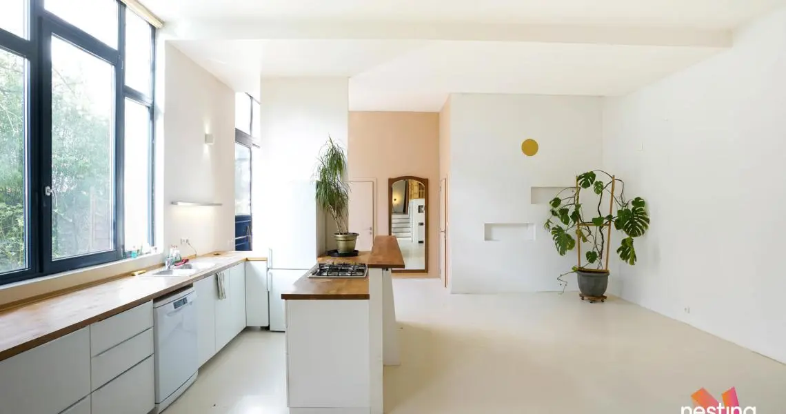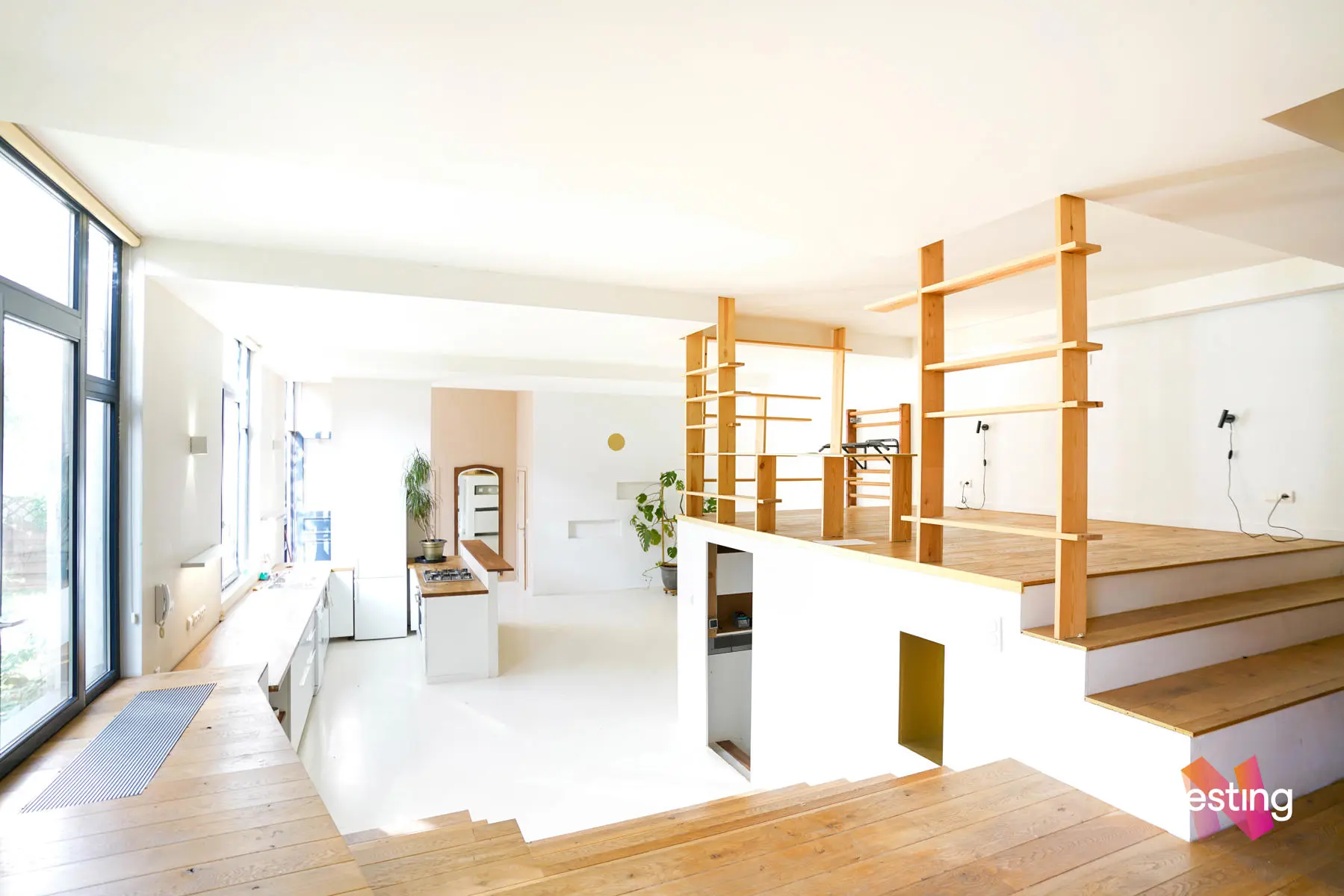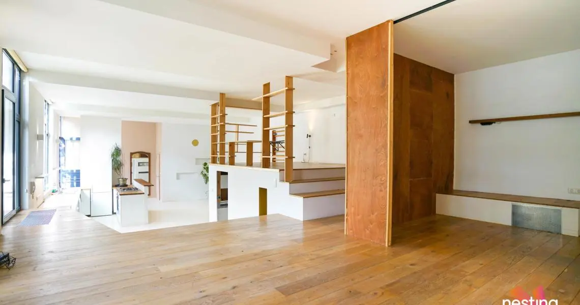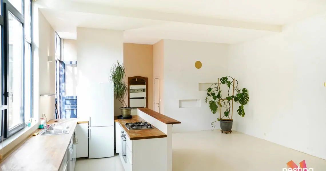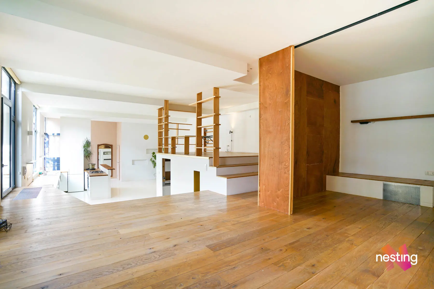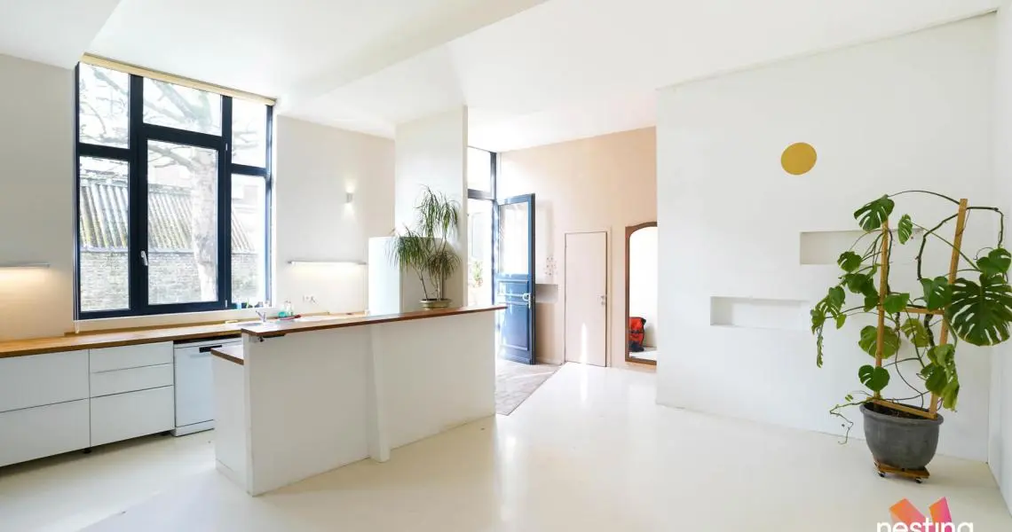 Situé à proximité de la gare du Nord, de Tour et Taxis, des commerces et des transports en communs, dans un intérieur d'îlot, superbe loft de +/-110m2, calme, lumineux, parquet partout et offrant 17m de façade !