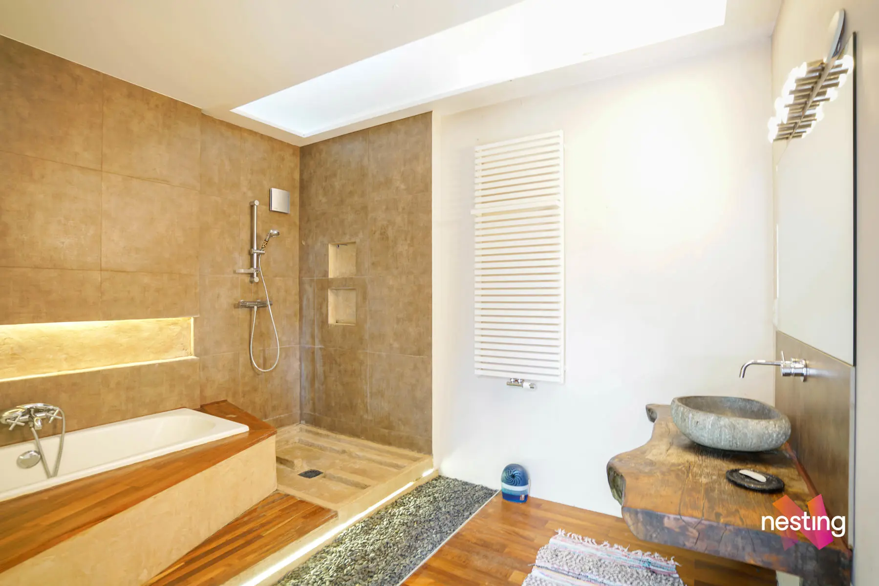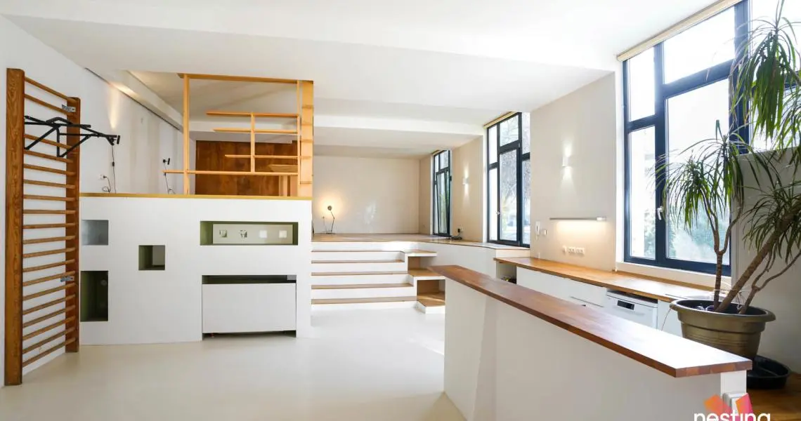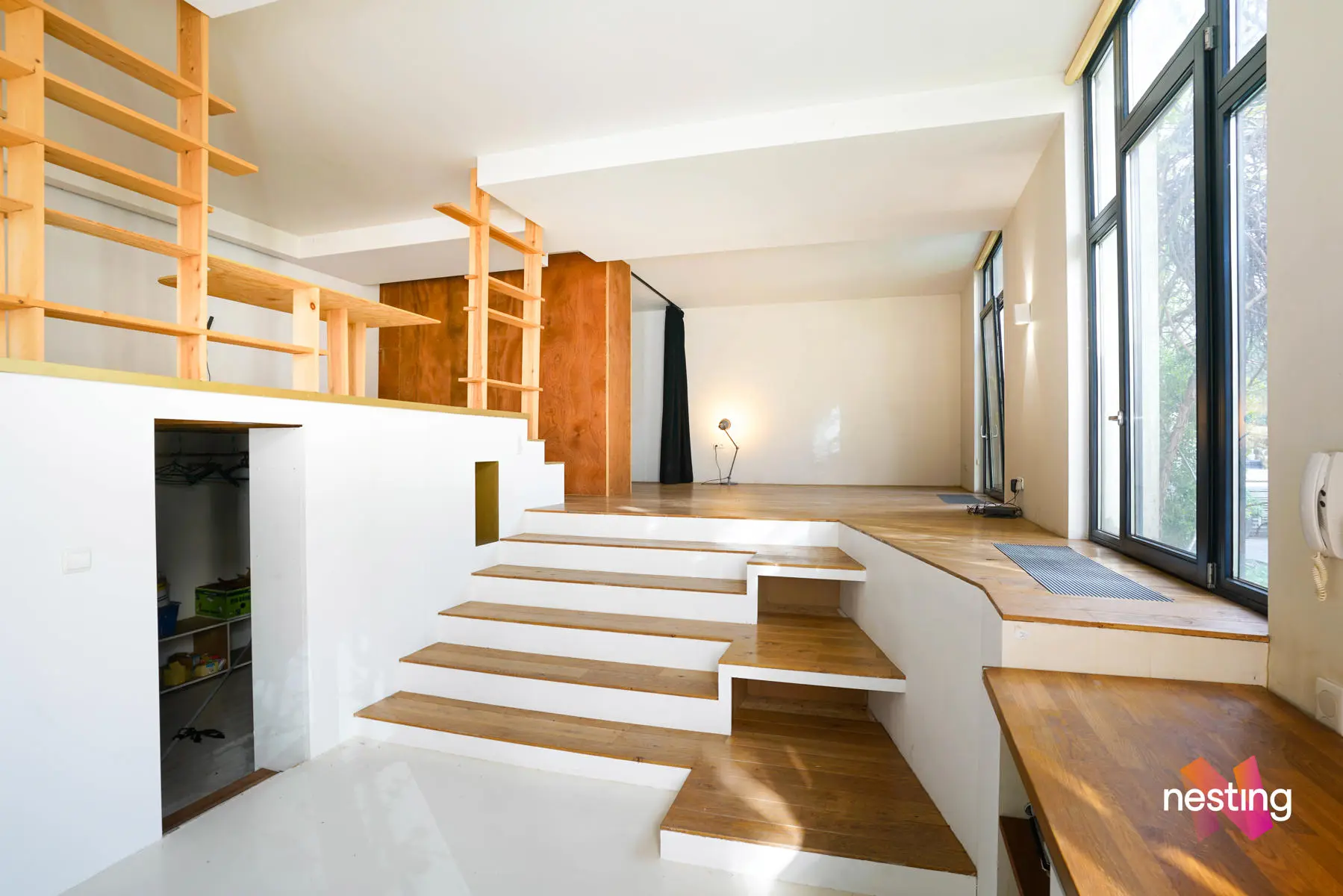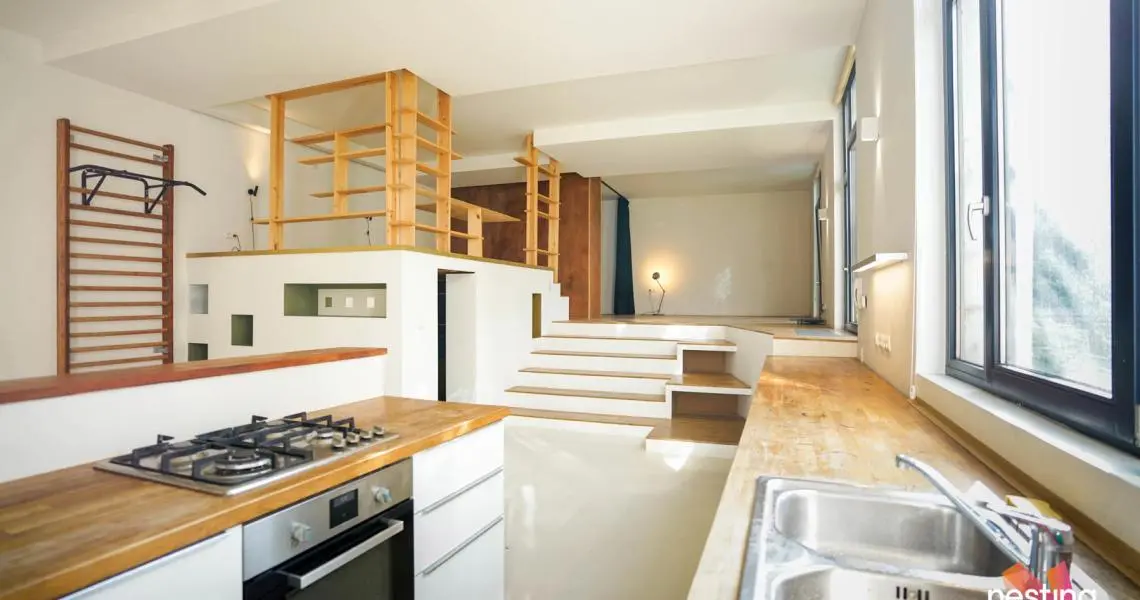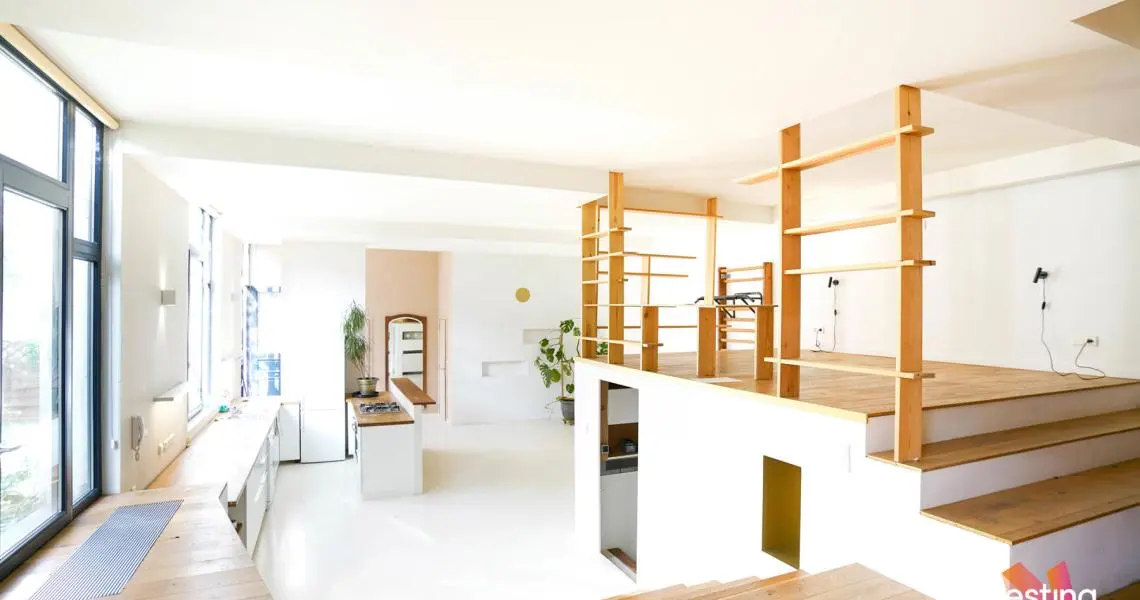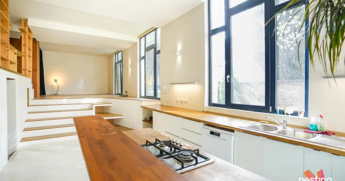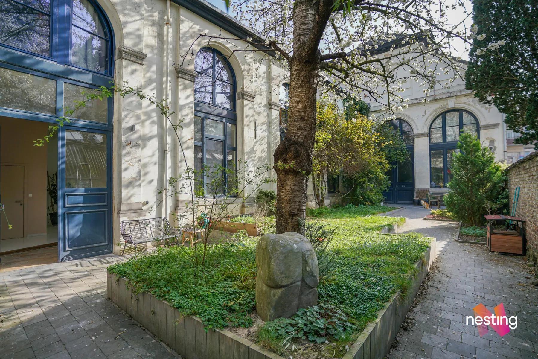 Situé à proximité de la gare du Nord, de Tour et Taxis, des commerces et des transports en communs, dans un intérieur d'îlot, superbe loft de +/-110m2, calme, lumineux, parquet partout et offrant 17m de façade !