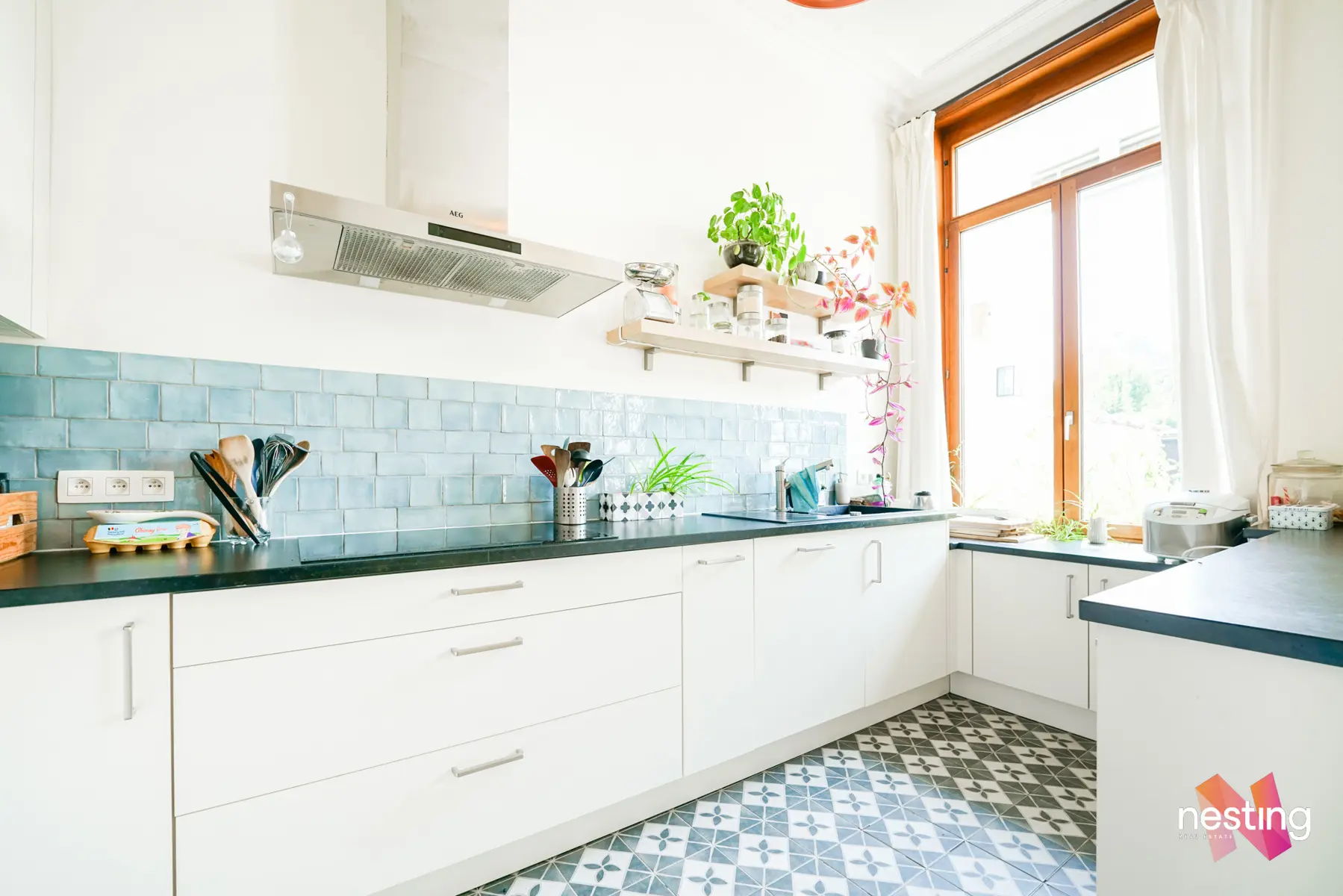 Berchem Sainte Agathe, Rue Hubert Blauwet, dans une rue calme à sens unique, à proximité du Basilix et de la Place Schweitzer, des transports en commun et des commerces, venez découvrir cette belle maison lumineuse de +- 230m² (brutes) rénovée en 2019 et composée comme suit :