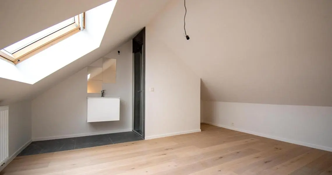Au grenier : chambre de +/-20m2 avec salle de douche privative.