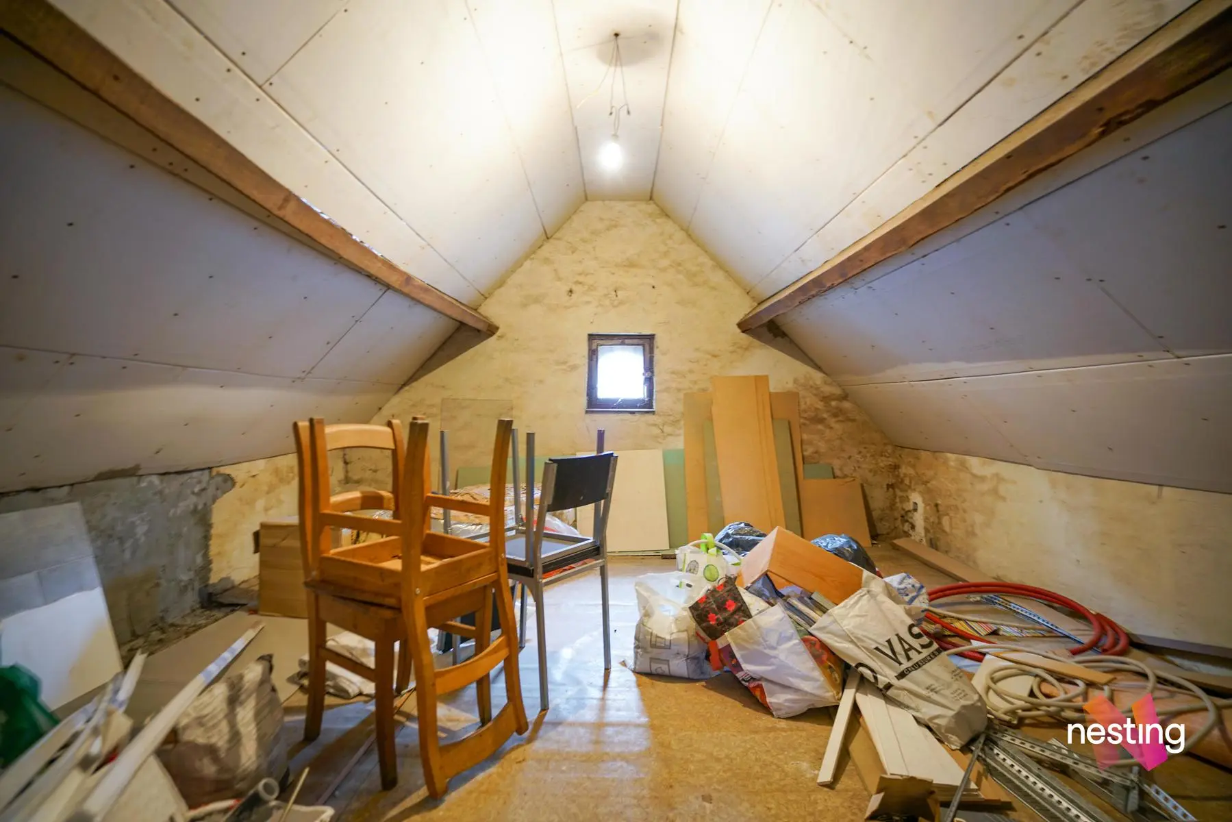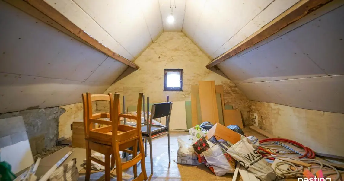 Grenier : Surface de +/-20m2 pouvant être transformée en chambre.