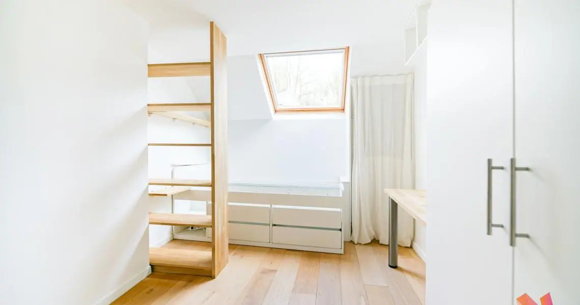 Au dernier étage : une chambre de +- 20 m²