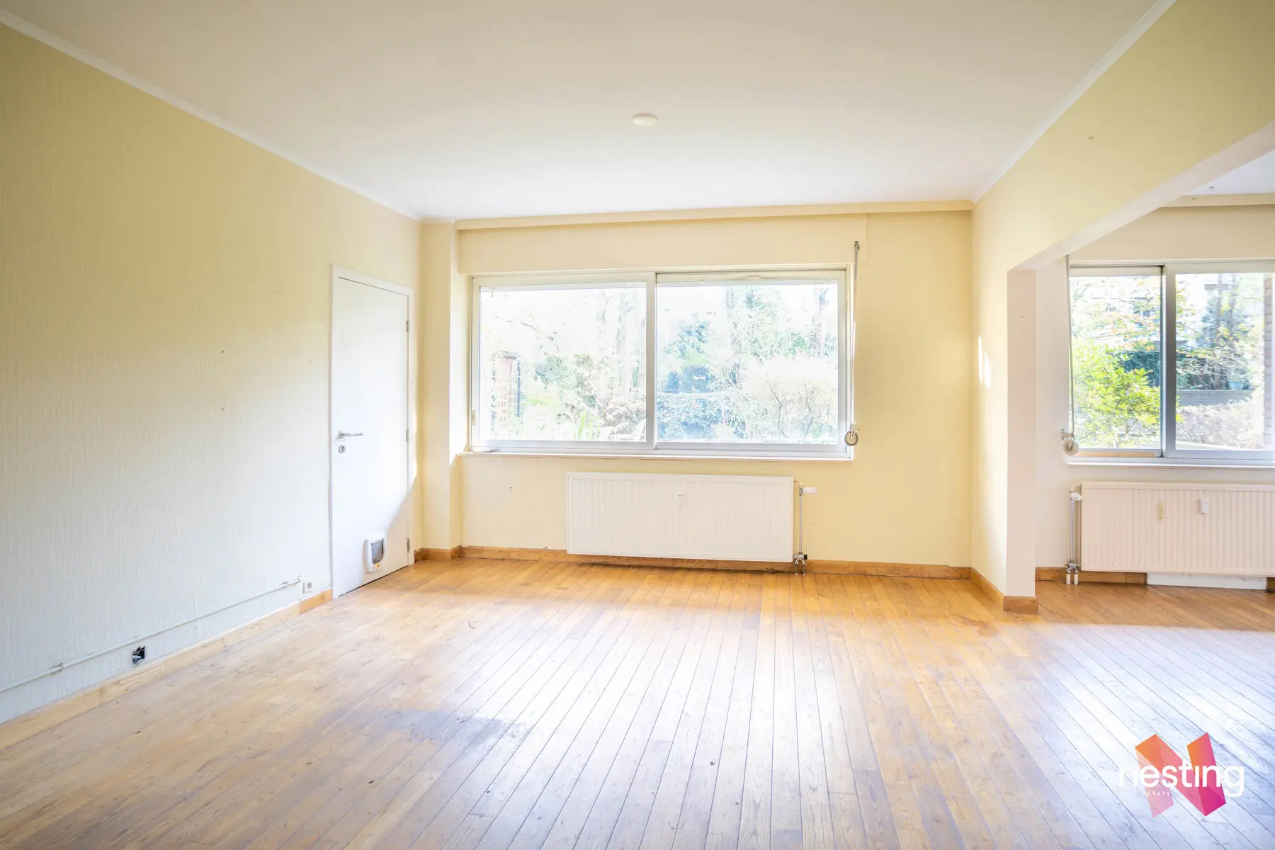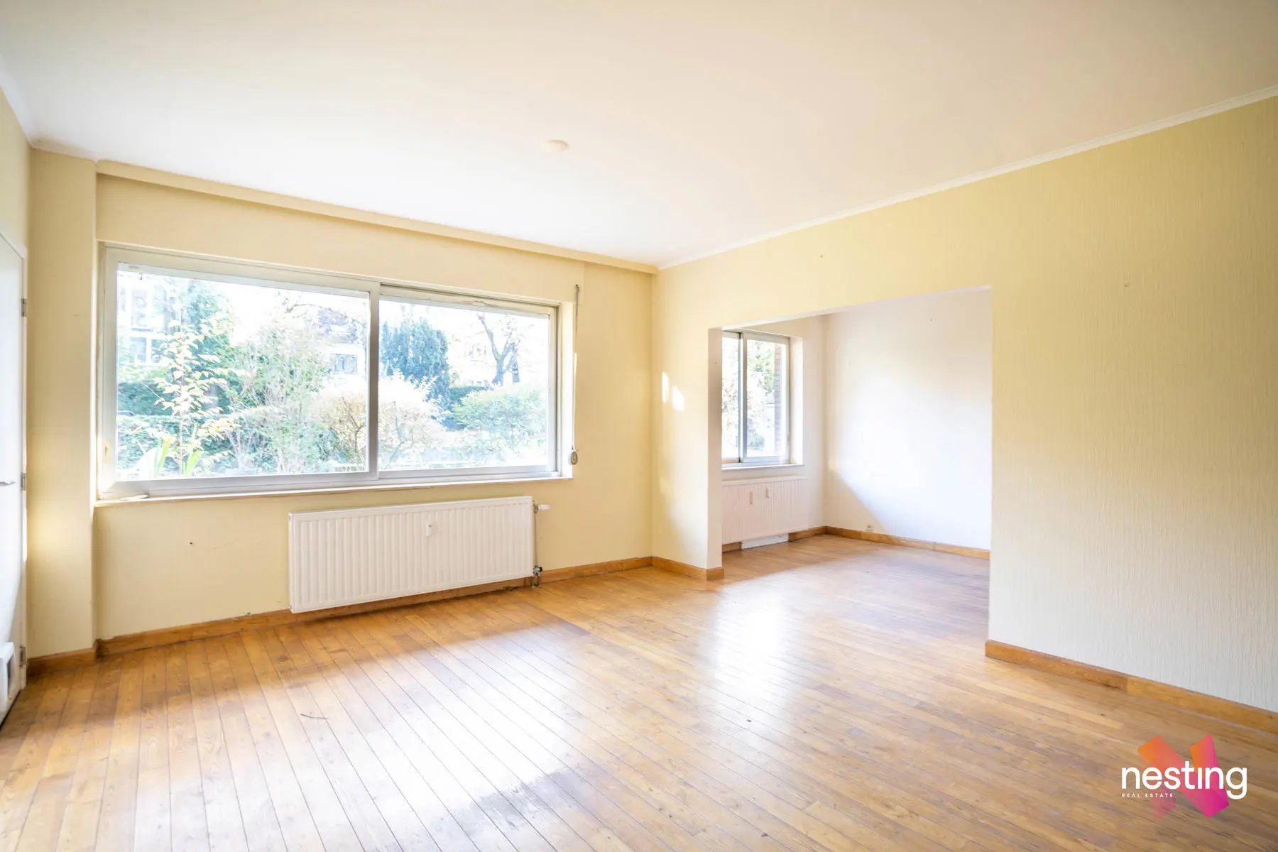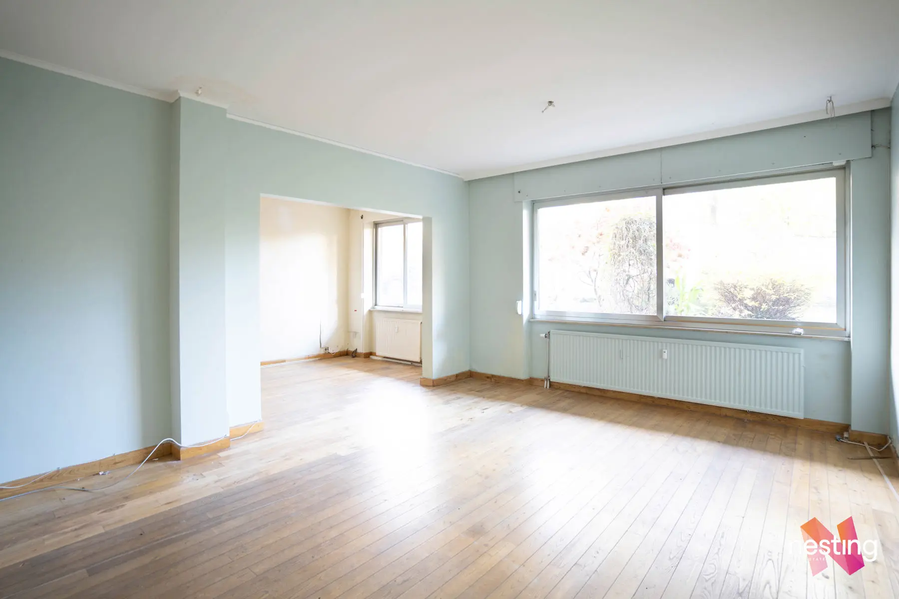 Situé dans un immeuble des années 1970, ce spacieux appartement de ± 100 m² habitables offre un potentiel d'aménagement exceptionnel. Vous serez séduit par son jardin privatif de ± 90 m², véritable écrin de verdure, et ses nombreuses possibilités d’optimisation.