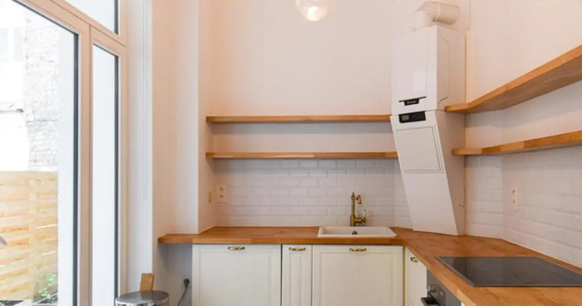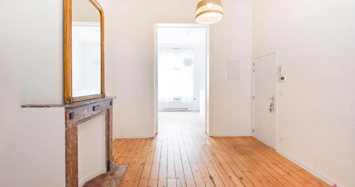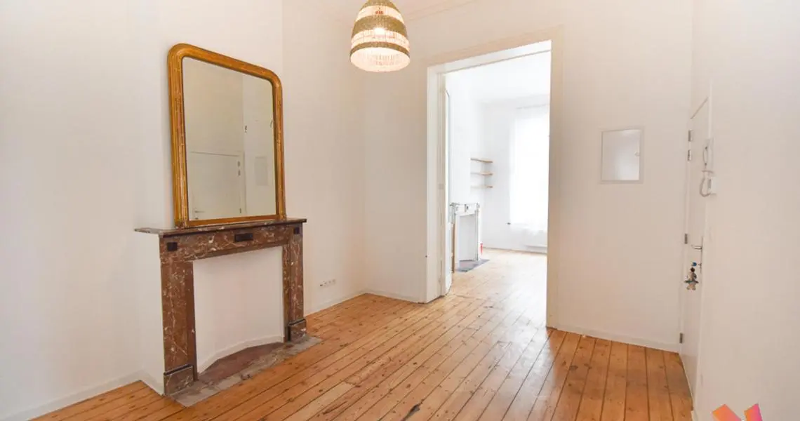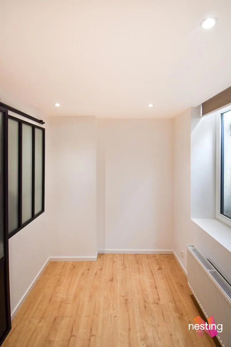 Saint Gilles, à proximité de la la maison communale, dans une rue calme et proche des transports en commun et des commerces, au rez-de-chaussée, superbe appartement entièrement rénové de 1 chambre + bureau et cour, composé comme suit :