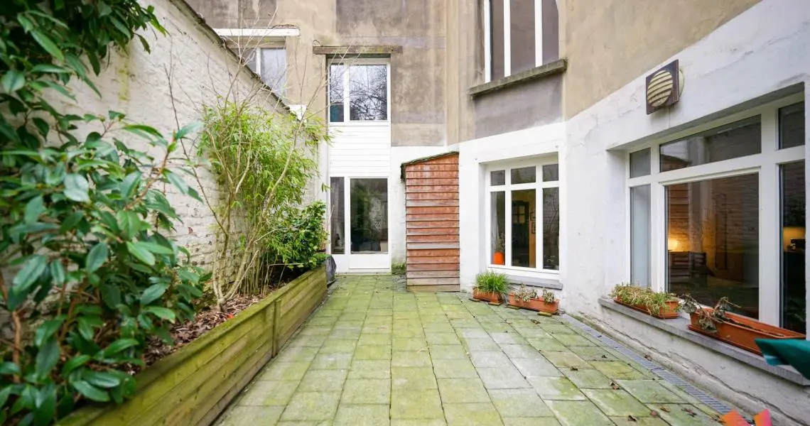 Saint Gilles, Avenue Jean Volders, à deux pas du Parvis, venez découvrir ce magnifique duplex atypique de 3-4 chambres de +- 250m² (valeur PEB) avec jardin et cour privatifs.